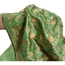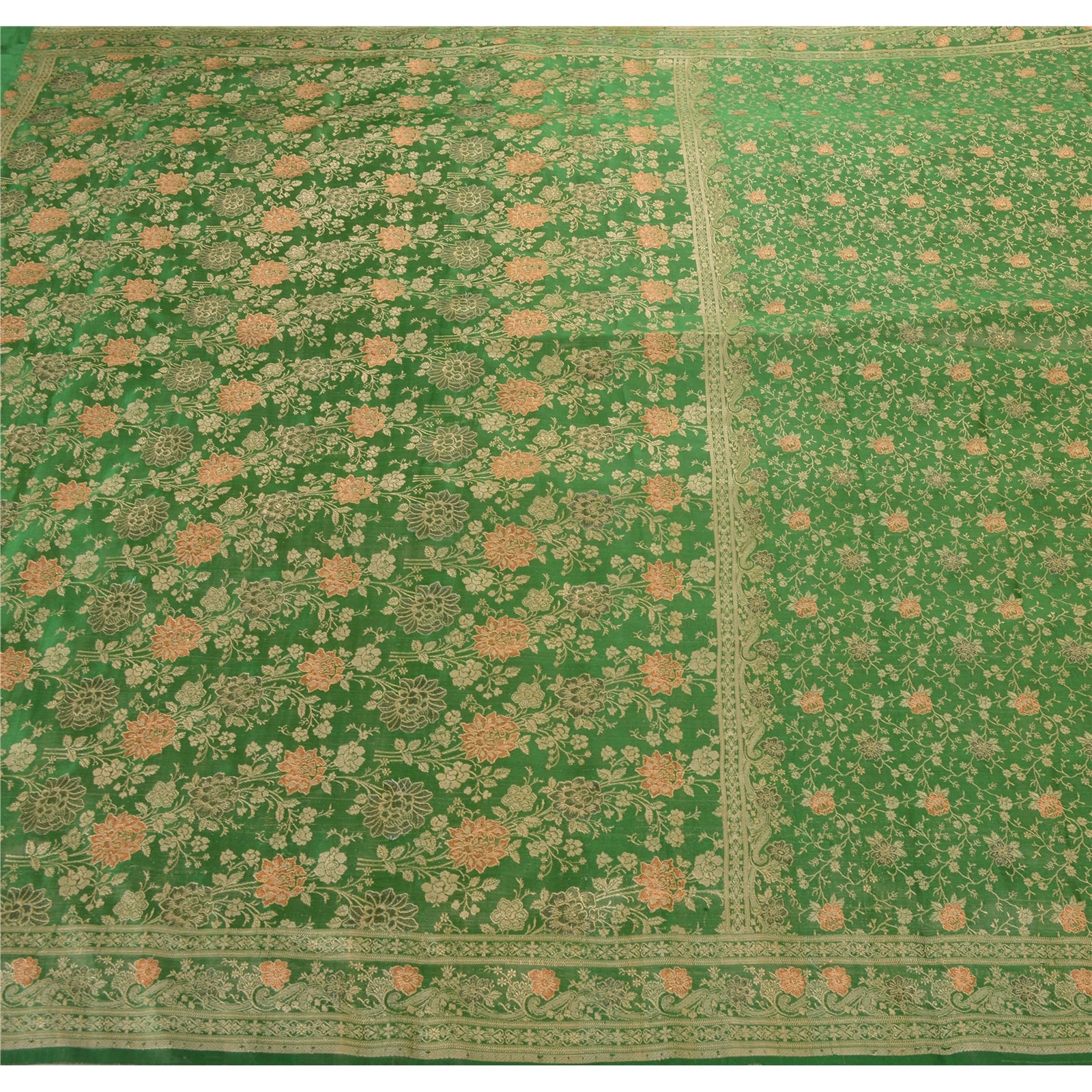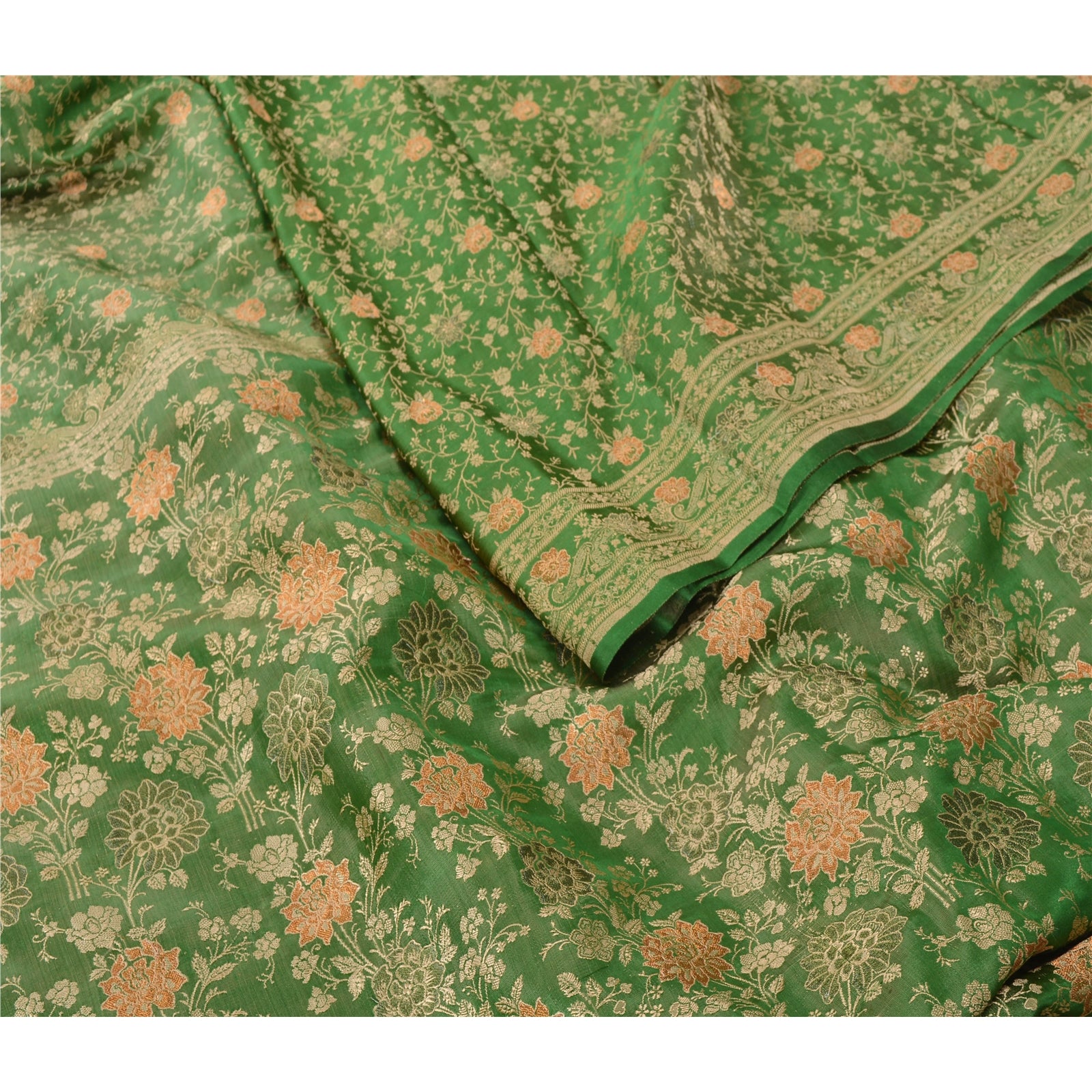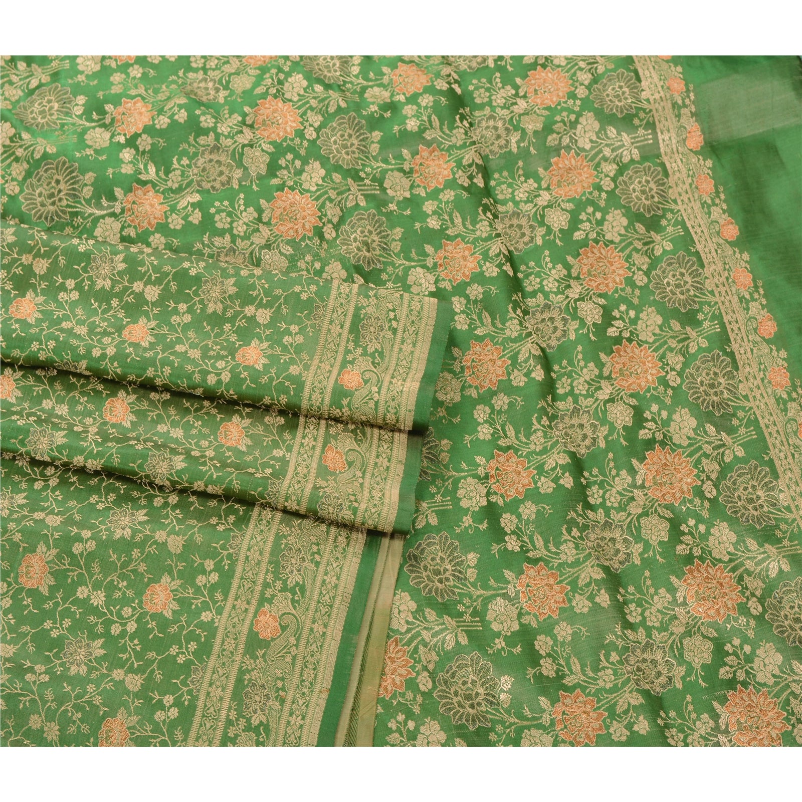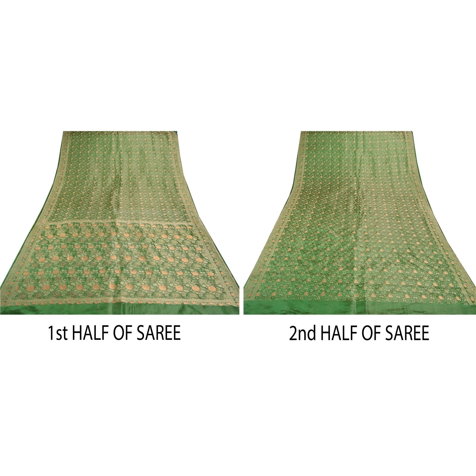 Sanskriti Vintage Indian Heavy Saree Pure Satin Silk Green Banarasi Woven Sustainable Fabric Sari
