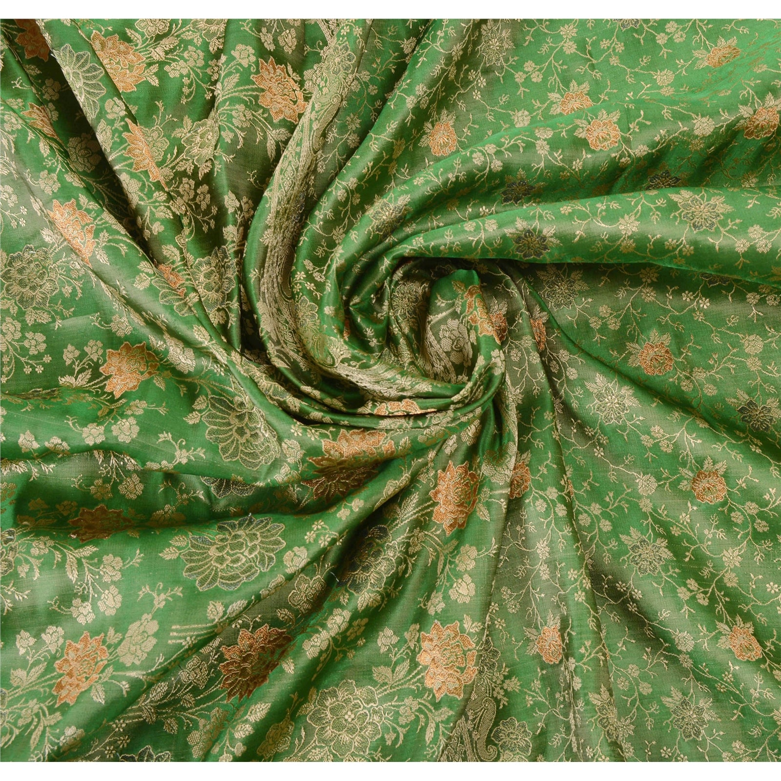 Sanskriti Offers This Vintage Green Color Banarasi Woven Heavy Saree Which Is Crafted With 100% Pure Satin Silk Base Sustainable Fabric The pallu & border sari features floral & paisley design embellished with multi color thread woven work. The center part of sari boasts similar woven work. This heavy saree can be used for various crafting ideas too. Use it for dress designing, as a throw, as window dressing, upholstery, table linen and much more. Let your creative juices flow!