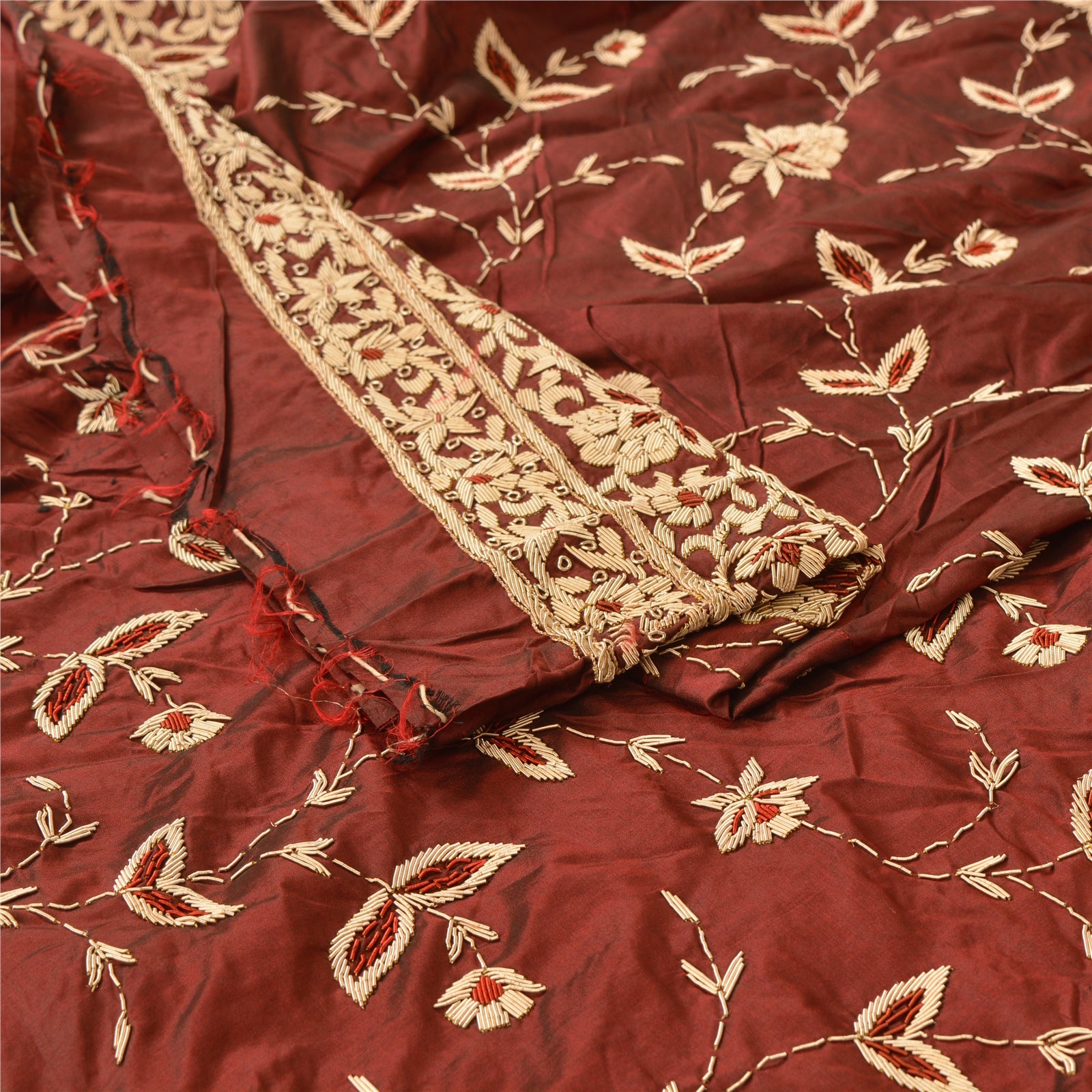 Sanskriti Offers This Vintage Dark Red color Unstitched Long Skirt Made With 100% Pure Satin Silk Base Sustainable Fabric. Antique very heavy hand embroidered skirt. It is fully covered with golden/red zardozi work. It is a Unstitched skirt with a length of 40 inch and flare of the skirt is 156 inch. Flaunt this heavy skirt with ethnic tops, blouses or kurtis at parties, weddings and other occasions. Outstanding hand embroidered work skirt with beautiful craftsmanship which I am sure you will truly appreciate.