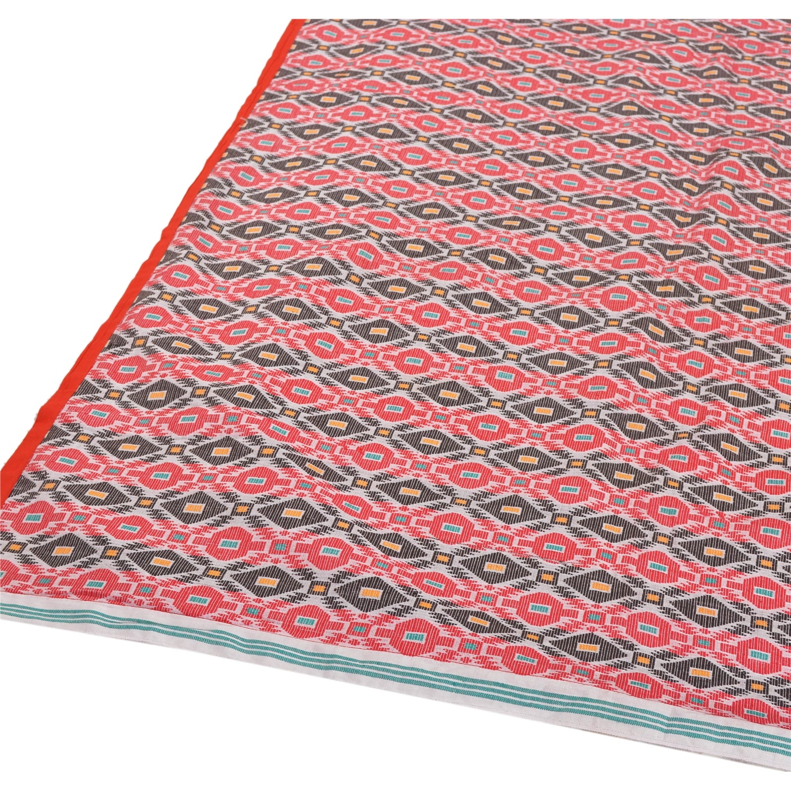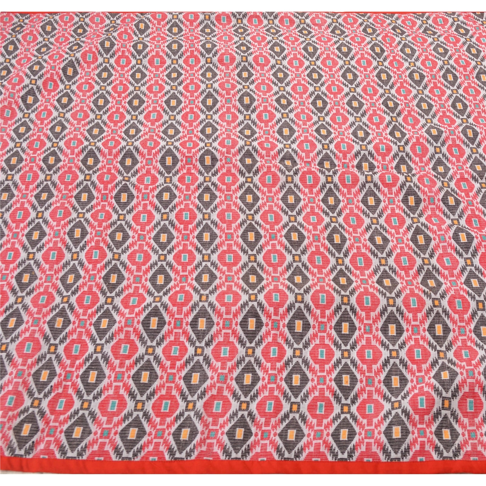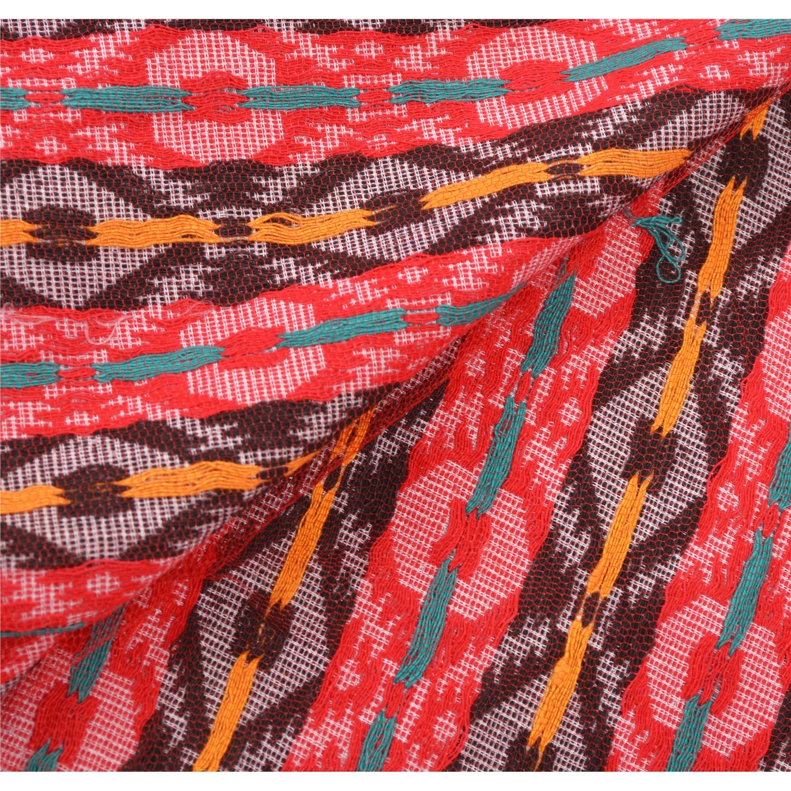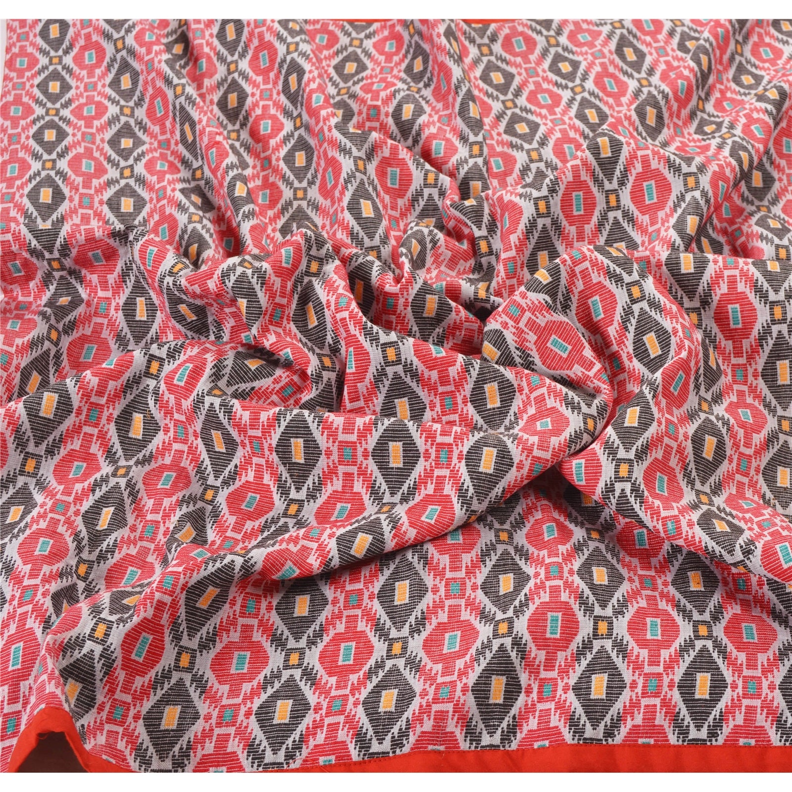 Traditional hand woven Gamosa Heavy Dupatta. This one of a kind item is difficult to express in words. All over feature is multi color geometric design, red Sustainable Fabric patch work on both sides of border is the highlight of the dupatta... Gamusa is a traditional piece of cloth which is of great significance to the Assamese community. It is a rectangular shape cloth hand woven in white colour having red borders across its two length sides and beautiful motifs woven across its two breadth sides..At par with gamusa, there are beautifully woven symbolic clothes with attractive graphic designs being used by different cultural sub-systems and ethno-cultural groups as well. There were various other symbolic elements and designs traditionally in use, which are now only found in literature, art, sculpture, architecture, etc. or used for only religious purposes (in particular occasions only). The typical designs of Assamese-lion, dragon, flying-lion, etc. were used for symbolizing various purposes and occasions. Awesome one !!!