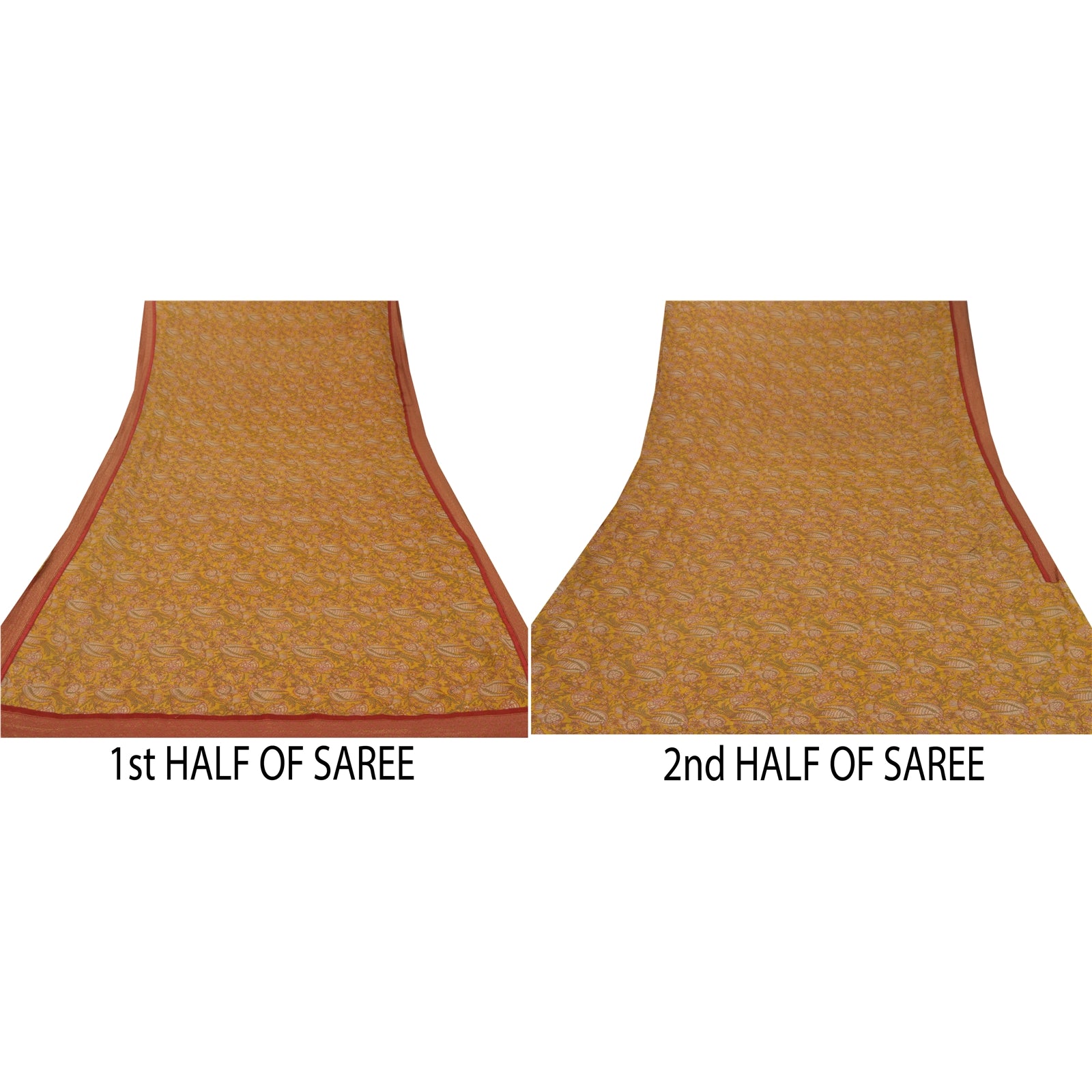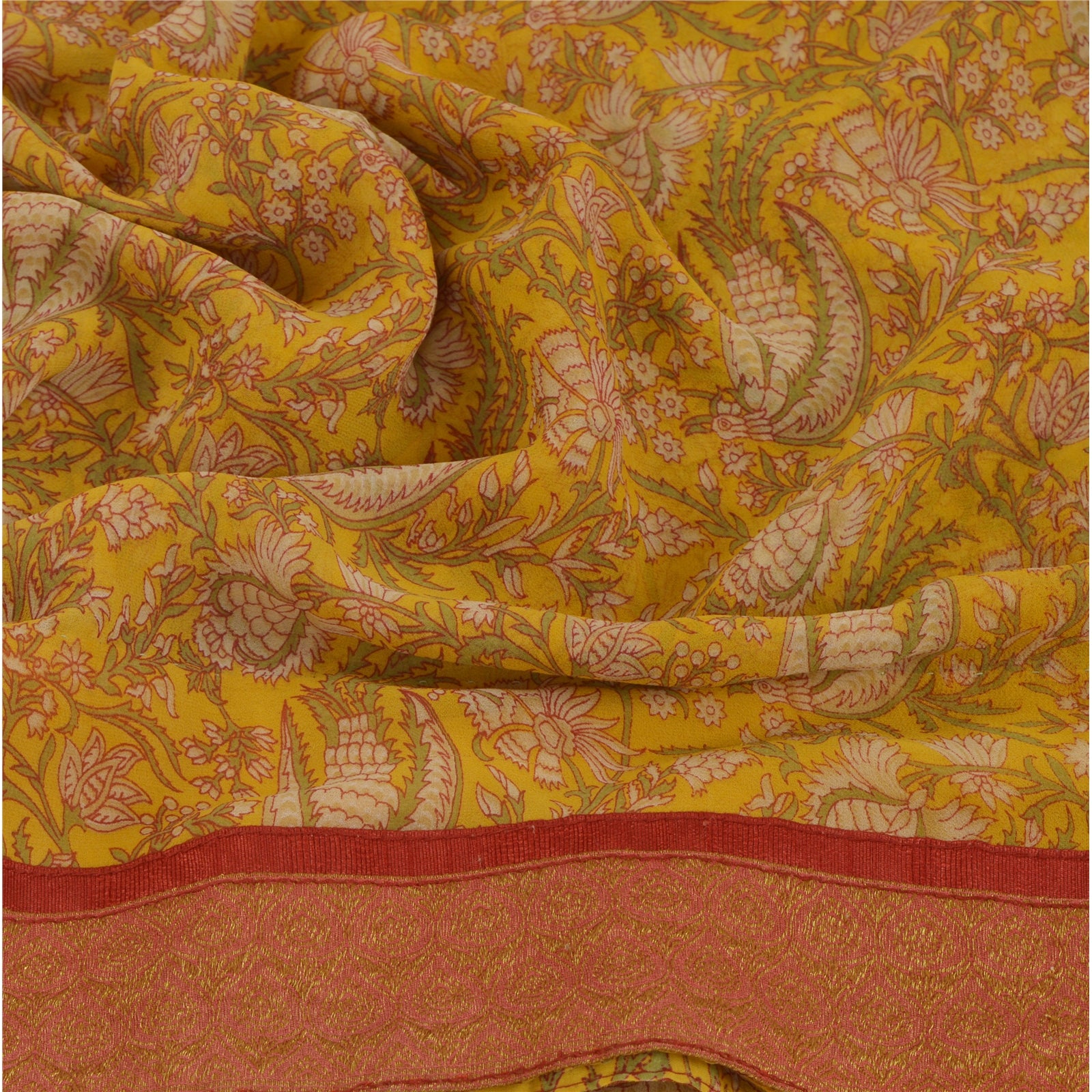 Sanskriti Vintage Yellow Sarees Georgette Printed Indian Sari 5 YD Craft Sustainable Fabric