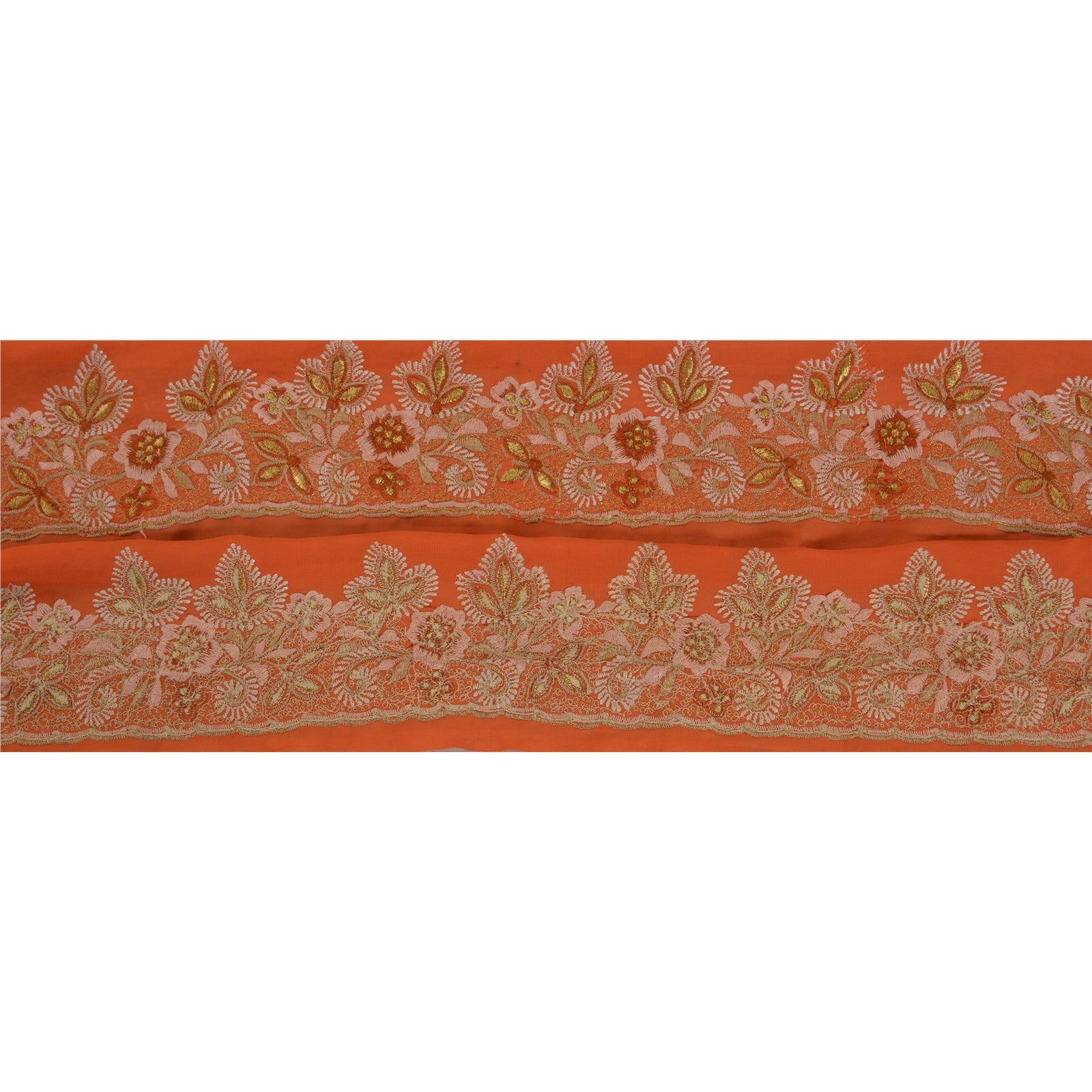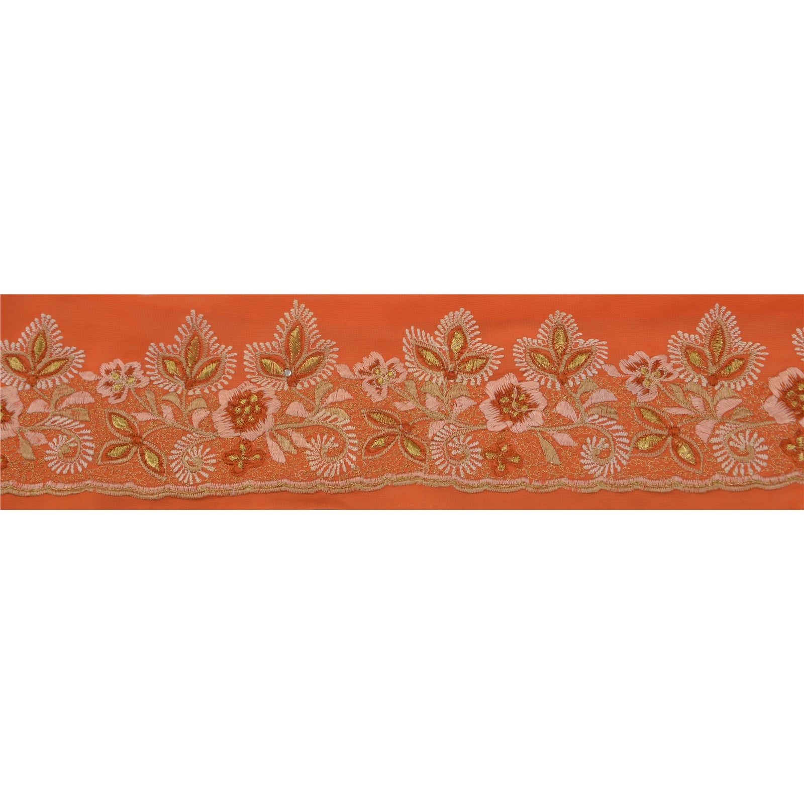 THE ITEM COLOR OR SHADE MAY BE DARKER OR LIGHTER THAN THE PICTURE.' Amazing georgette embroidered sari border in orange color highlighting thread work. Border has beautiful floral patterns painstakingly embroidered with peach, green, gold thread work . WOW!! an awesome one of a kind versatile border. 1 Quantity = 1 Yard International buyers please note: Import duties, taxes, and charges are not included in the item price or postage cost. These charges are the buyer's responsibility. Please check with your country's customs office to determine what these additional costs will be prior to bidding or buying. Buyer will pay custom duty/tax. It is calculated and charged differently by every country. As a seller I do not have any control over it.VAT or sales tax is calculated by the platform at the time of checkout. Customs charge is payable at the time of delivery. B-13554