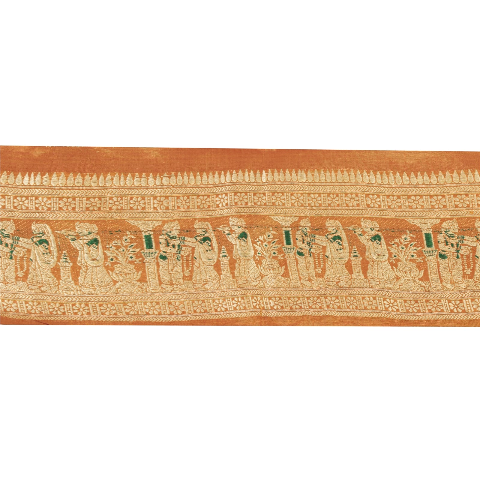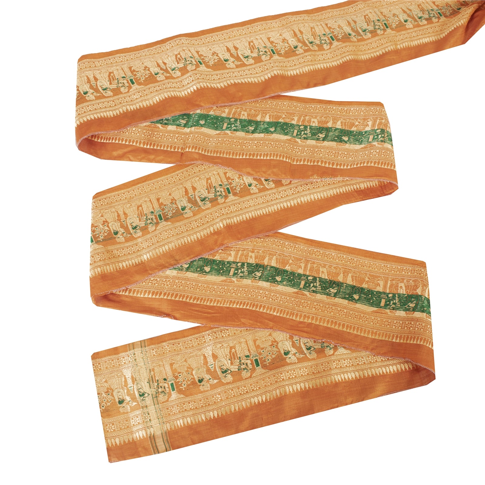 Sanskriti Vintage 1 YD Sari Border 4W Epic Baluchari Woven Trim Orange Lace