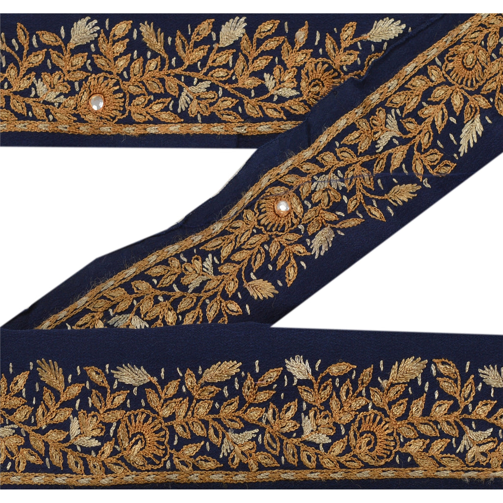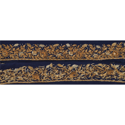 Sanskriti Vintage 1 Yd Sari Border Hand Embroidered Indian Trim Ribbon Blue Lace