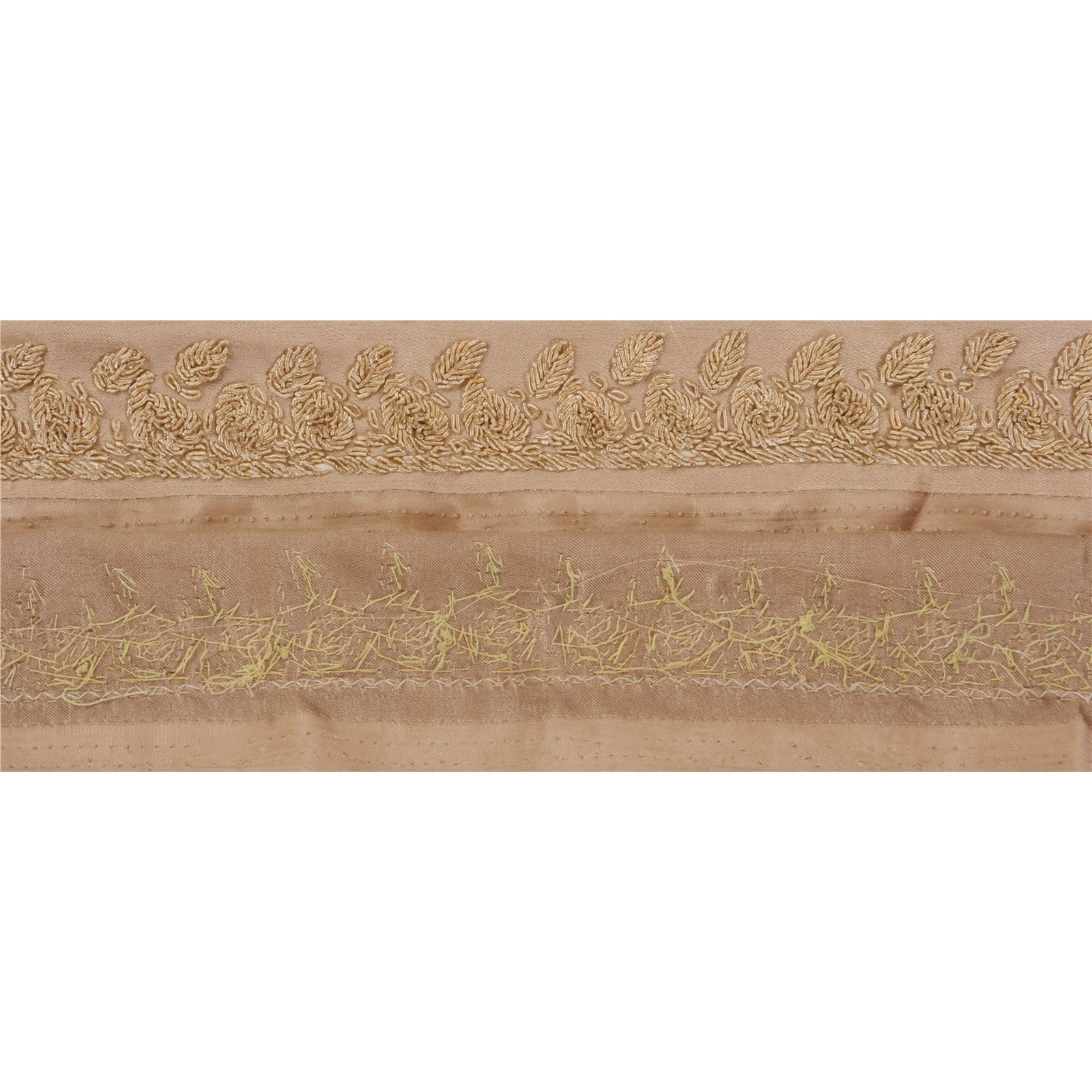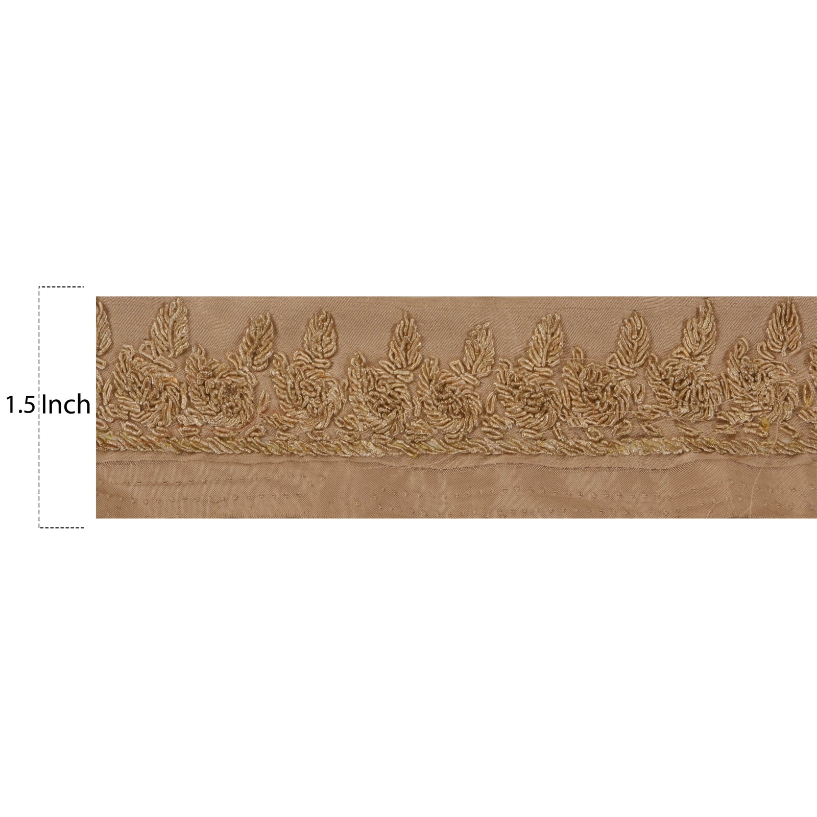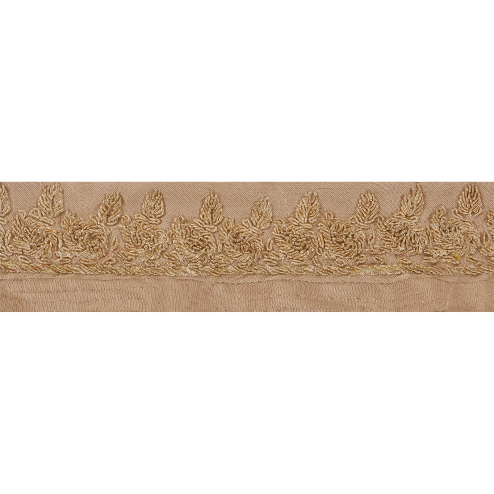 Sanskriti Vintage 1 Yd Sari Border Hand Embroidered Ribbon Brown Craft Lace