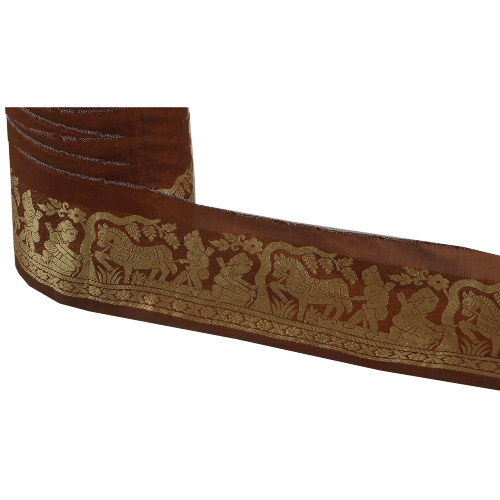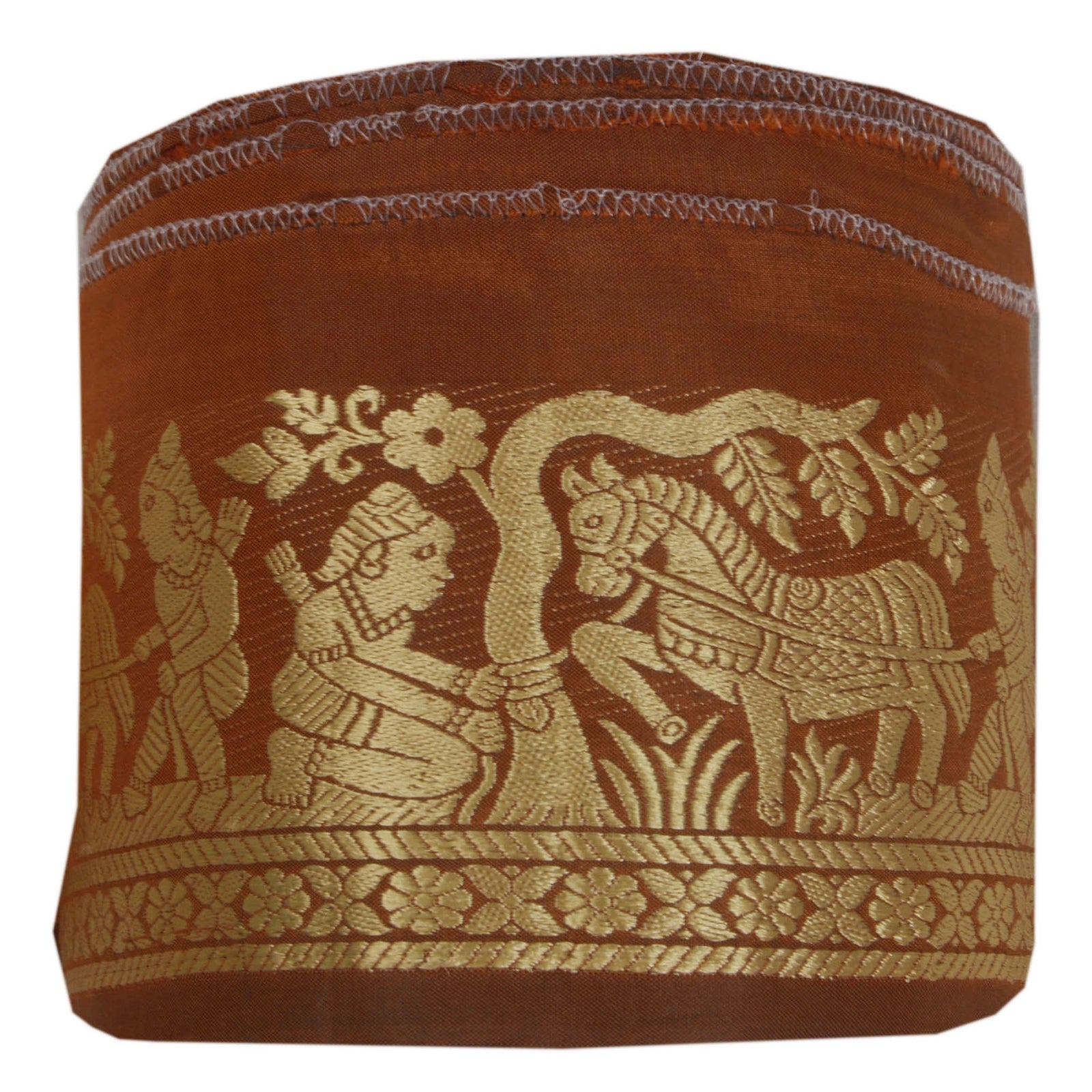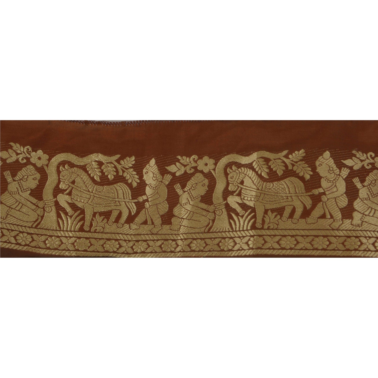 Sanskriti Vintage 1 YD Sari Border Woven Baluchari Trim Sewing Brown Craft Lace