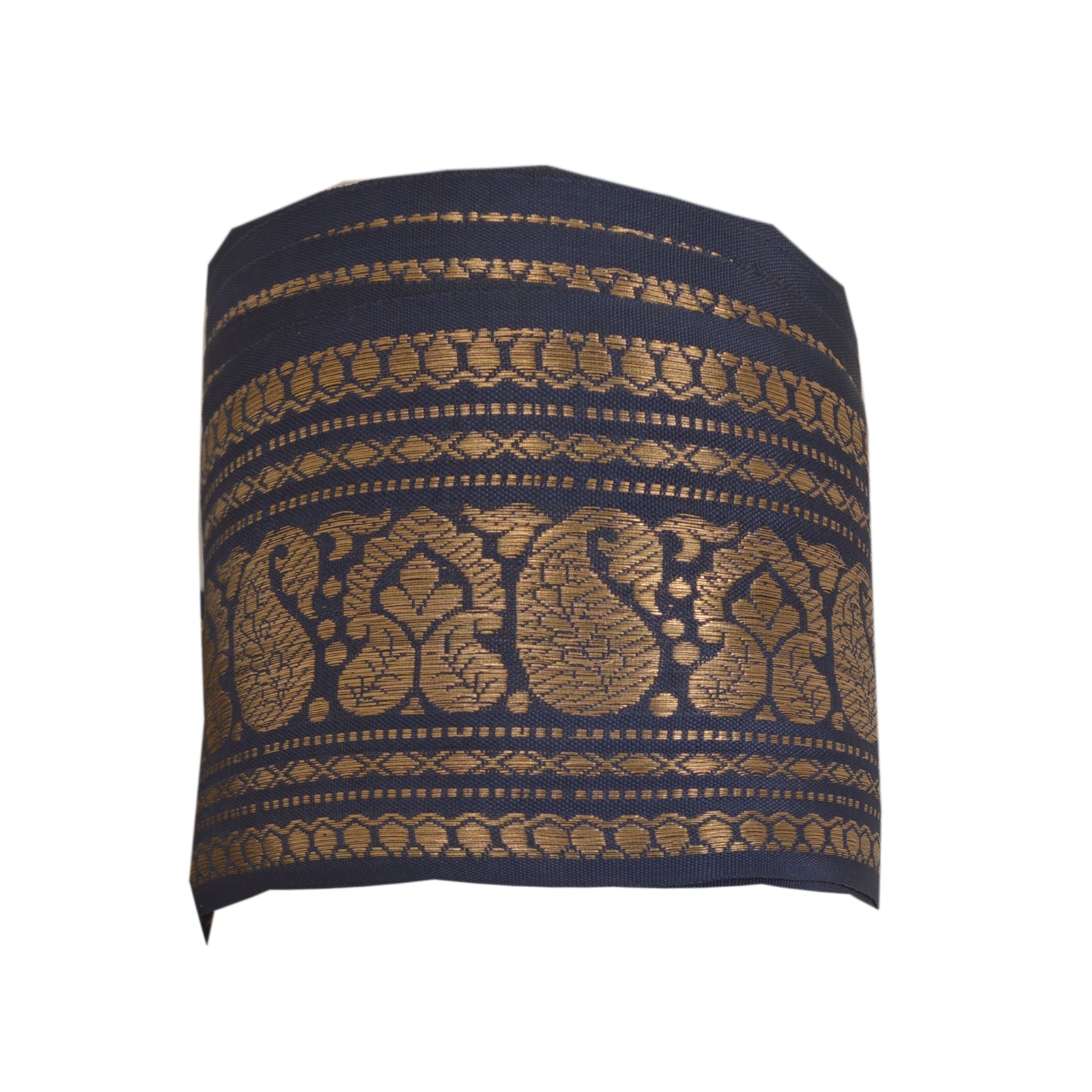 Beautiful 100% Pure Silk Sari Border In Blue Color Highlighting Banasari/Brocade Woven work. Border has beautiful floral & paisley patterns painstakingly golden metallic zari weaving work. WOW!! an awesome one of a kind versatile border. 1 Quantity = 1 Yard