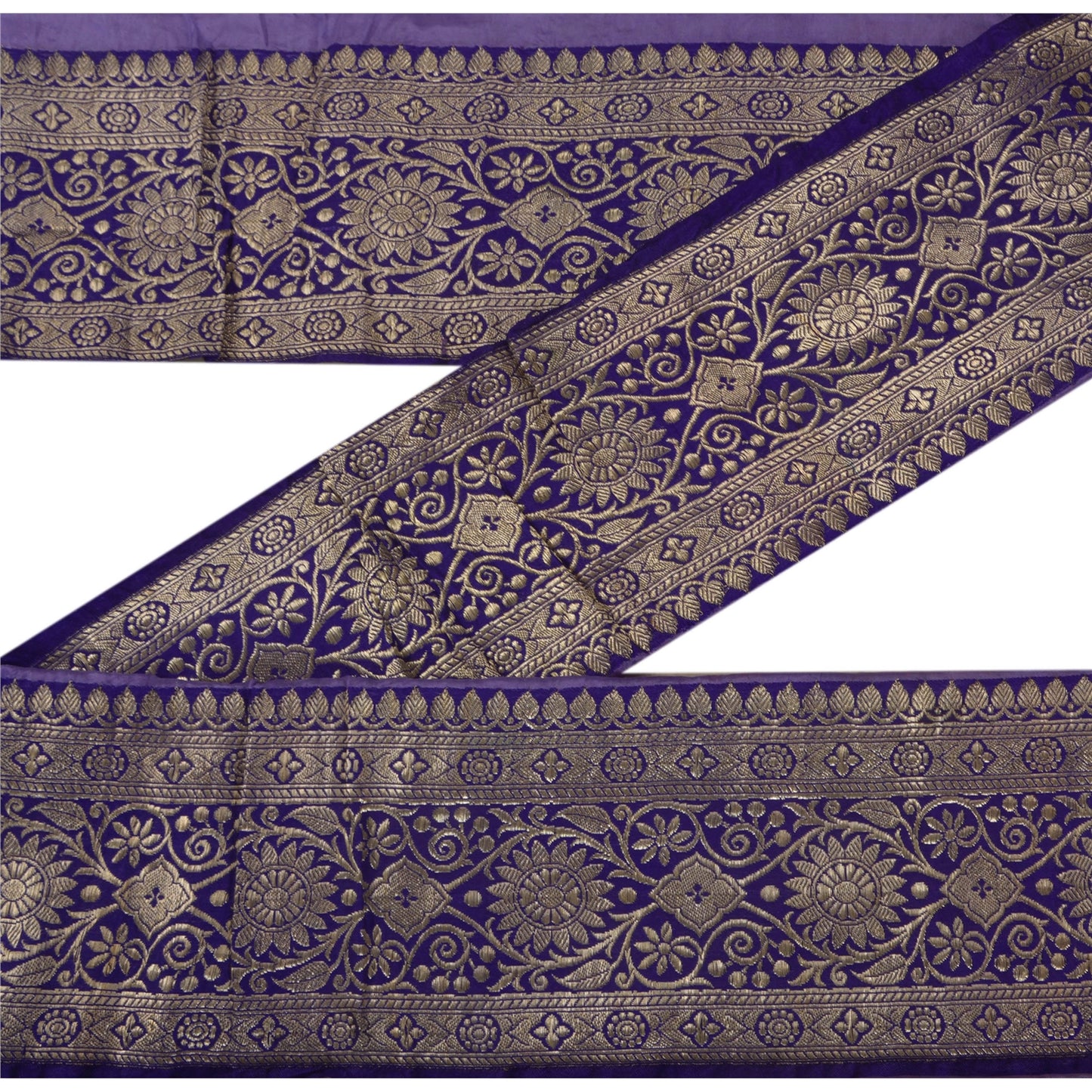 Sanskriti Vintage 1 YD Trim Sari Border Woven Brocade Blue Sewing Zari Lace