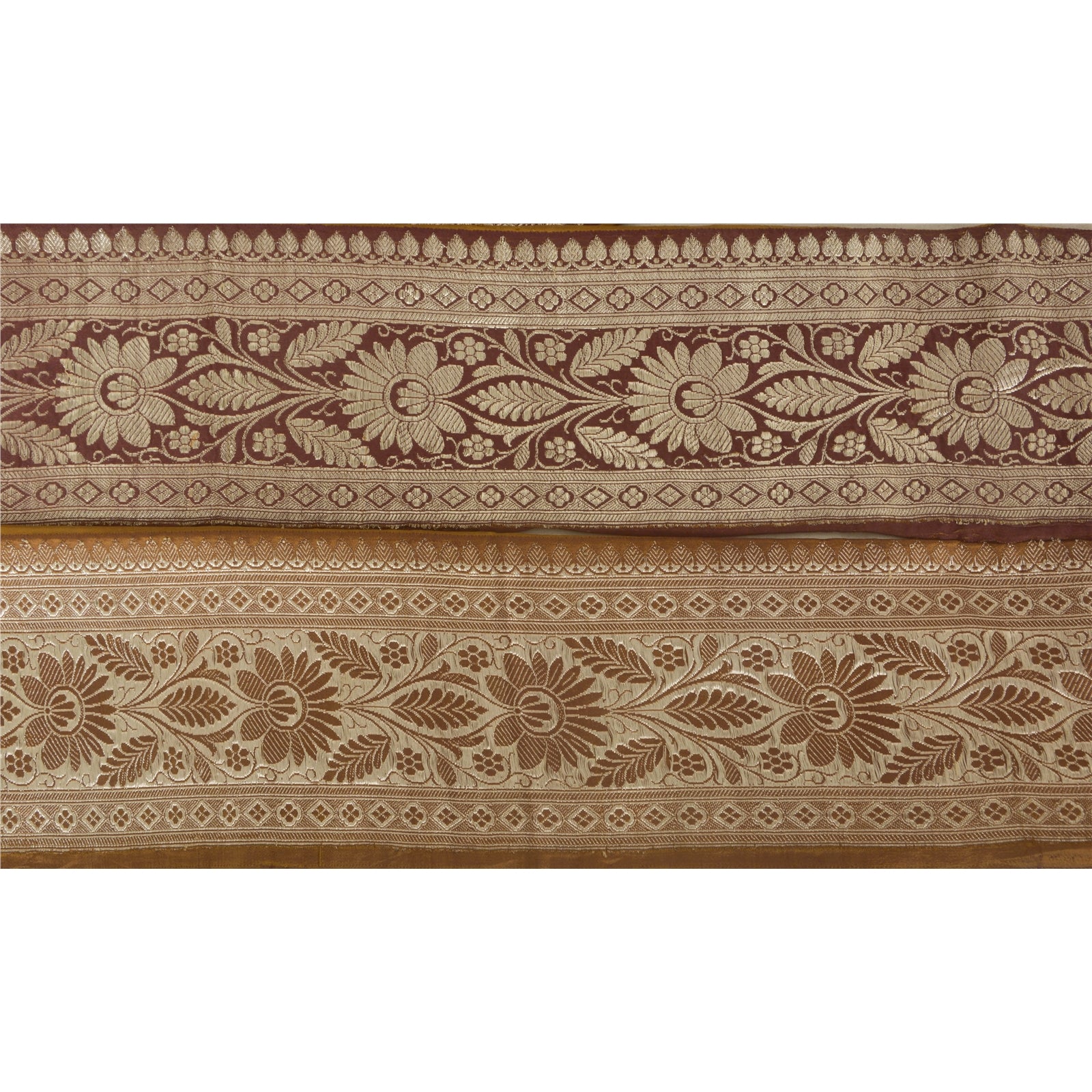 Sanskriti Vintage 1 Yd Trim Sari Border Woven Brocade Craft Sewing Brown Lace