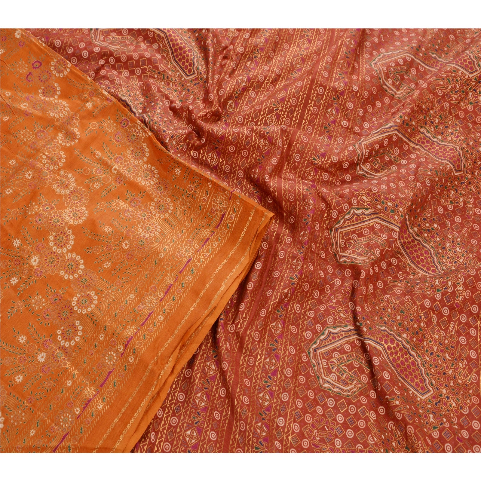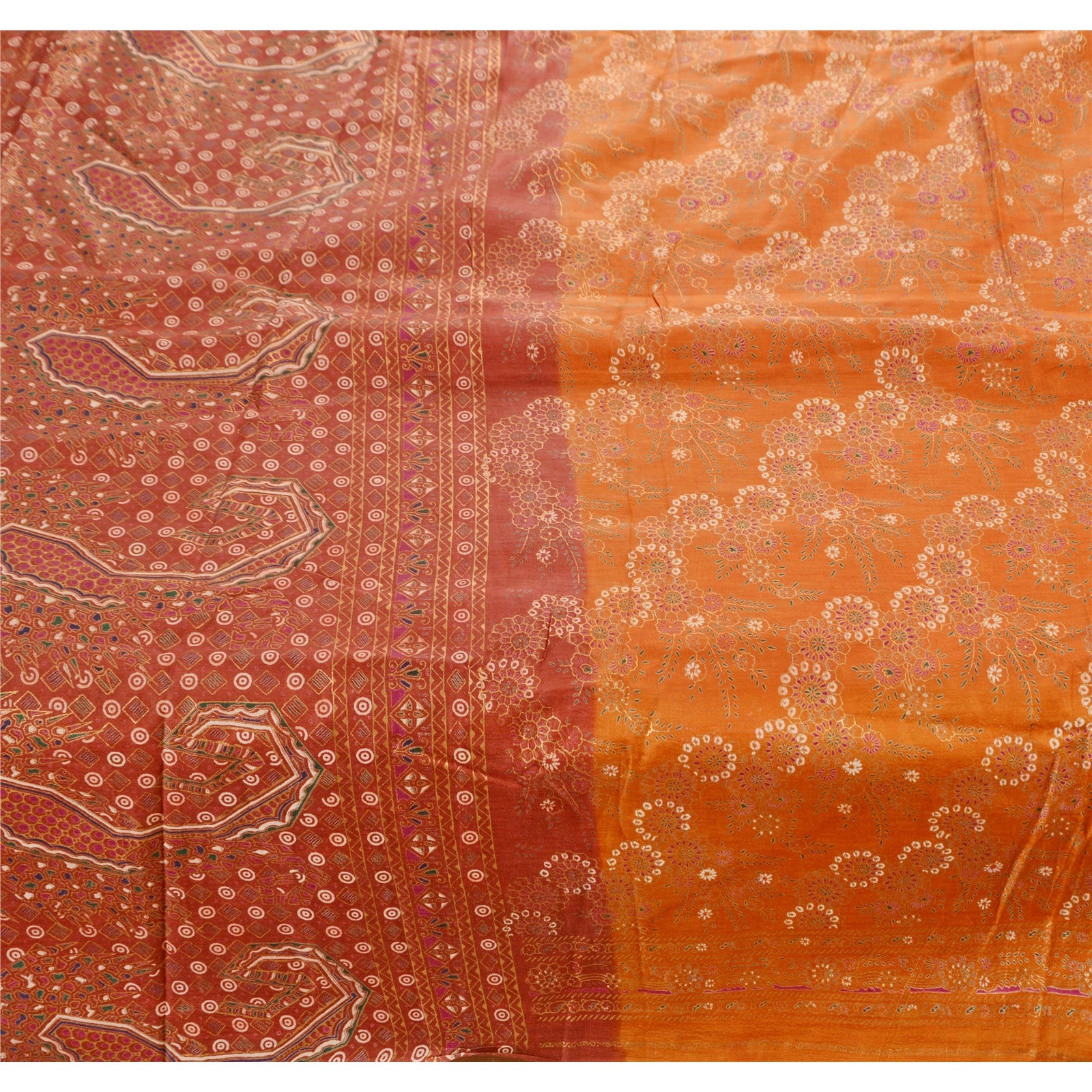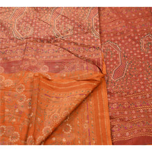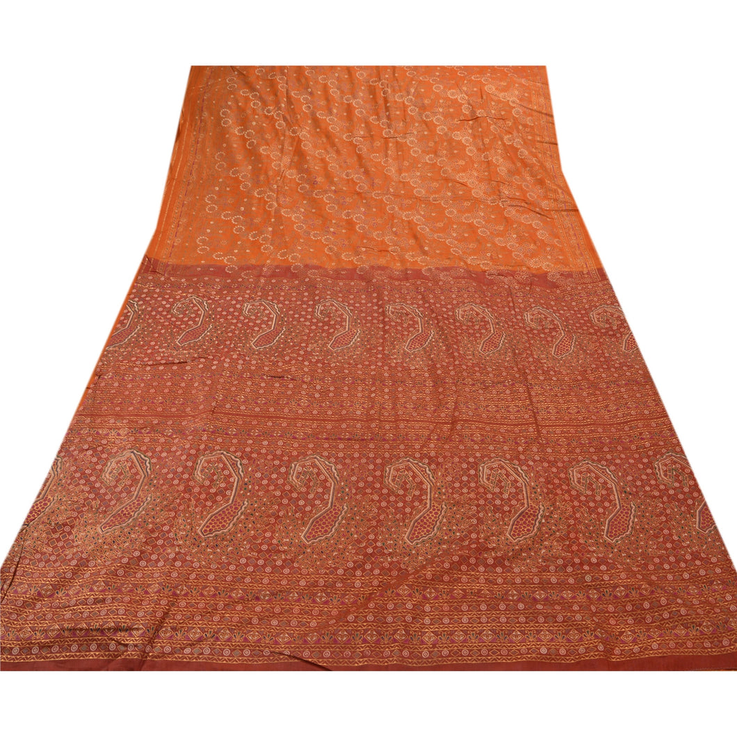 Sanskriti Vintage 100% Pure Cotton Saree Orange Painted Sari Craft 5 Yard Sustainable Fabric