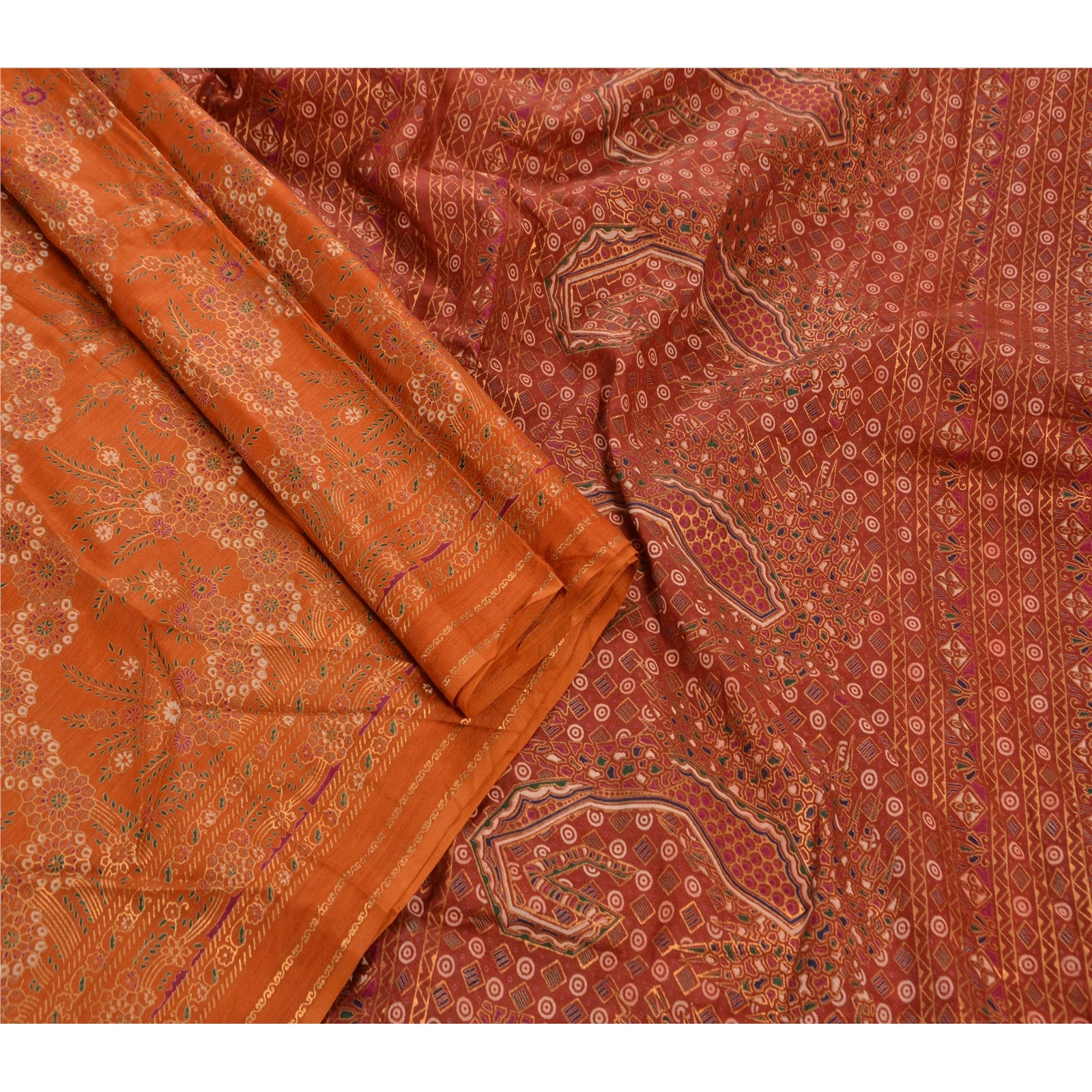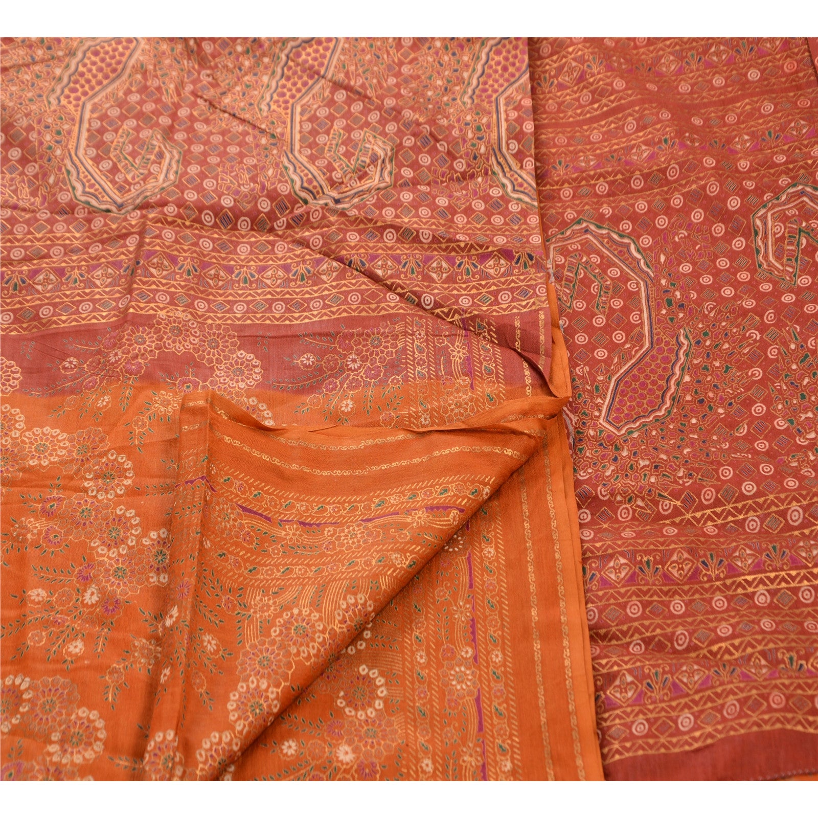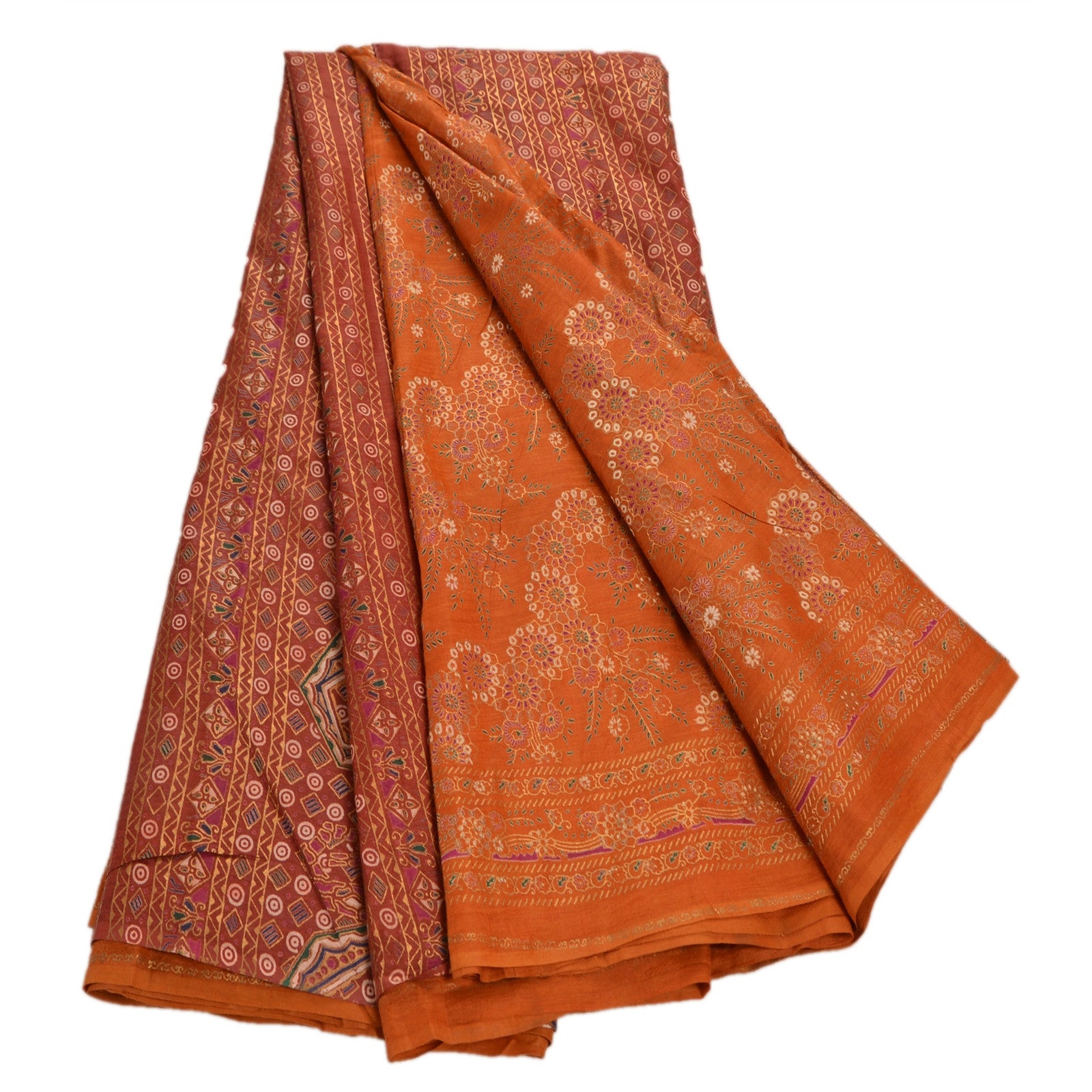 Sanskriti Vintage 100% Pure Cotton Saree Orange Painted Sari Craft 5 Yard Sustainable Fabric