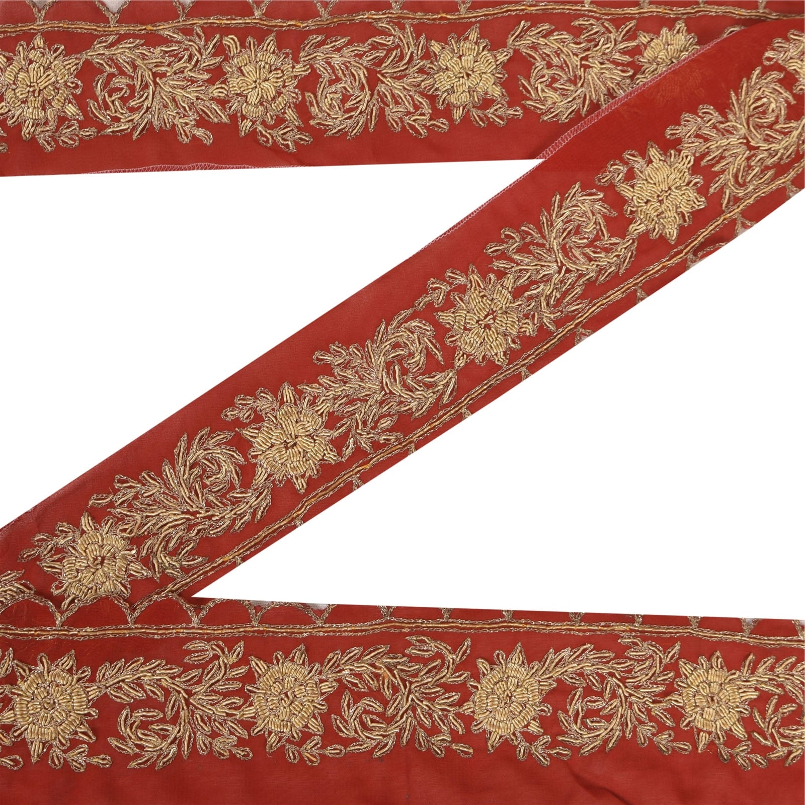 Sanskriti Vintage 1YD Sari Border Hand Embroidered ZardoziTrim Craft Orange Lace