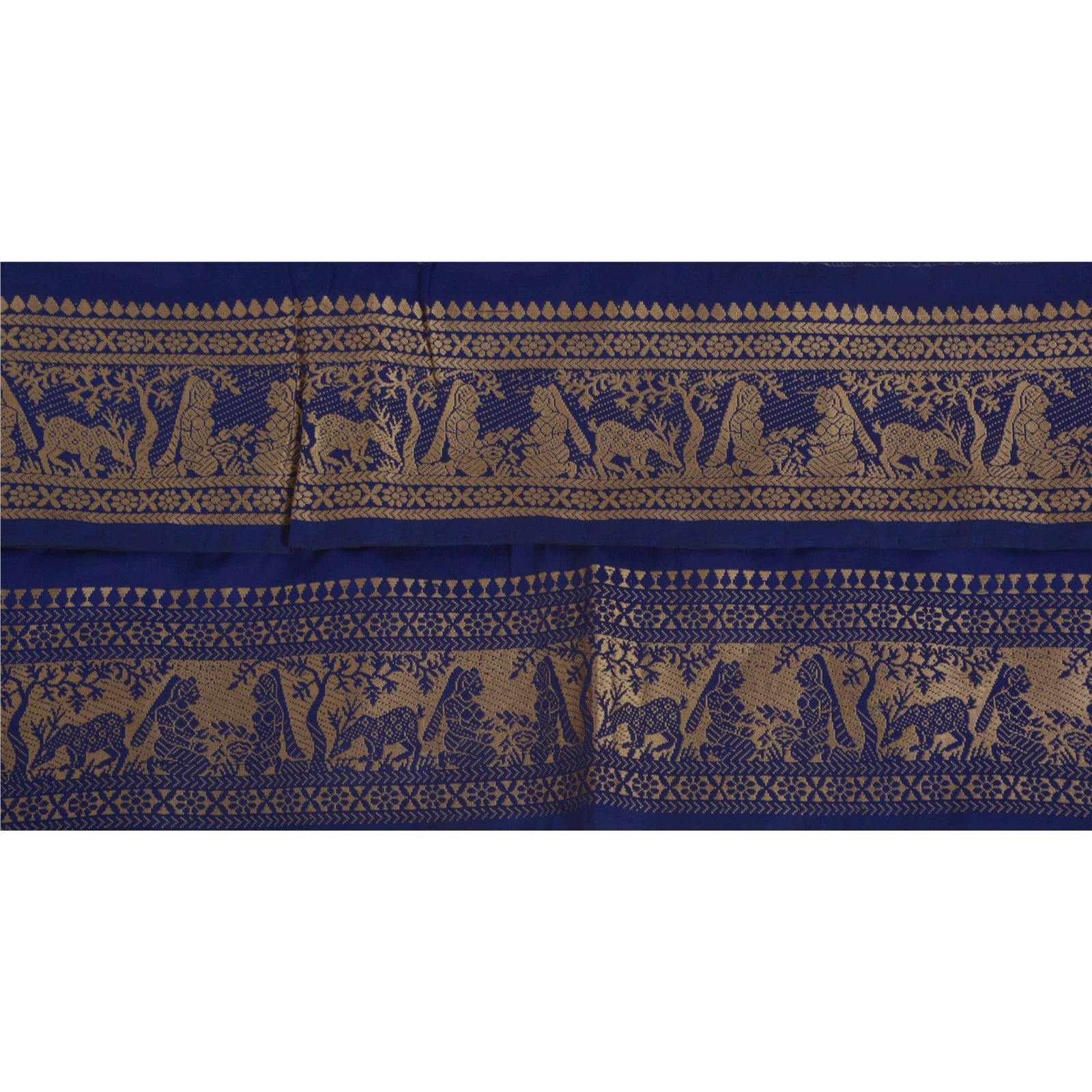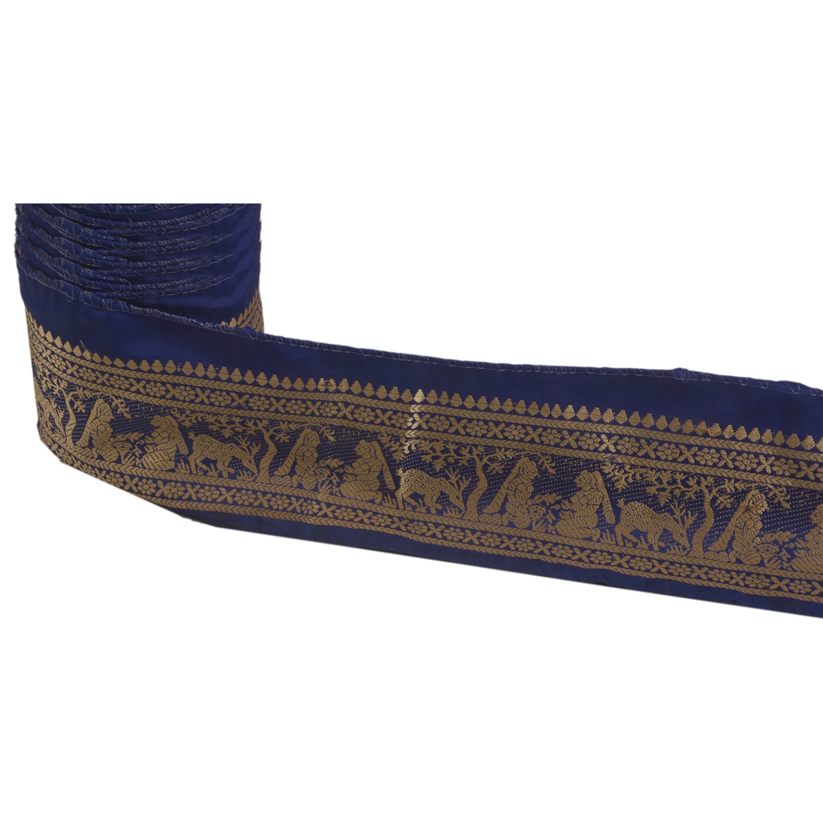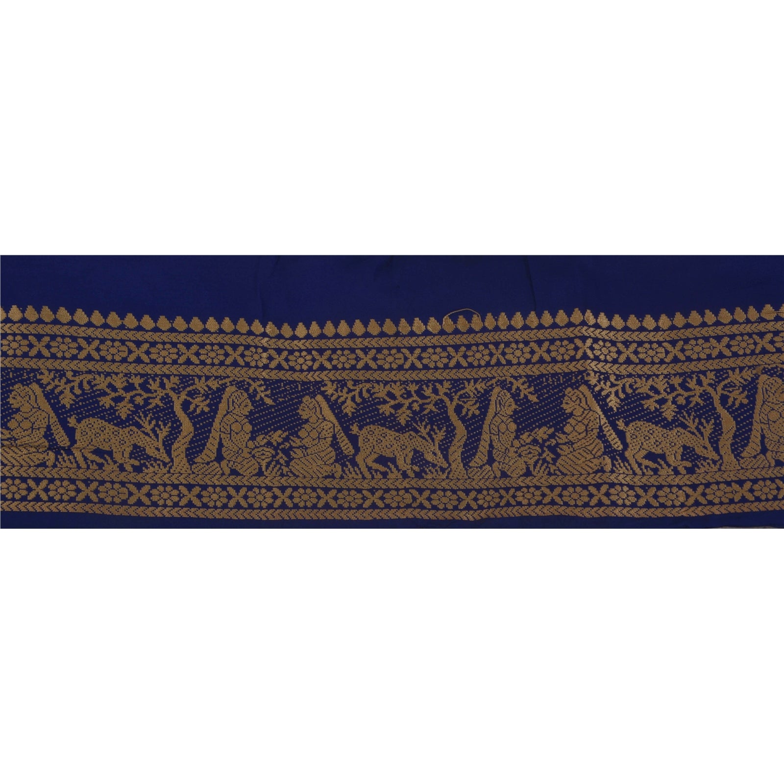 Sanskriti Vintage 1 Yard Sari Woven Border Baluchari Trim Sewing Blue Craft Lace