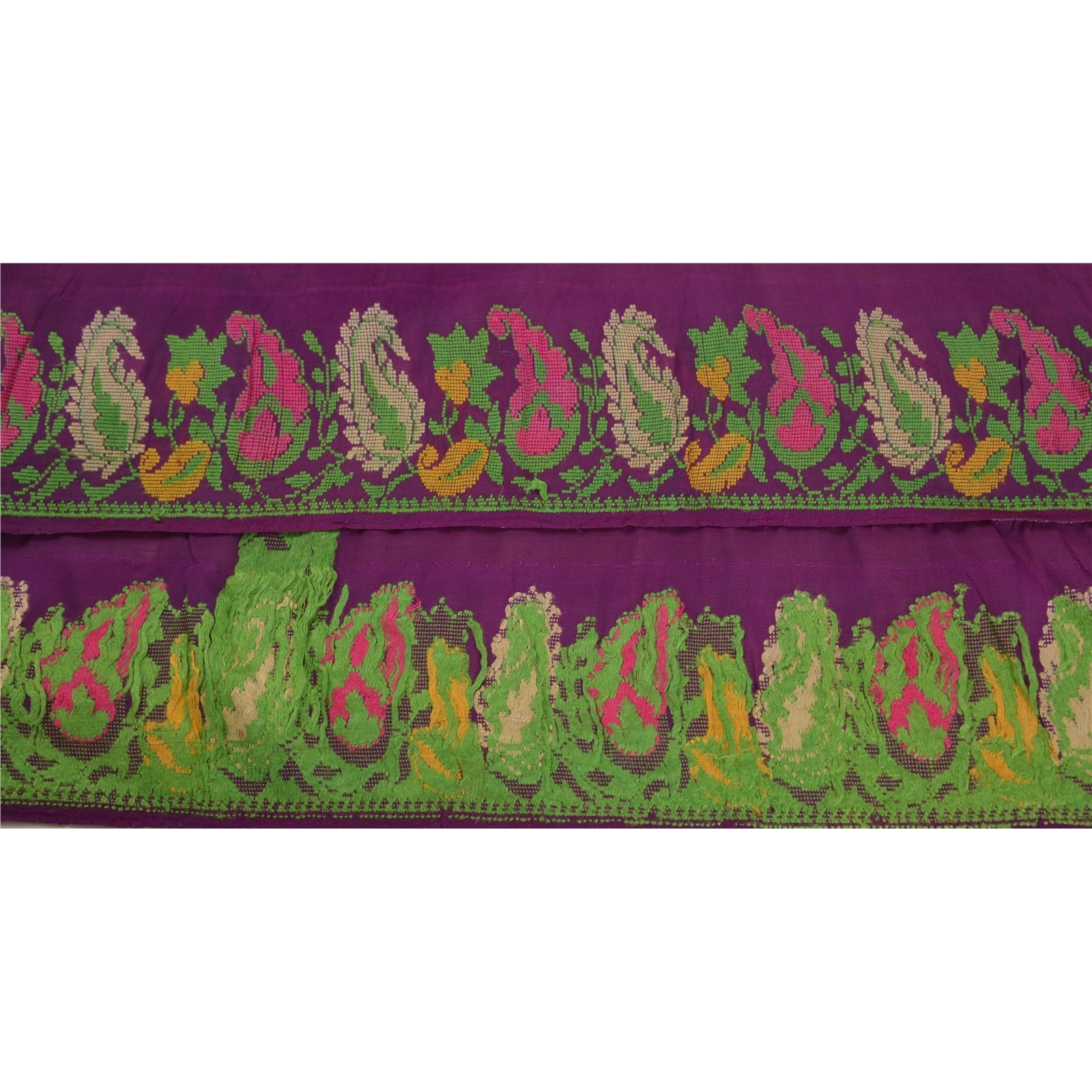 Sanskriti Vintage 1 Yd Sari Border Hand Woven Trim Sewing Craft Purple Lace
