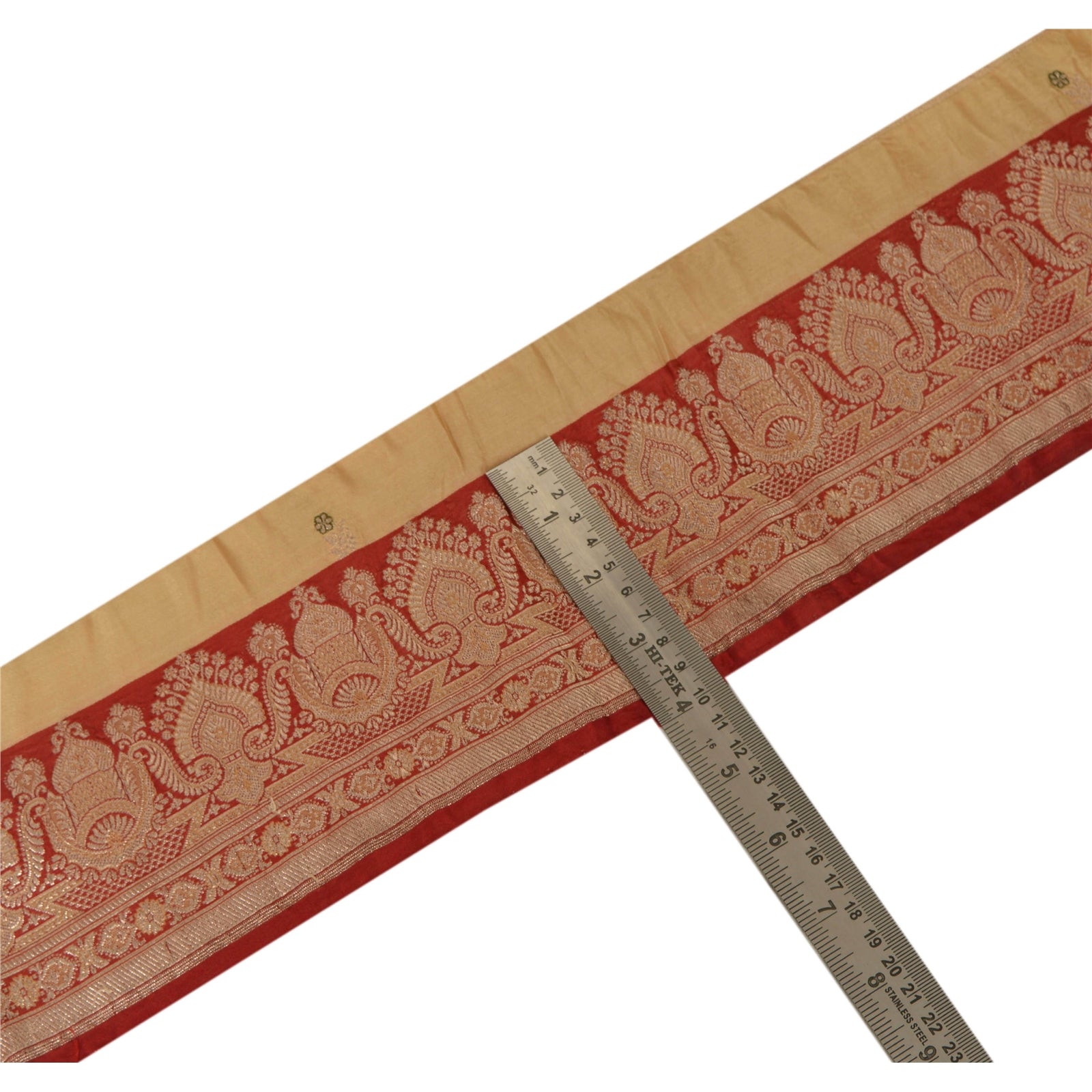 Sanskriti Vintage 1 Yd Trim Cream Sari Border Woven Brocade Craft Sewing Lace