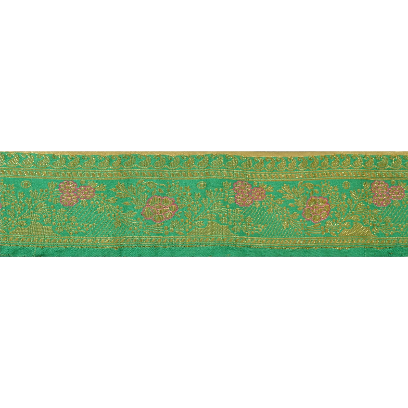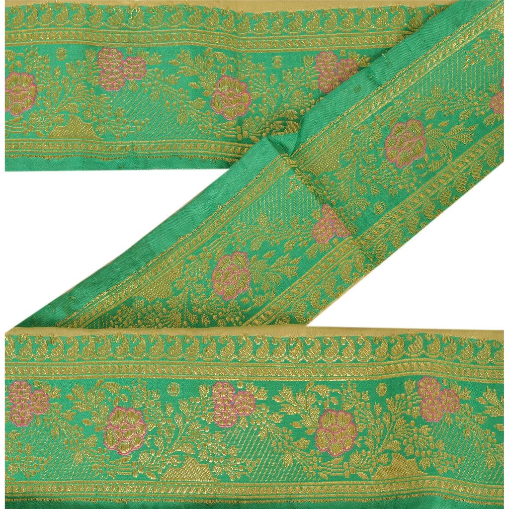 Sanskriti Vintage 1 Yd Trim Green Sari Border Woven Brocade Craft Sewing Lace
