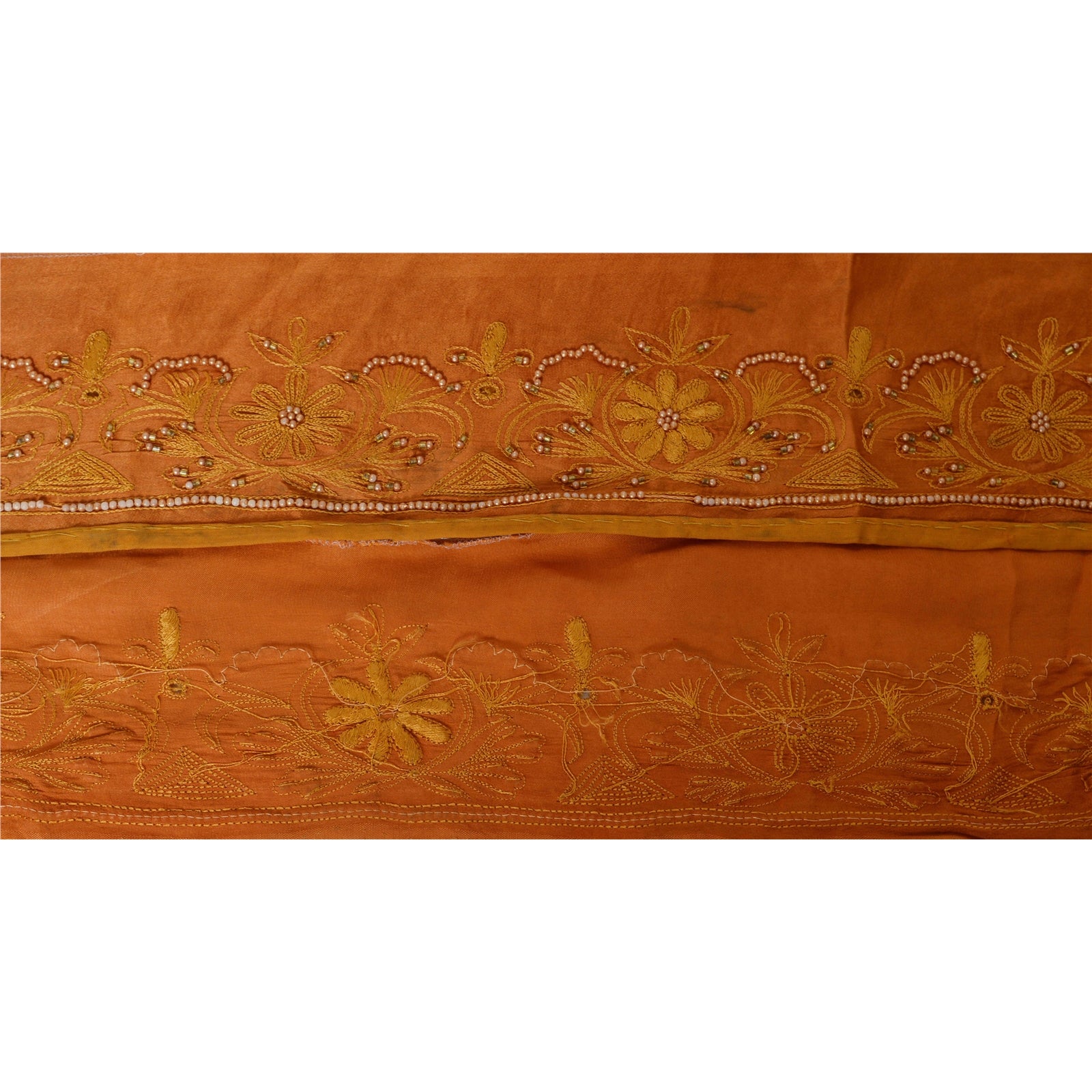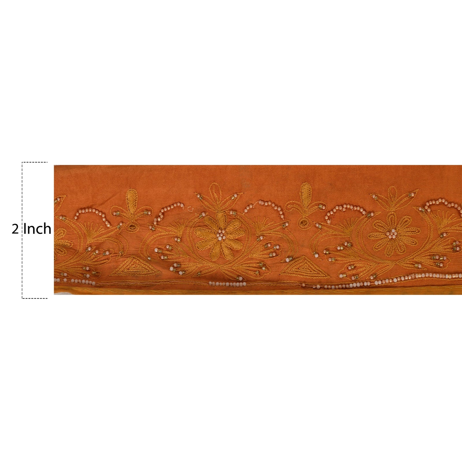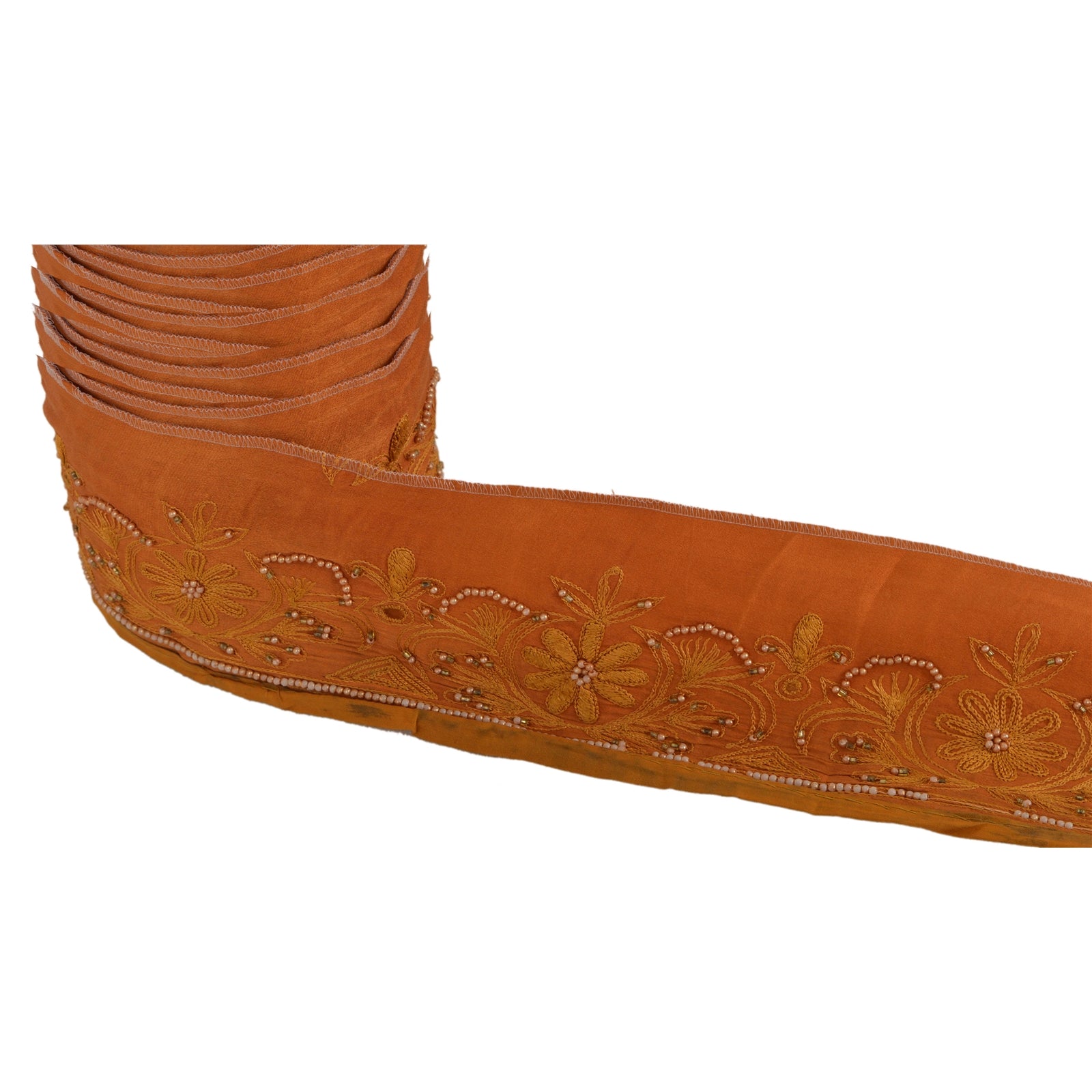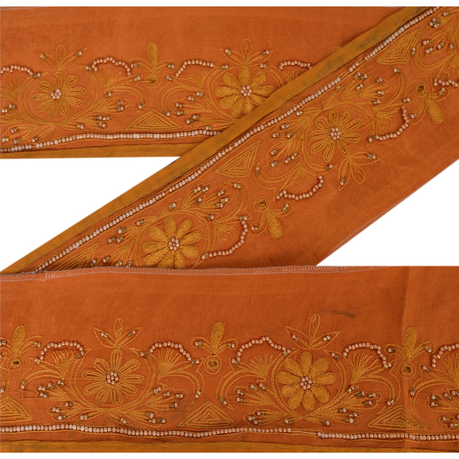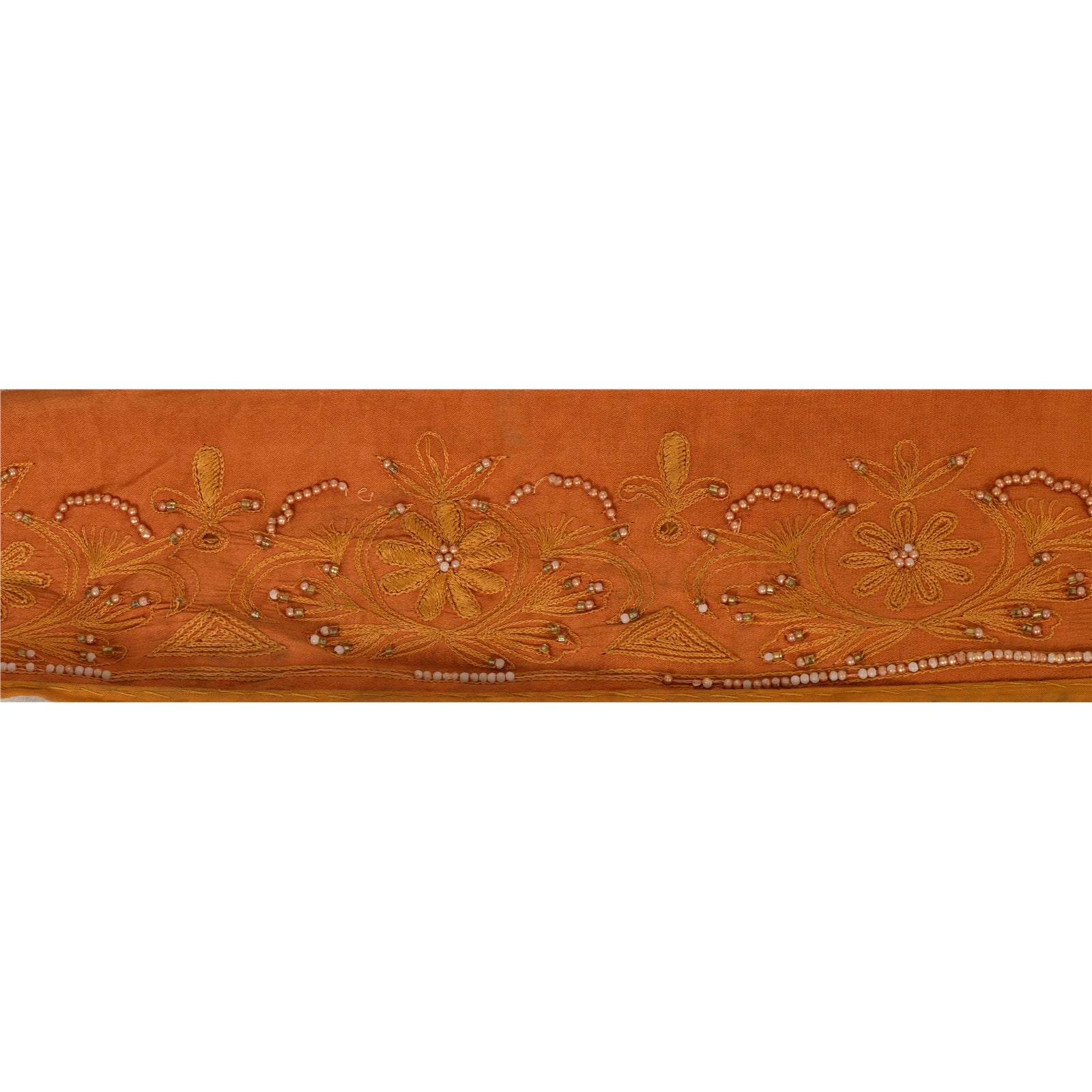Sanskriti Vintage 1 Yd Sari Border Hand Beaded Trim Sewing Orange Craft Lace