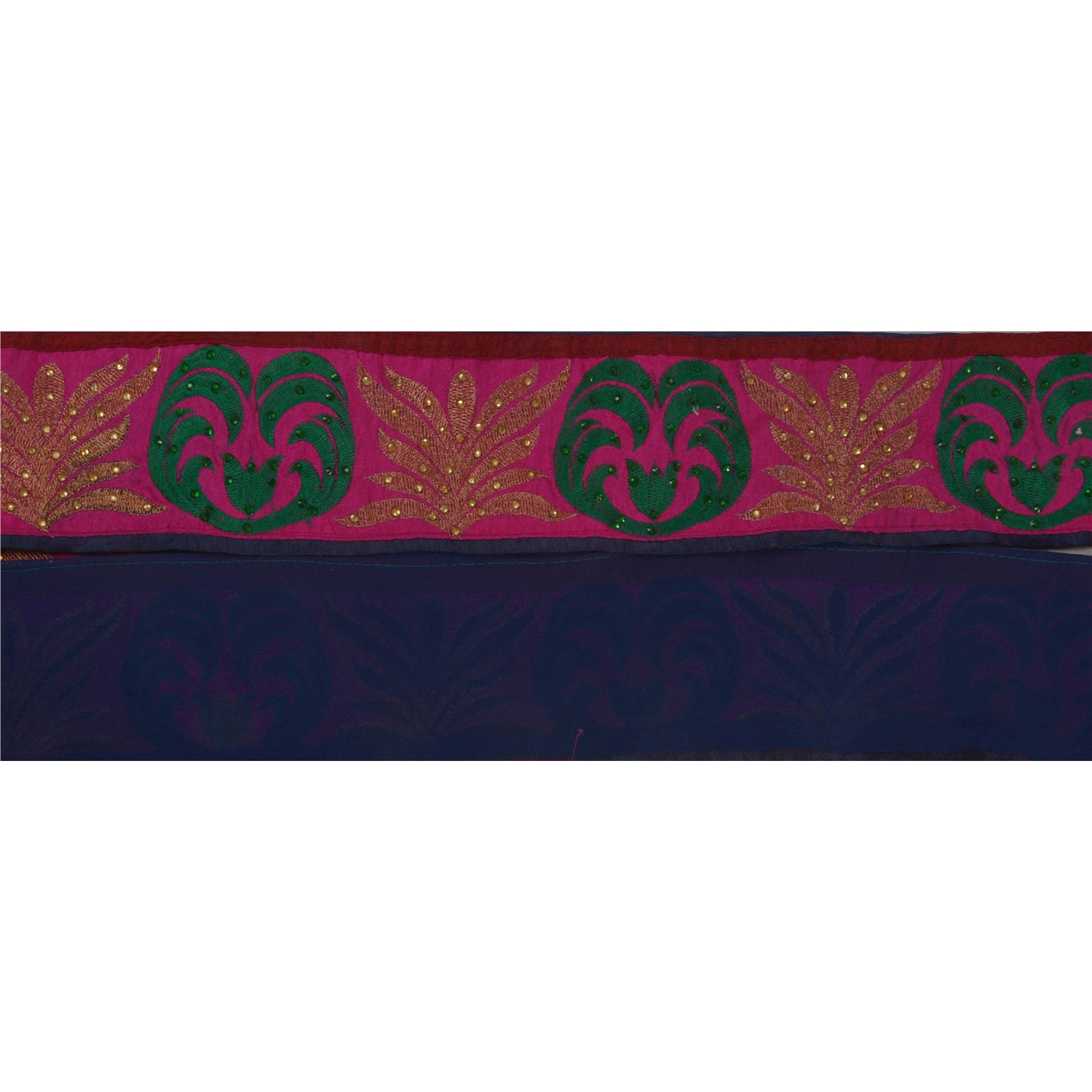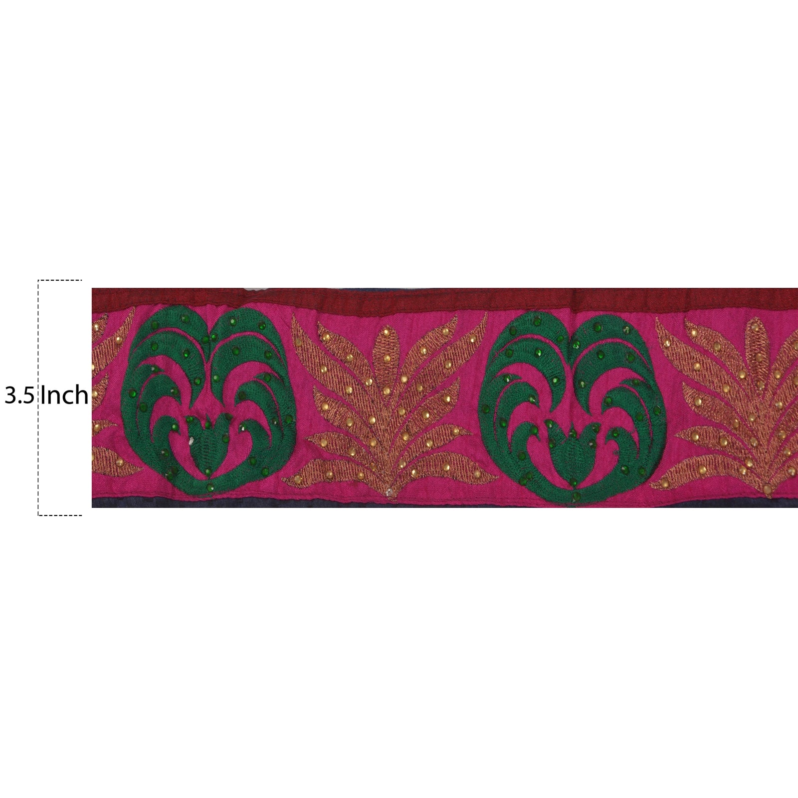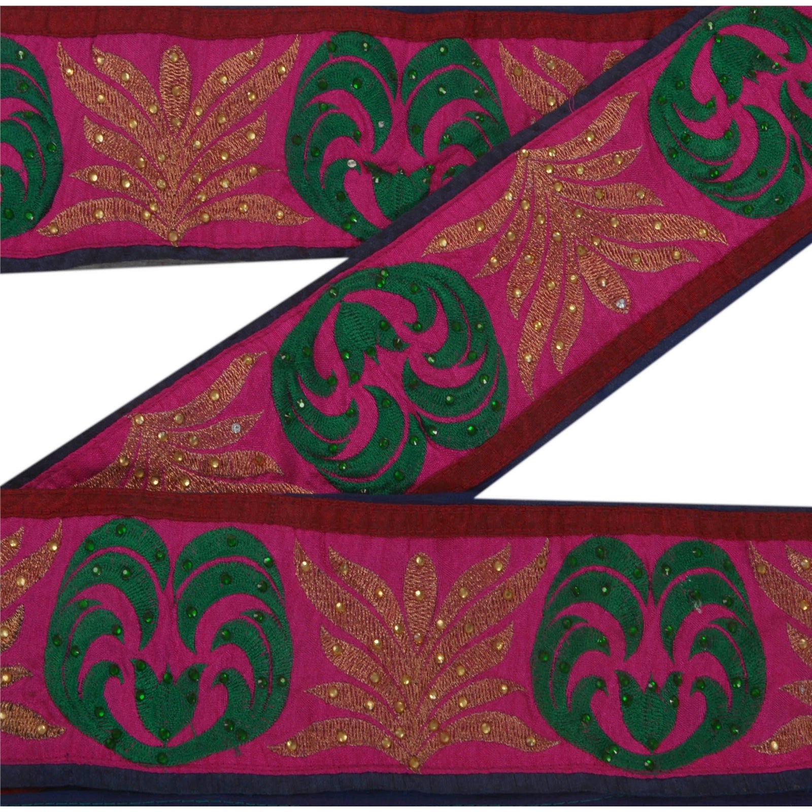 Sanskriti Vintage 1 Yd Sari Border Hand Beaded Trim Sewing Pink Craft Lace