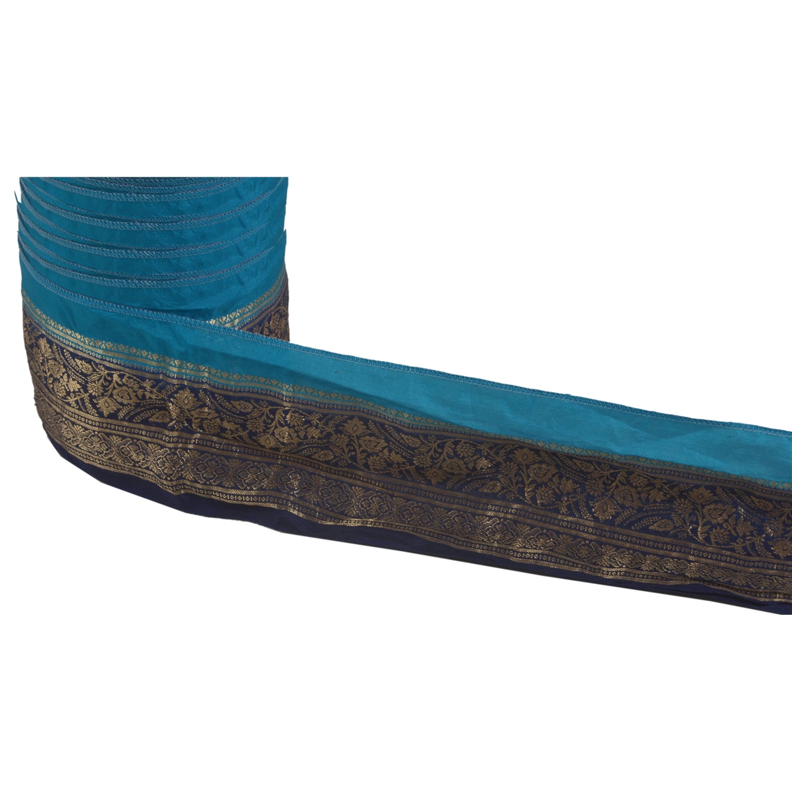 Outstanding pure silk woven brocade sari border in shades of blue color highlighting zari work. Border has beautiful floral & paisley patterns painstakingly gold zari (electroplated copper metallic thread) work. WOW!! an awesome one of a kind versatile border. 1 Quantity = 1 Yard
