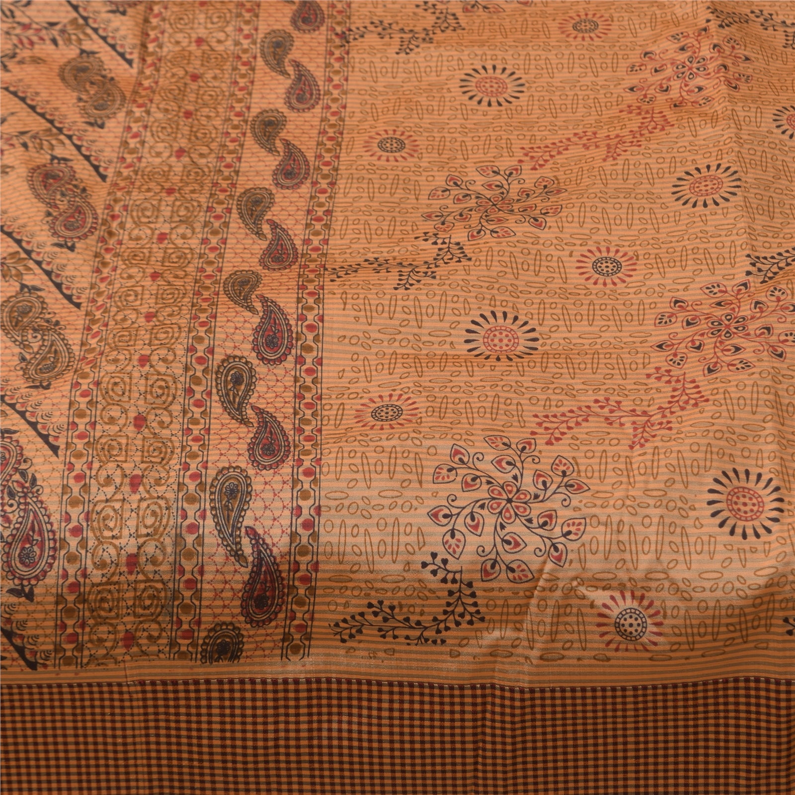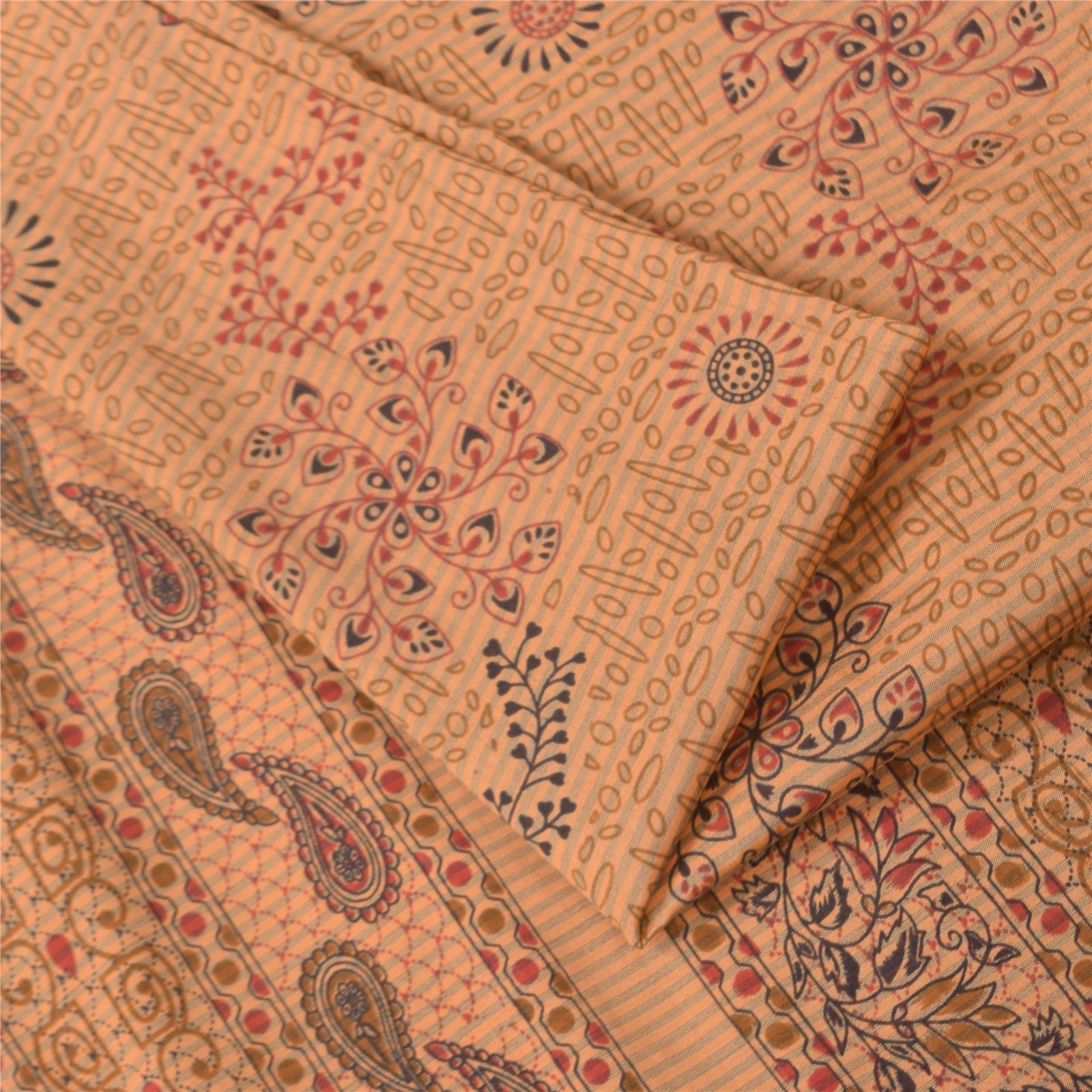 Sanskriti Vintage Art Silk Sarees Peach Printed Sari Craft 5 Yard Paisley Fabric