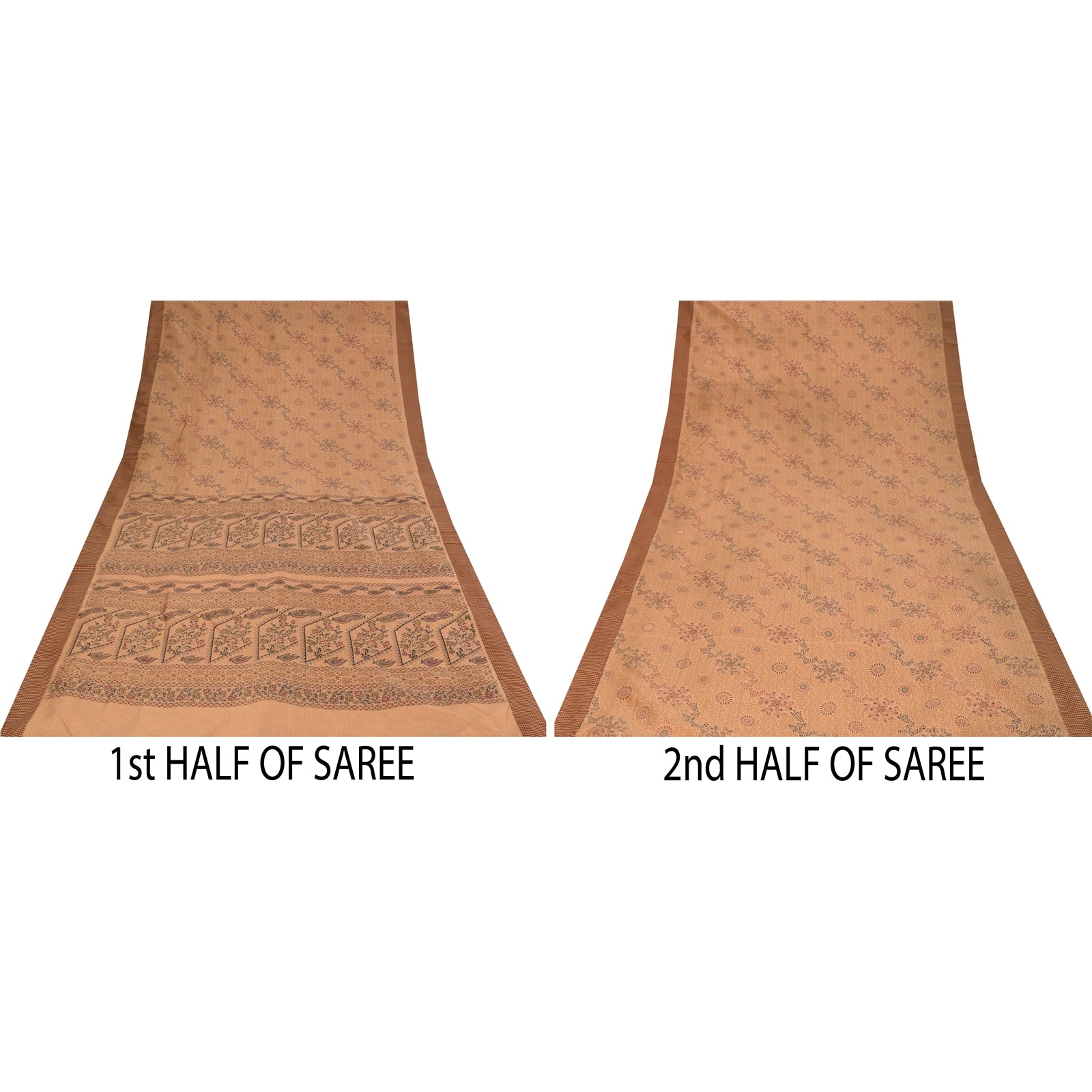 THE ITEM COLOR OR SHADE MAY BE DARKER OR LIGHTER THAN THE PICTURE. • Beautiful peach colored printed art (artificial) silk saree . • Pallu & Border has printed floral & paisley design . • Floral design in center part of sari . • All over sari has weaving work . What is special about this saree? Nice floral & paisley design with printed work on peach color base fabric is really enhancing the beauty of the saree. This unique vintage saree can be used for various crafting ideas even if you don't want to use it as a sari. Design a dress, use it as a throw, as window dressing, upholstery, sarongs, table linen and much more. Let your creative juices flow and use this decorated fabric in multiple fashion. Shipping Note: 'International buyers please note: Import duties, taxes, and charges are not included in the item price or postage cost. These charges are the buyer's responsibility. Please check with your country's customs office to determine what these additional costs will be prior to bidding or buying. Buyer will pay custom duty/tax. It is calculated and charged differently by every country. As a seller I do not have any control over it. VAT or sales tax is calculated by the platform at the time of checkout. Customs charge is payable at the time of delivery.' PR-31797