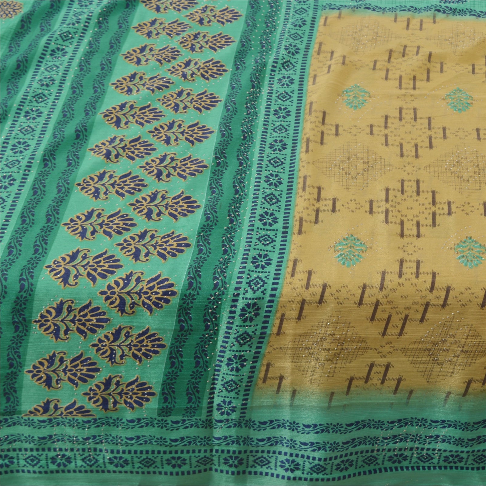 Moss Crepe- This sari is polyester but it feels like crepe silk.