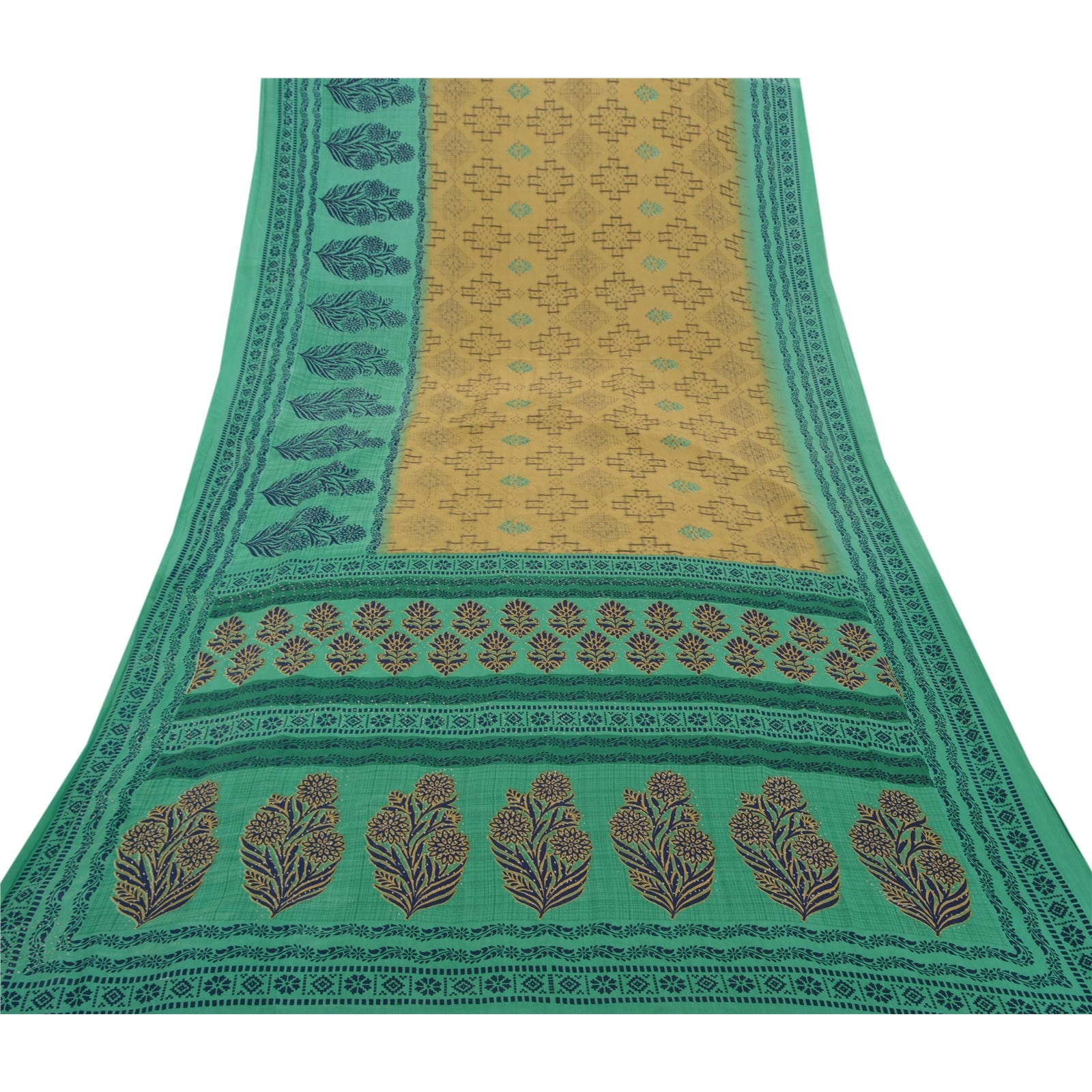 This unique vintage saree can be used for various crafting ideas even if you don't want to use it as a sari. Design a dress, use it as a throw, as window dressing, upholstery, sarongs, table linen and much more. Let your creative juices flow and use this decorated Sustainable Fabric in multiple fashion.