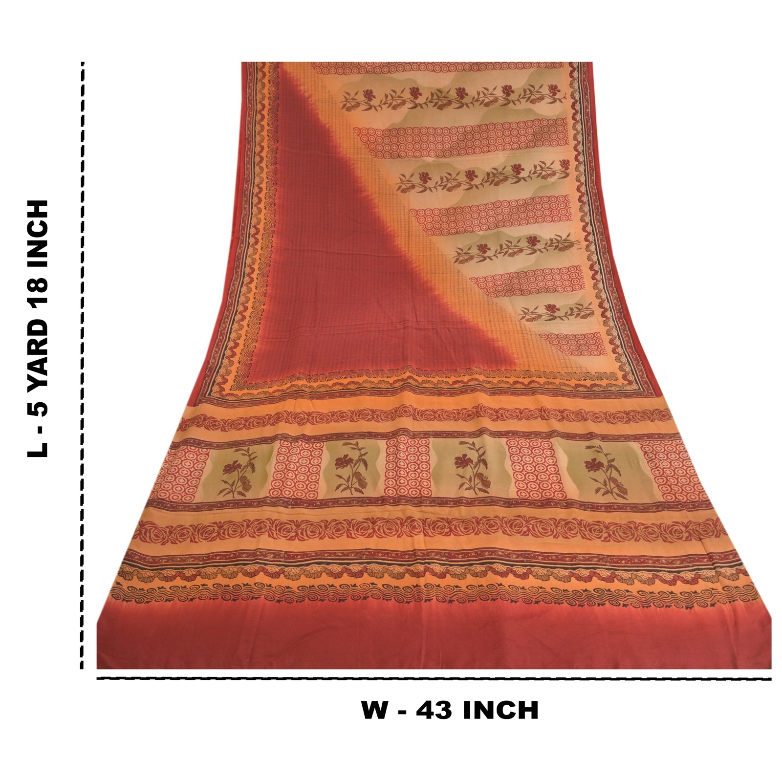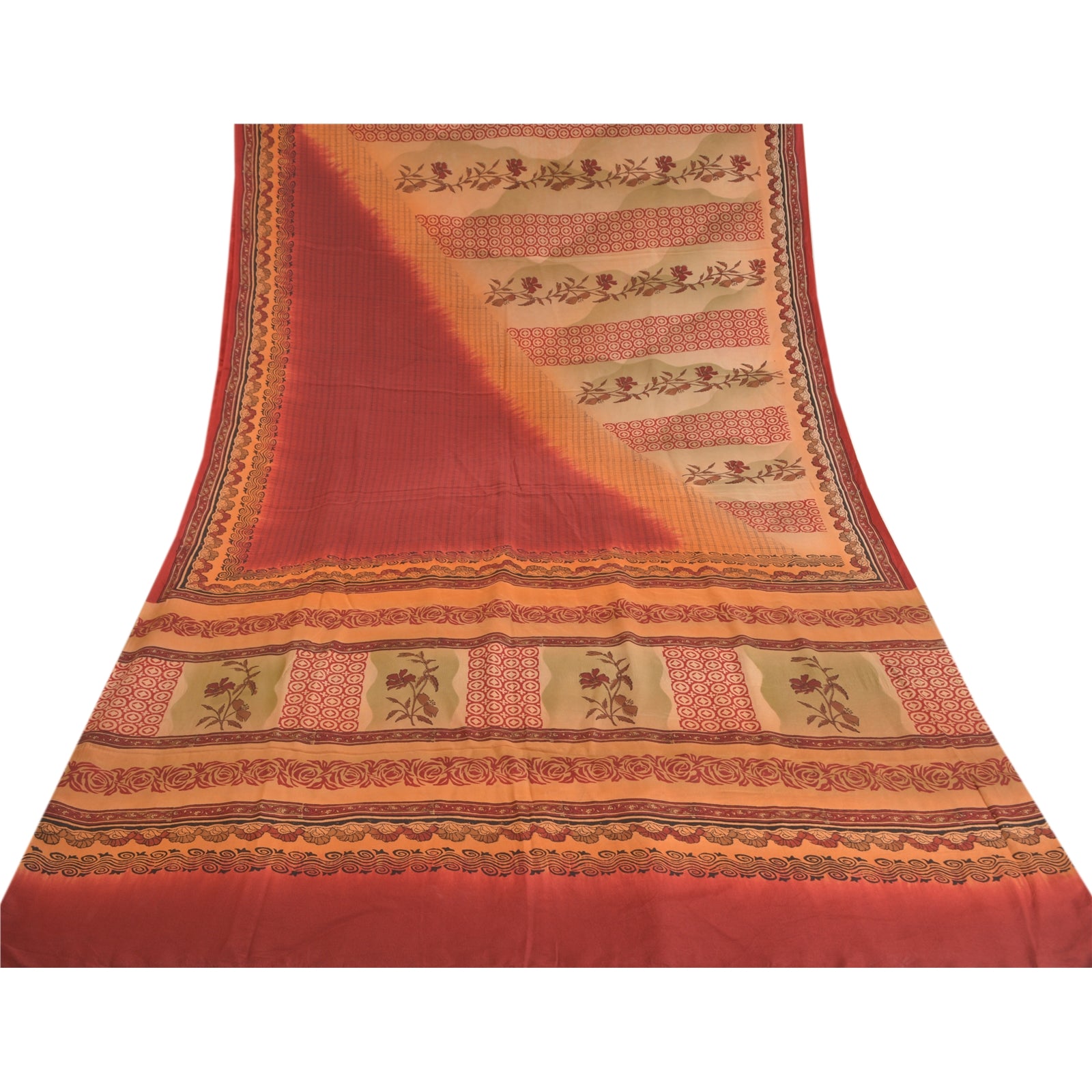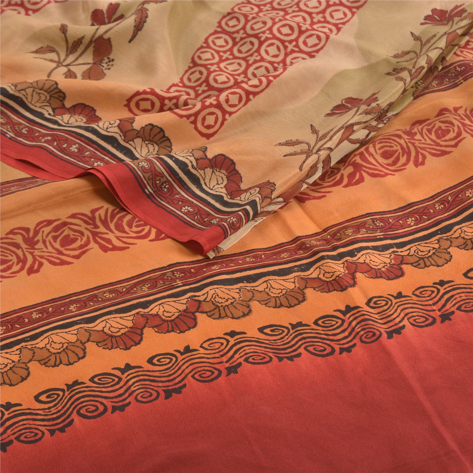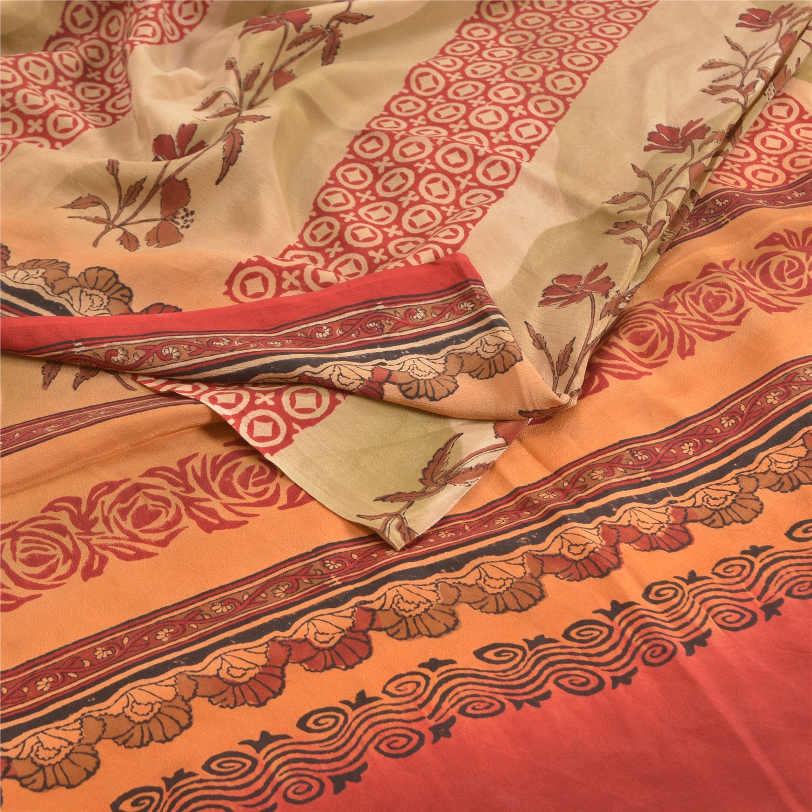 Nice beige 100% pure crepe silk printed sari. Pallu & Border has printed floral & design. Floral & geometric design in center part of sari. This unique vintage saree can be used for various crafting ideas even if you don't want to use it as a sari. Design a dress, use it as a as window dressing, upholstery, sarongs, throw, dress making and table linen much more. Let your creative juices flow and use this decorated Sustainable Fabric in multiple fashion. As the item is vintage, mild stains are expected.