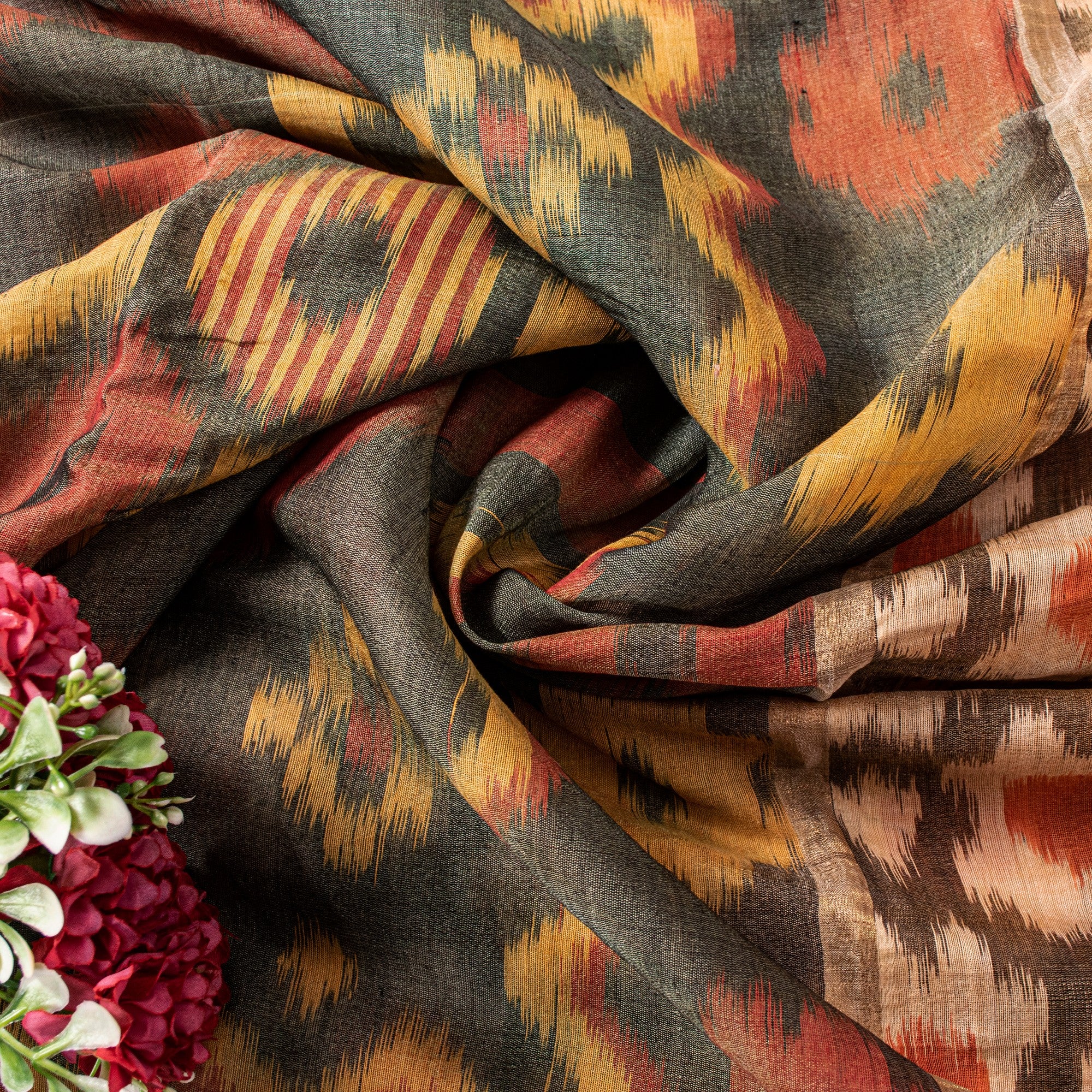 • Authentic Heritage: A beautiful vintage Sambhalpuri saree featuring traditional Ikat (Tie-Dye) hand-loom weaving, known for its intricate artistry. • Premium Fabric: Crafted from a high-quality Cotton Silk blend, offering a soft feel, elegant drape, and a subtle natural sheen. • Vibrant Color Palette: The saree features a bold black base body. • Traditional Motifs: Adorned with classic ethnic patterns, including Floral Geometric motifs on the body & border. Golden zari woven work on borders. • Hand-Woven Excellence: Entirely hand-woven on a traditional loom, showcasing the unique textures and slight variations that define authentic handmade textiles. • Dimensions & Size: Approximately 5 Yards (5 meters) in length; perfect for traditional draping or creative upcycling projects (like making dresses or curtains). • Versatile Style: An ideal choice for ethnic wear, weddings, festivals, or as a unique addition to a vintage textile collection. • Condition: Excellent vintage condition, preserved with care to maintain its cultural charm and fabric integrity. • THE ITEM COLOR OR SHADE MAY BE DARKER OR LIGHTER THAN THE PICTURE.' • International buyers please note: Import duties, taxes, and charges are not included in the item price or postage cost. Buyer will pay custom duty/tax,VAT, and any applicable charges at the time of delivery. PT-6331