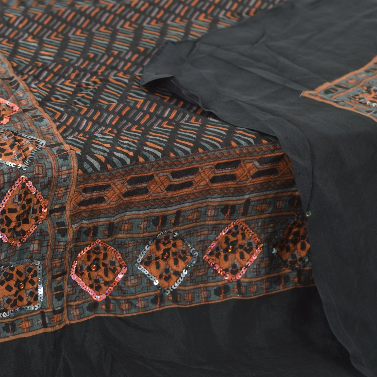 'THE ITEM COLOR OR SHADE MAY BE DARKER OR LIGHTER THAN THE PICTURE.' Beautiful black colored pure silk embroidered printed long scarf/dupatta. Center portion of the dupatta has floral design with Printed work. Border has floral design embellished with pink/orange work, blue/black/orange & gray color printed is really enhancing beauty of the dupatta/stole. This dupatta/stole can be used for various crafting ideas too. Use it for dress designing, as a throw, as window dressing, upholstery, table linen and much more. Let your creative juices flow. Shipping note: International buyers please note: Import duties, taxes, and charges are not included in the item price or postage cost. These charges are the buyer's responsibility. Please check with your country's customs office to determine what these additional costs will be prior to bidding or buying. Buyer will pay custom duty/tax. It is calculated and charged differently by every country. As a seller I do not have any control over it. VAT or sales tax is calculated by the platform at the time of checkout. Customs charge is payable at the time of delivery.' SKU: DC-54925