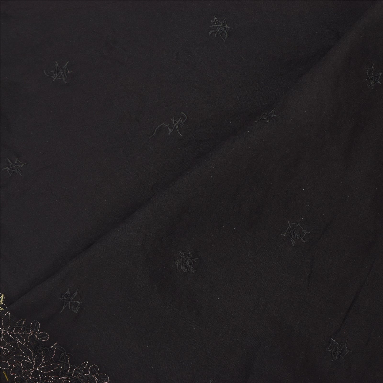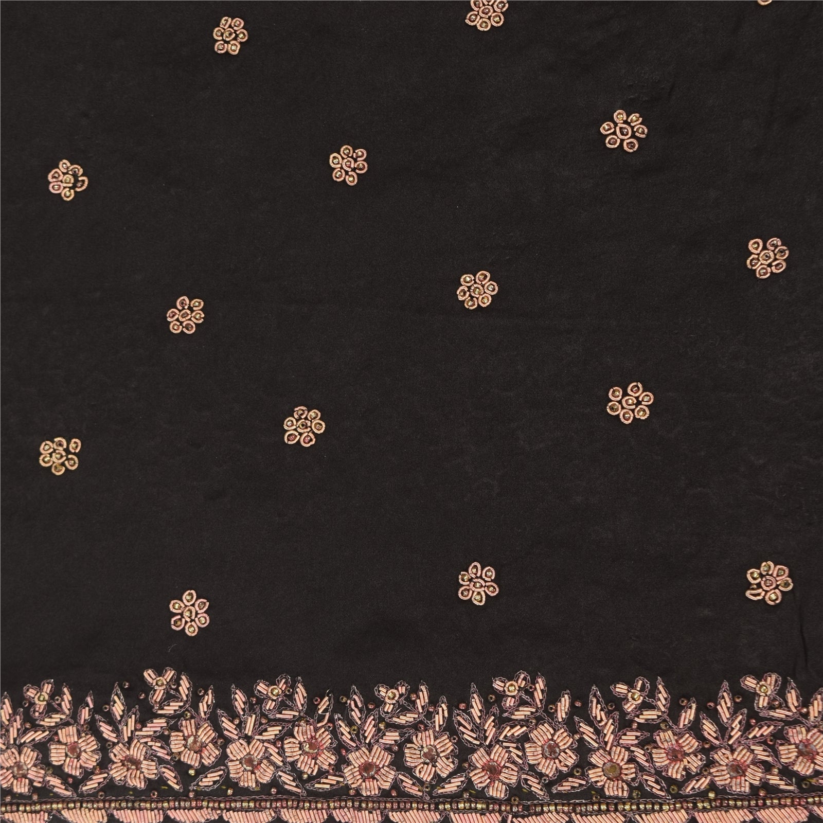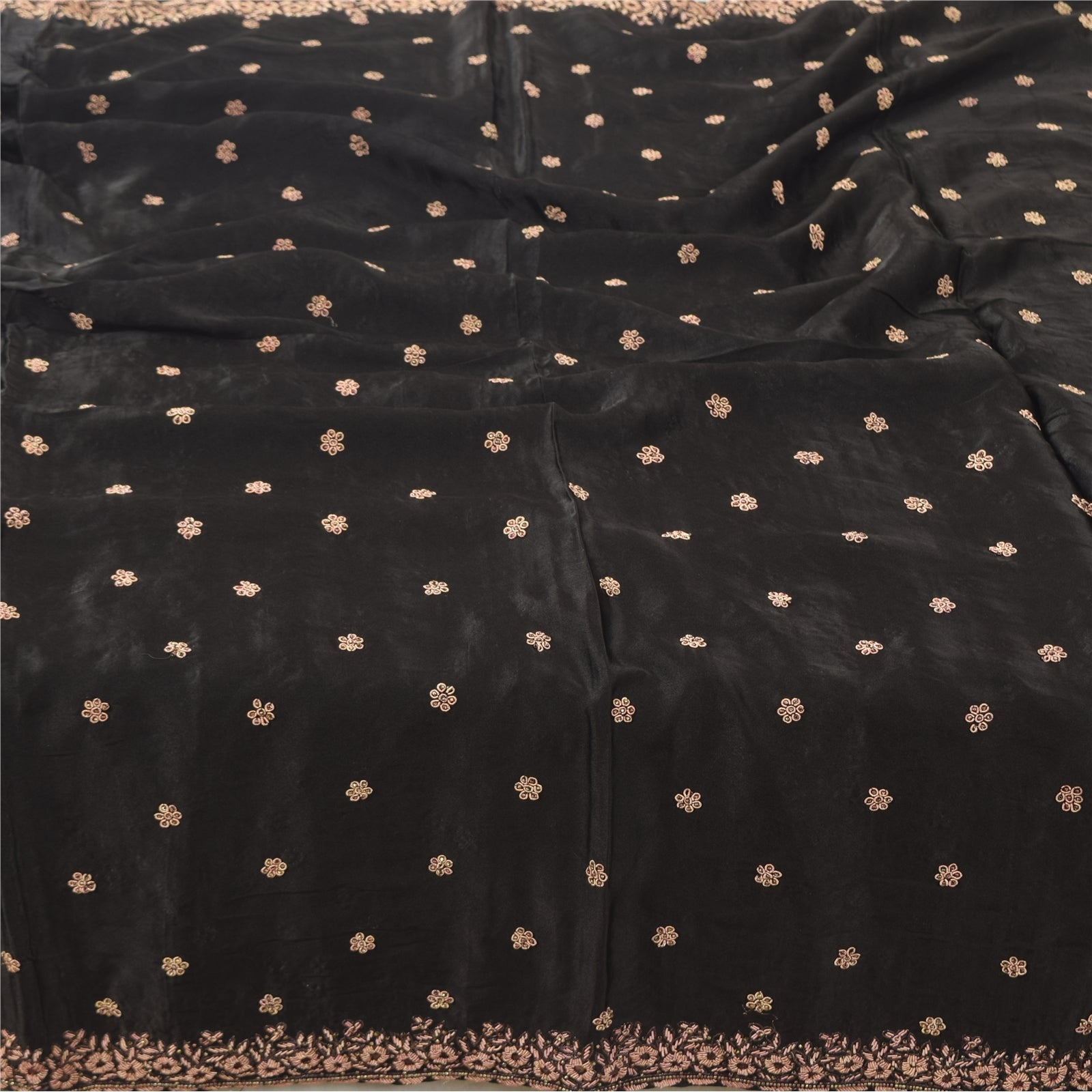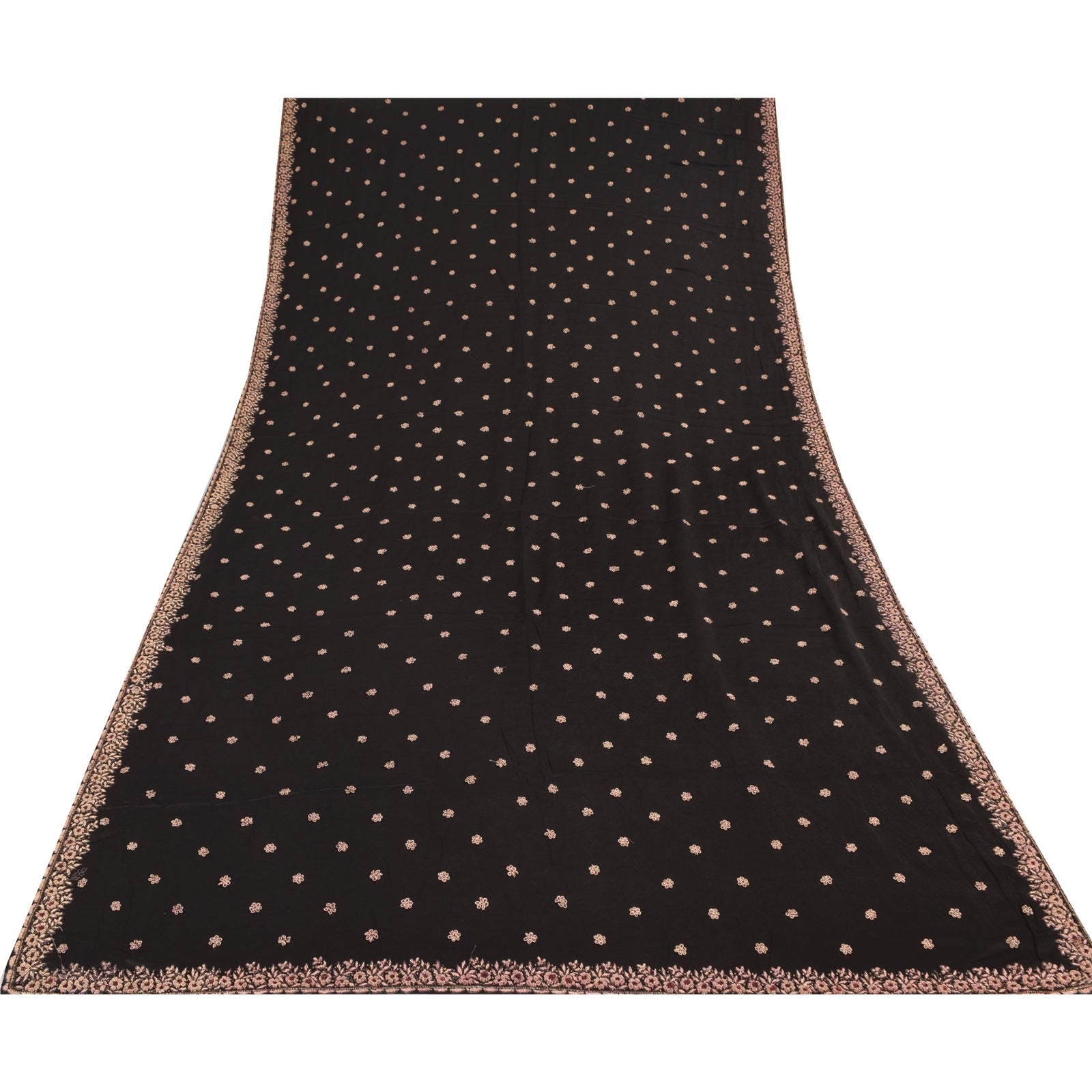 Sanskriti Vintage Black Dupatta Long Stole Pure Silk Hand Beaded Premium Scarves