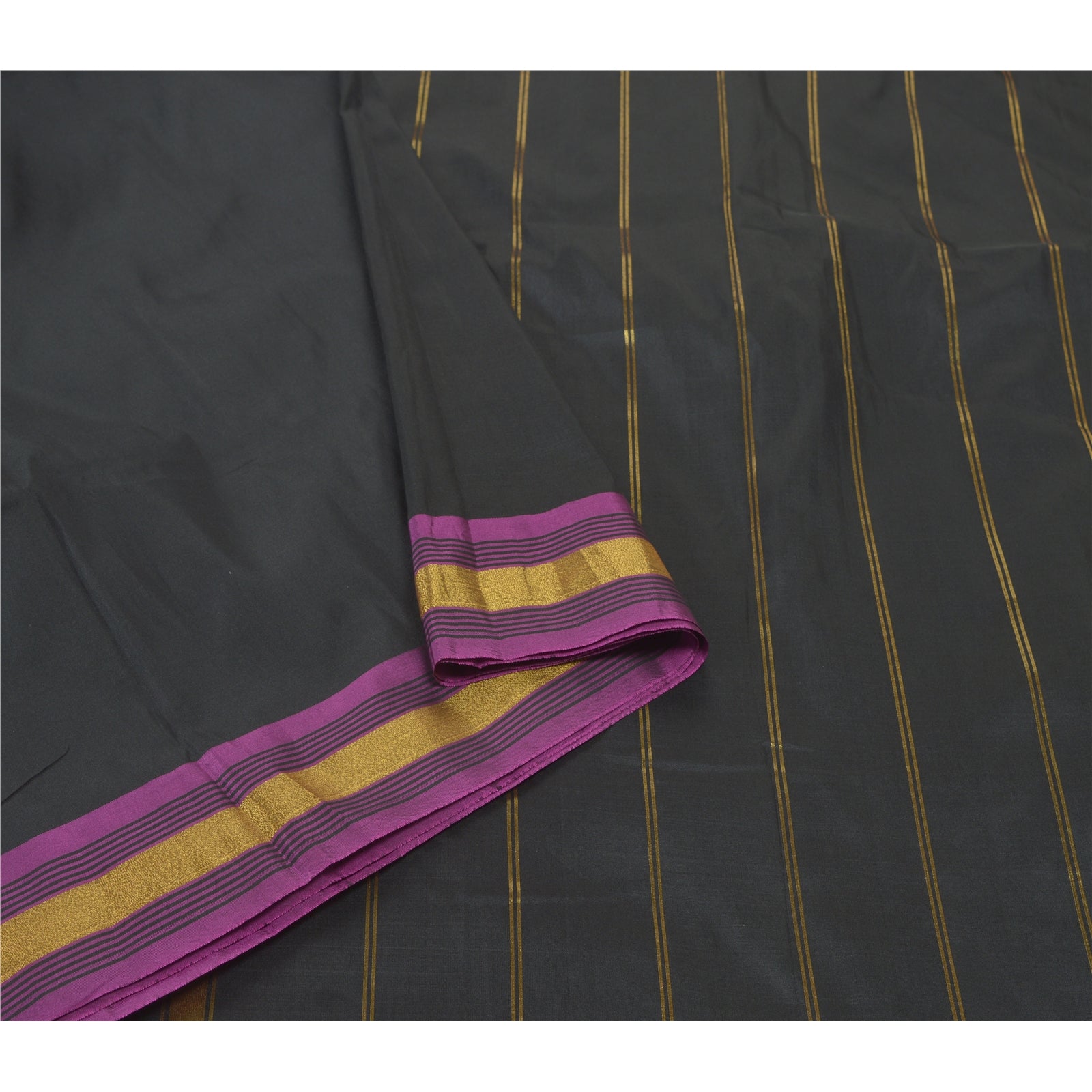 Sanskriti Vintage Black Indian Sari Art Silk Woven Sarees Craft Premium Sustainable Fabric