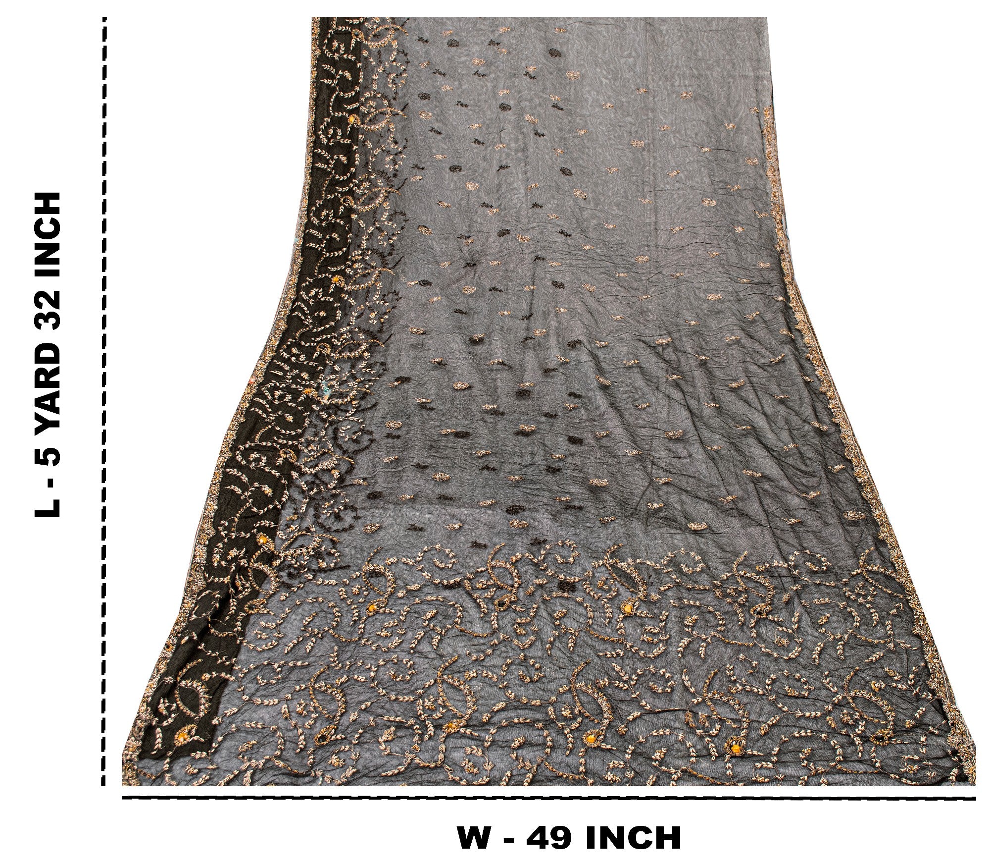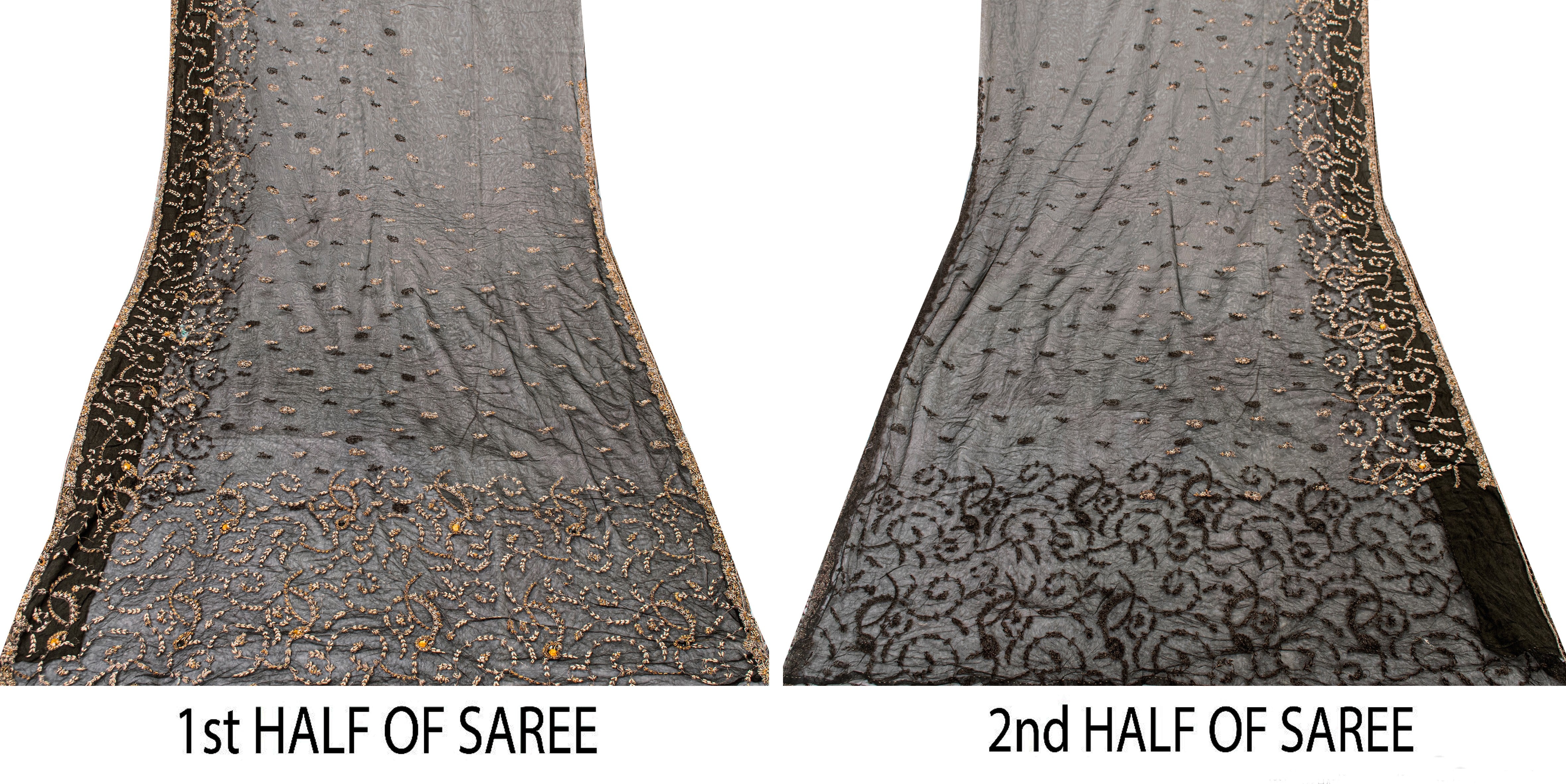 • Brand: • Product Type: Saree/Sarees/Sari Craft Fabric • Fabric: Net Mesh • Color: Black (As Shown In Images) • Length: Approx. 5.5+ Yards • Width: Approx. 1+ Yards • Work: Hand Embroidered Floral Design With Pure Metallic Zari Zardozi Work On Pallu, Border & Center Part Of Saree. • Texture: Lightweight, Soft, Flowy With Elegant Drape • Condition: Vintage / Pre-Owned • Uses: • Ideal For Fashion Designers, Collectors & Fabric Lovers. Designer Saree Draping • Bridal & Festive Outfits • Lehenga, Gown, Dupatta Making • Craft Projects, Upcycling, Ethnic Décor The Item Color Or Shade May Be Darker Or Lighter Than The Picture.' International Buyers Please Note: Import Duties, Taxes, And Charges Are Not Included In The Item Price Or Postage Cost. Buyer Will Pay Custom Duty/Tax,Vat, And Any Applicable Charges At The Time Of Delivery. Ps-64469