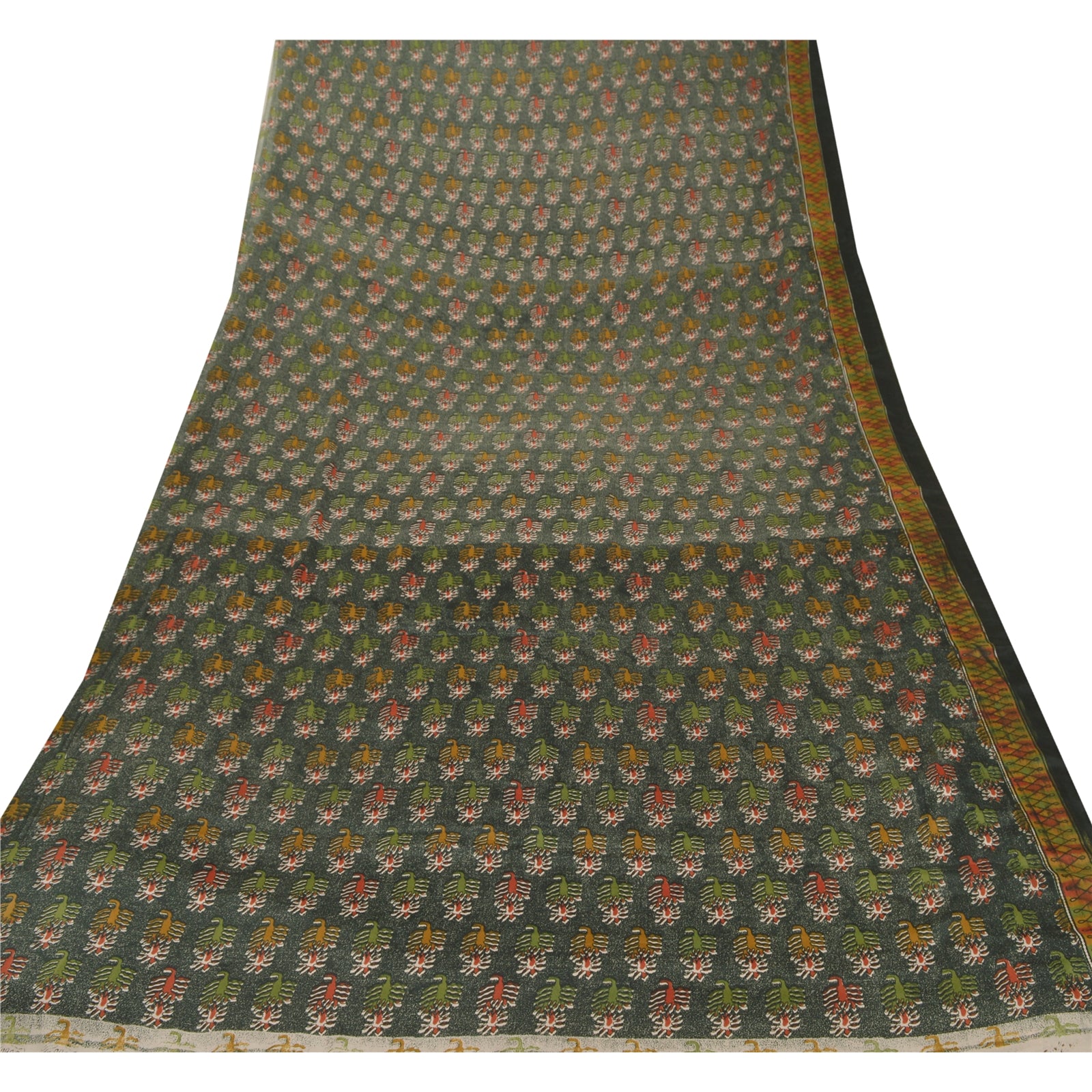 • Lovely black colored printed moss crepe saree . • Allover sari has printed abstract design . Moss Crepe- This sari is polyester but it feels like crepe silk. This unique vintage saree can be used for various crafting ideas even if you don't want to use it as a sari. Design a dress, use it as a throw, as window dressing, upholstery, sarongs, table linen and much more. Let your creative juices flow and use this decorated fabric in multiple fashion.