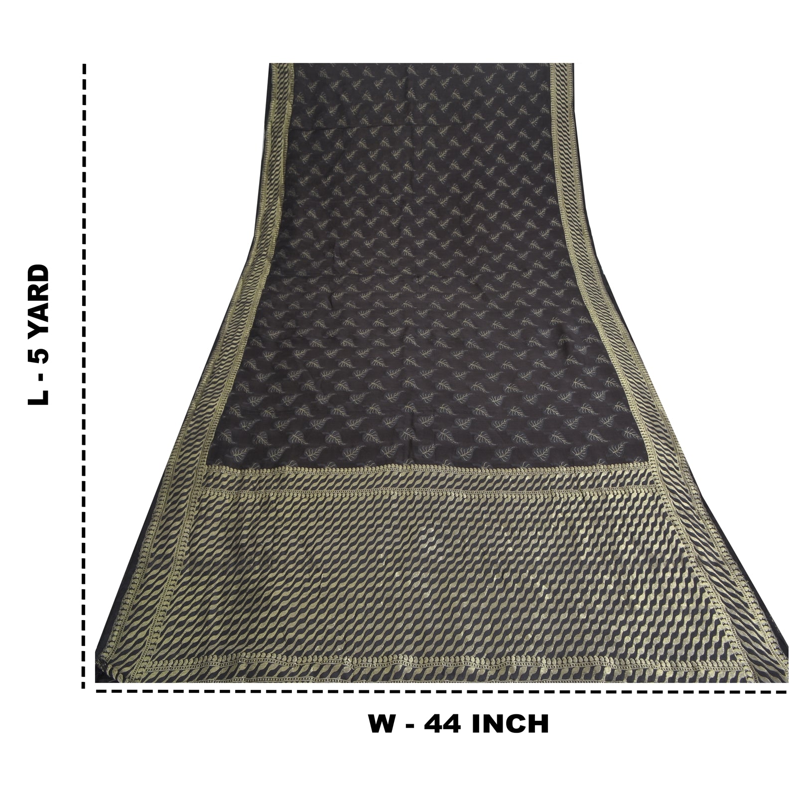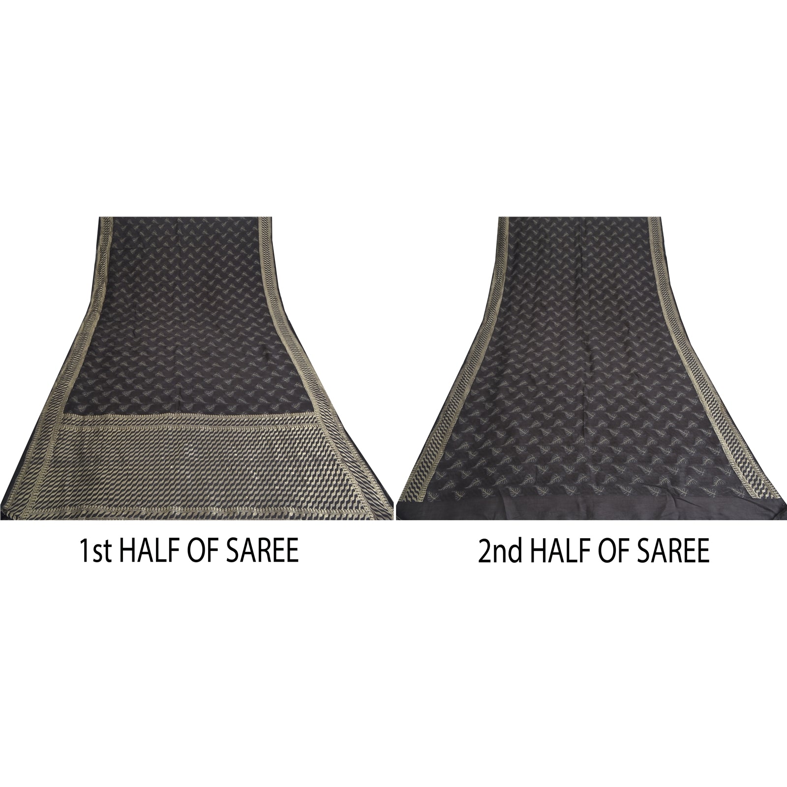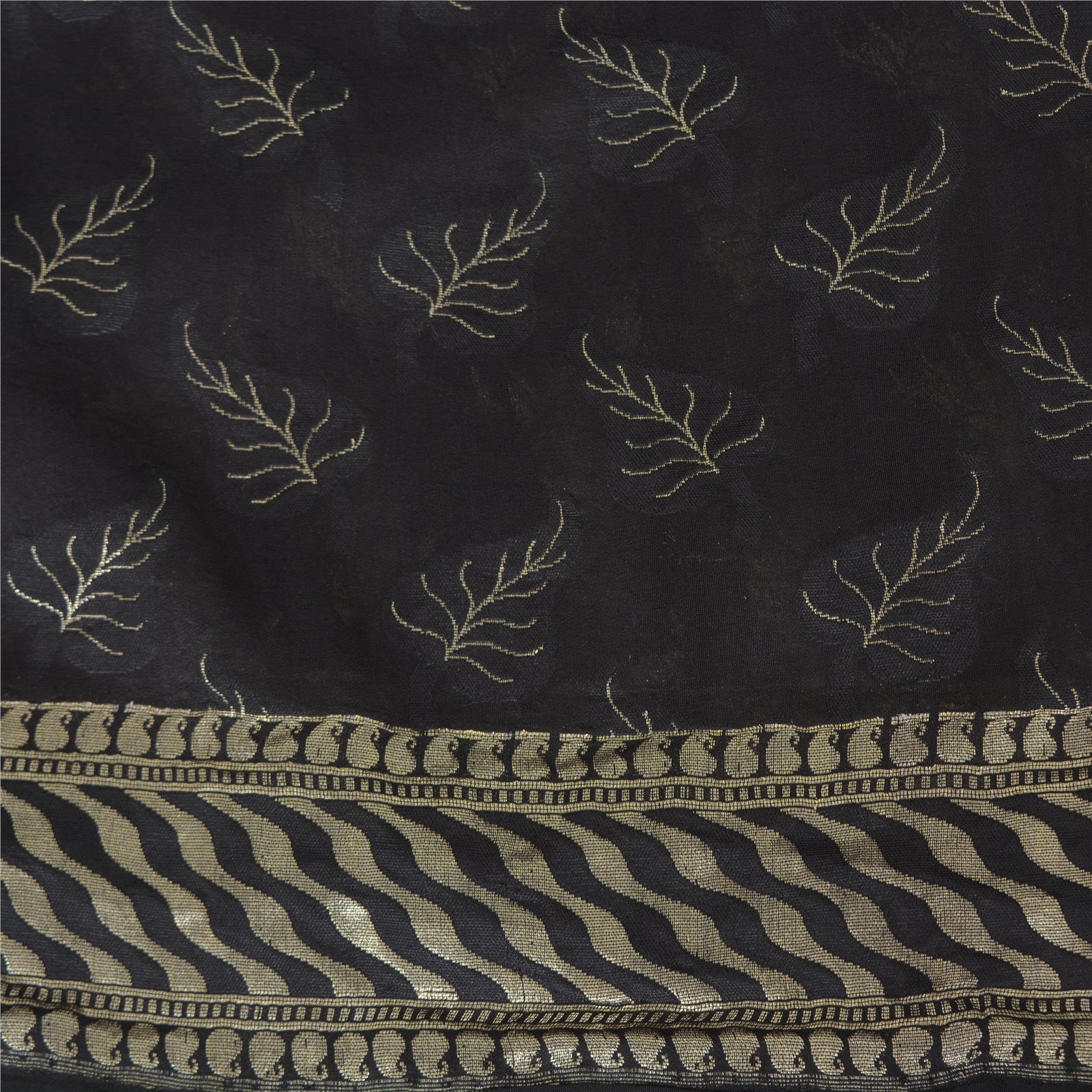 THE ITEM COLOR OR SHADE MAY BE DARKER OR LIGHTER THAN THE PICTURE.' An Awesome Sari In 100% Pure Silk Black Colored Hand Woven Sari/Sustainable Fabric. Pallu & Border Features paisley/waves/leaf design embellished with metallic zari work. You Can See Center Portion Of Sari similar zari work With same leafs patterns. This unique vintage saree can be used for various crafting ideas for example design a dress, use it as a throw, as window dressing, upholstery, table linen and much more. Let your creative juices flow and use this decorated Sustainable Fabric in multiple fashion Shipping note: International buyers please note: Import duties, taxes, and charges are not included in the item price or postage cost. These charges are the buyer's responsibility. Please check with your country's customs office to determine what these additional costs will be prior to bidding or buying. Buyer will pay custom duty/tax. It is calculated and charged differently by every country. As a seller I do not have any control over it. VAT or sales tax is calculated by the platform at the time of checkout. Customs charge is payable at the time of delivery.