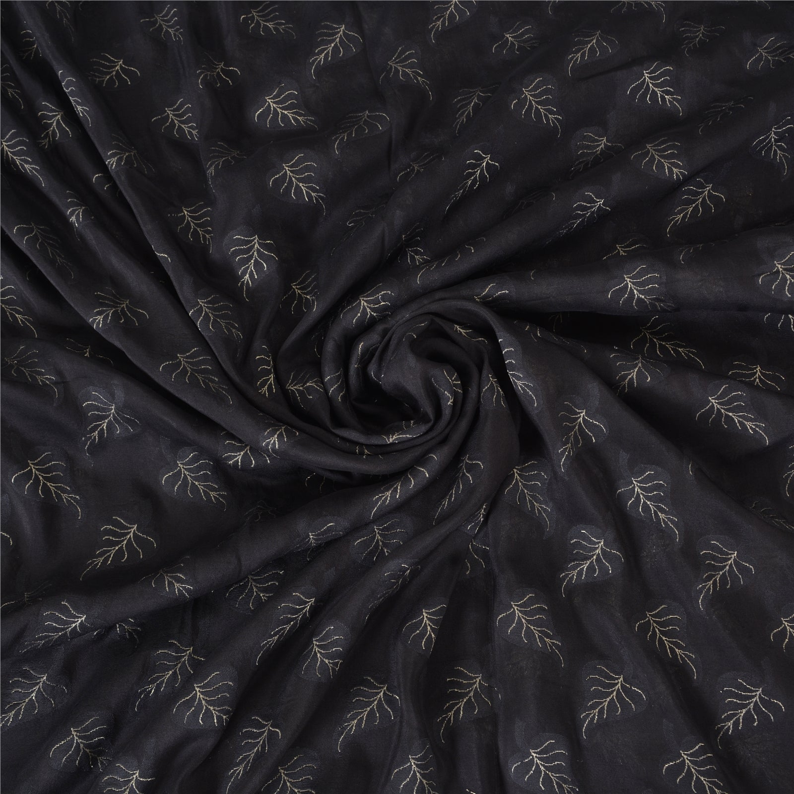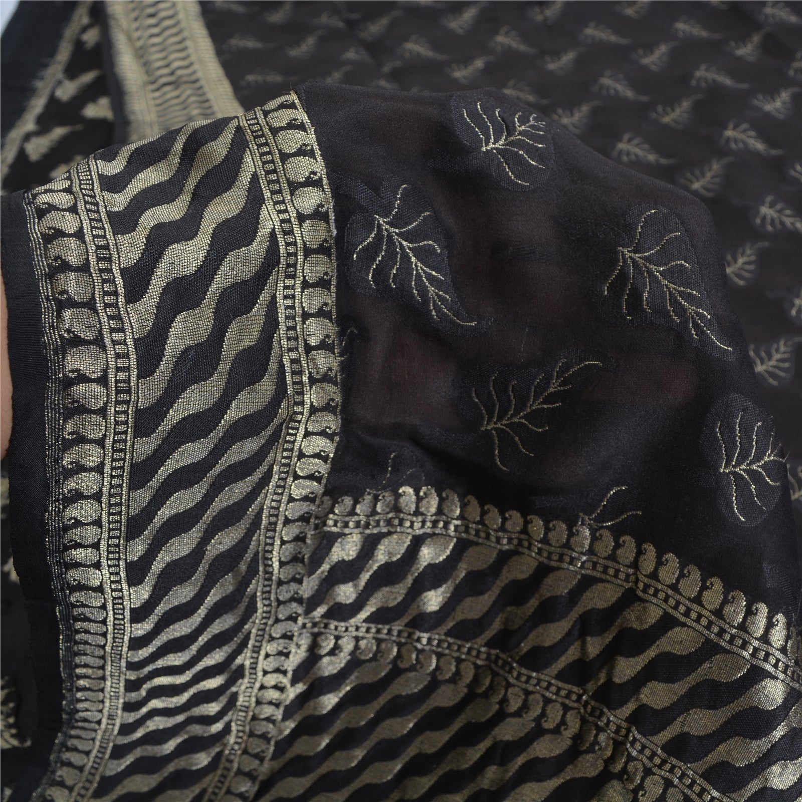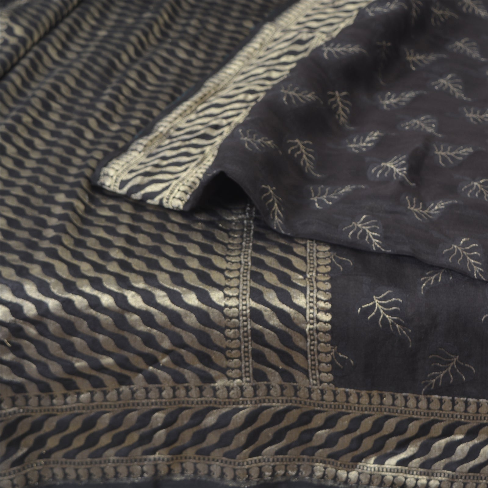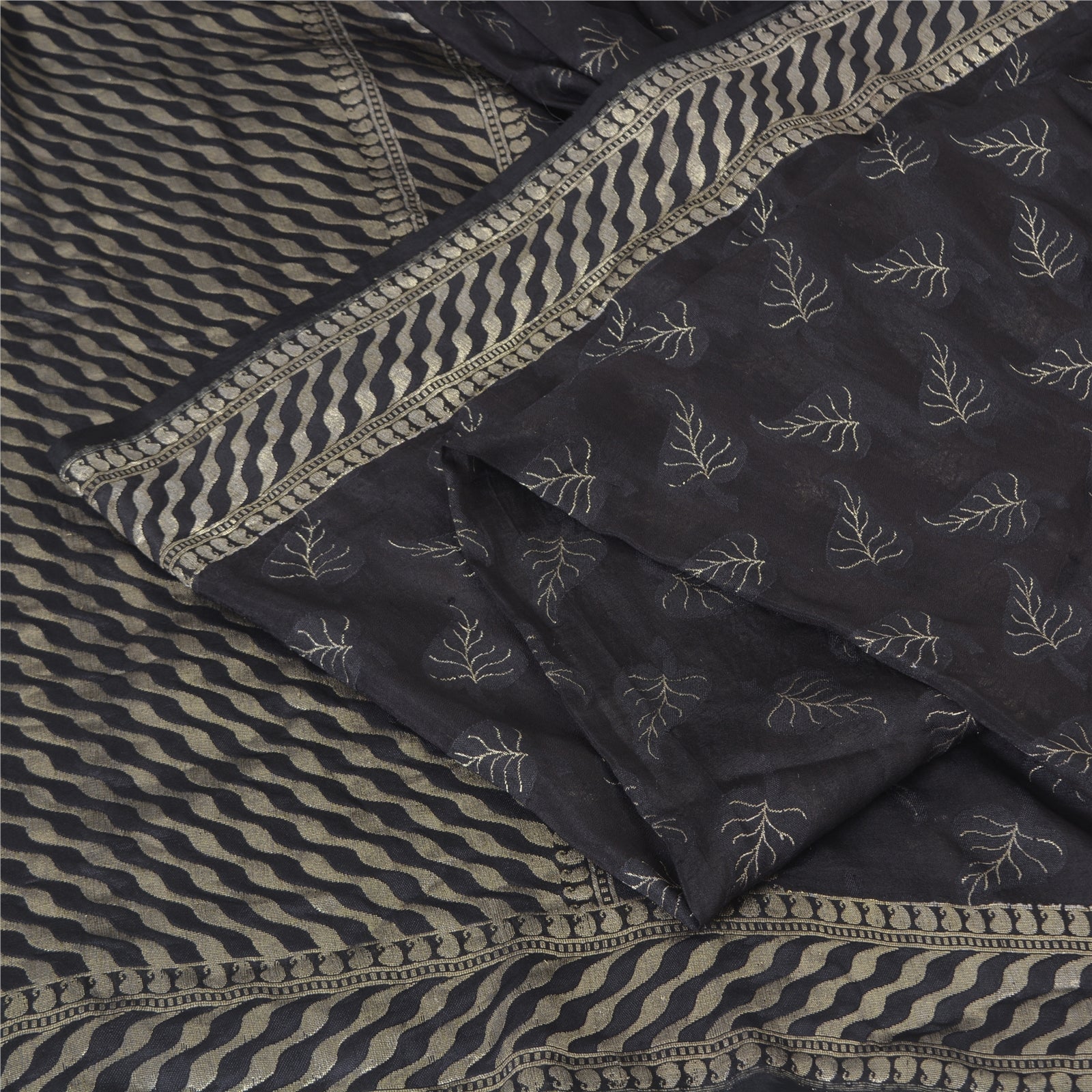 THE ITEM COLOR OR SHADE MAY BE DARKER OR LIGHTER THAN THE PICTURE.' An Awesome Sari In 100% Pure Silk Black Colored Hand Woven Sari/Sustainable Fabric. Pallu & Border Features paisley/waves/leaf design embellished with metallic zari work. You Can See Center Portion Of Sari similar zari work With same leafs patterns. This unique vintage saree can be used for various crafting ideas for example design a dress, use it as a throw, as window dressing, upholstery, table linen and much more. Let your creative juices flow and use this decorated Sustainable Fabric in multiple fashion Shipping note: International buyers please note: Import duties, taxes, and charges are not included in the item price or postage cost. These charges are the buyer's responsibility. Please check with your country's customs office to determine what these additional costs will be prior to bidding or buying. Buyer will pay custom duty/tax. It is calculated and charged differently by every country. As a seller I do not have any control over it. VAT or sales tax is calculated by the platform at the time of checkout. Customs charge is payable at the time of delivery.