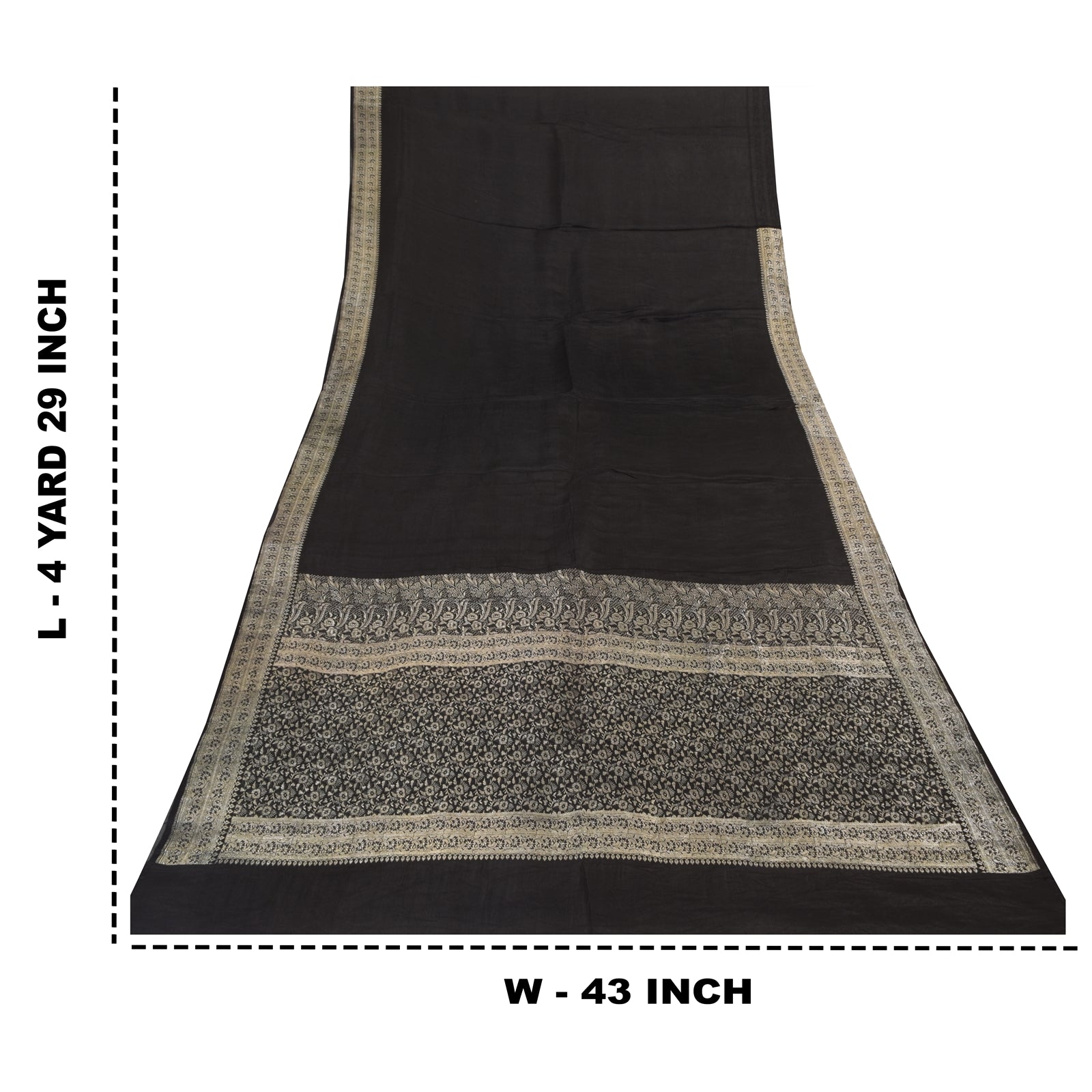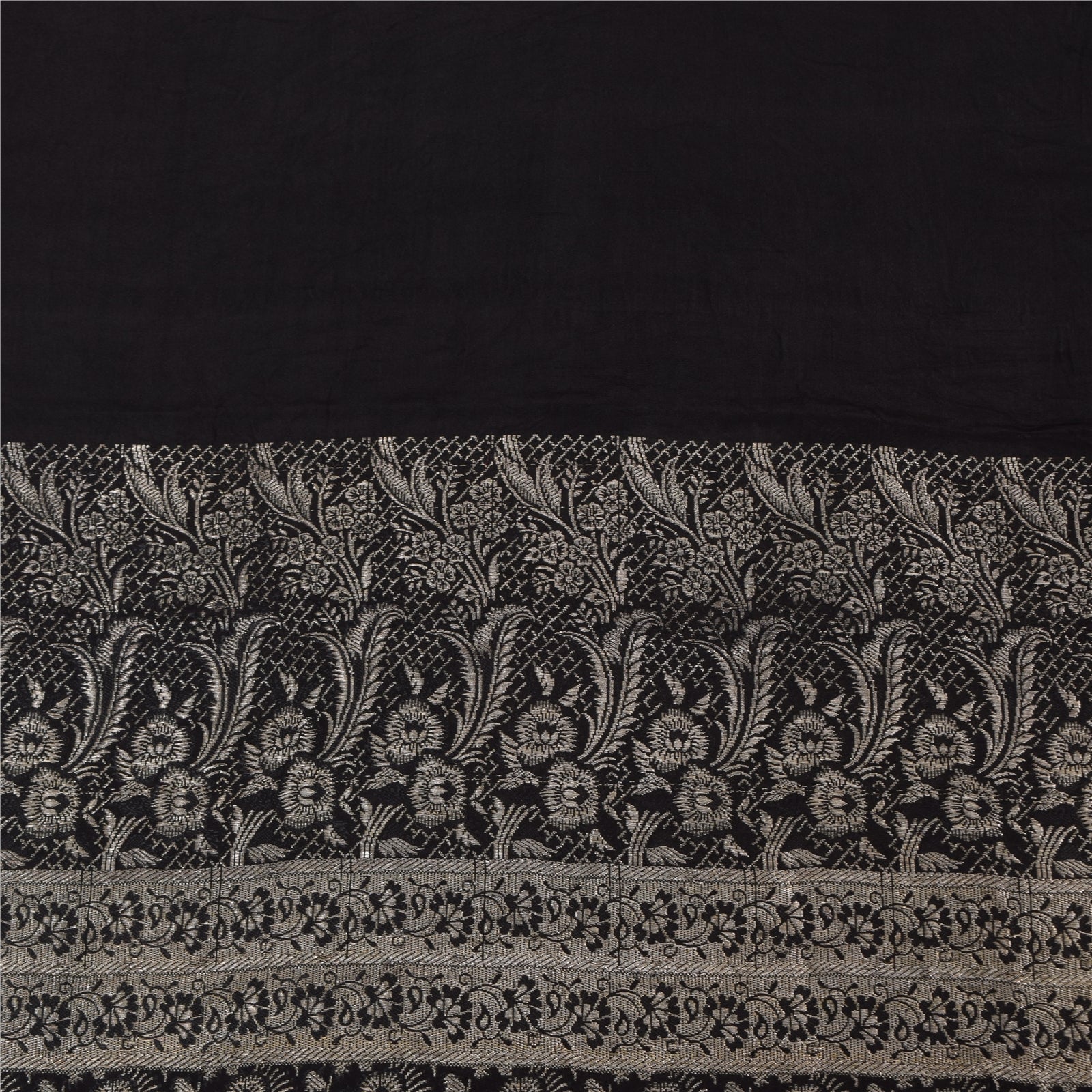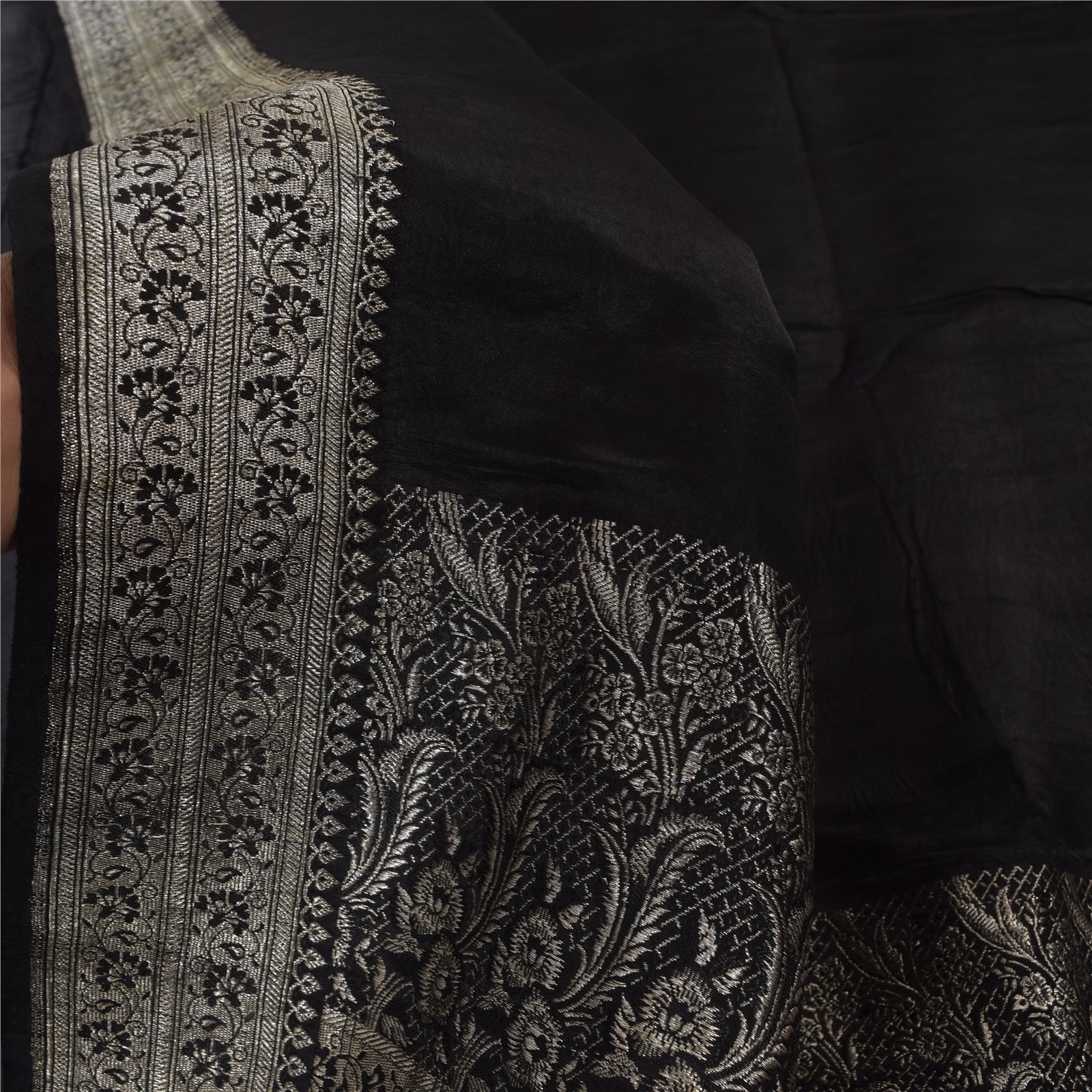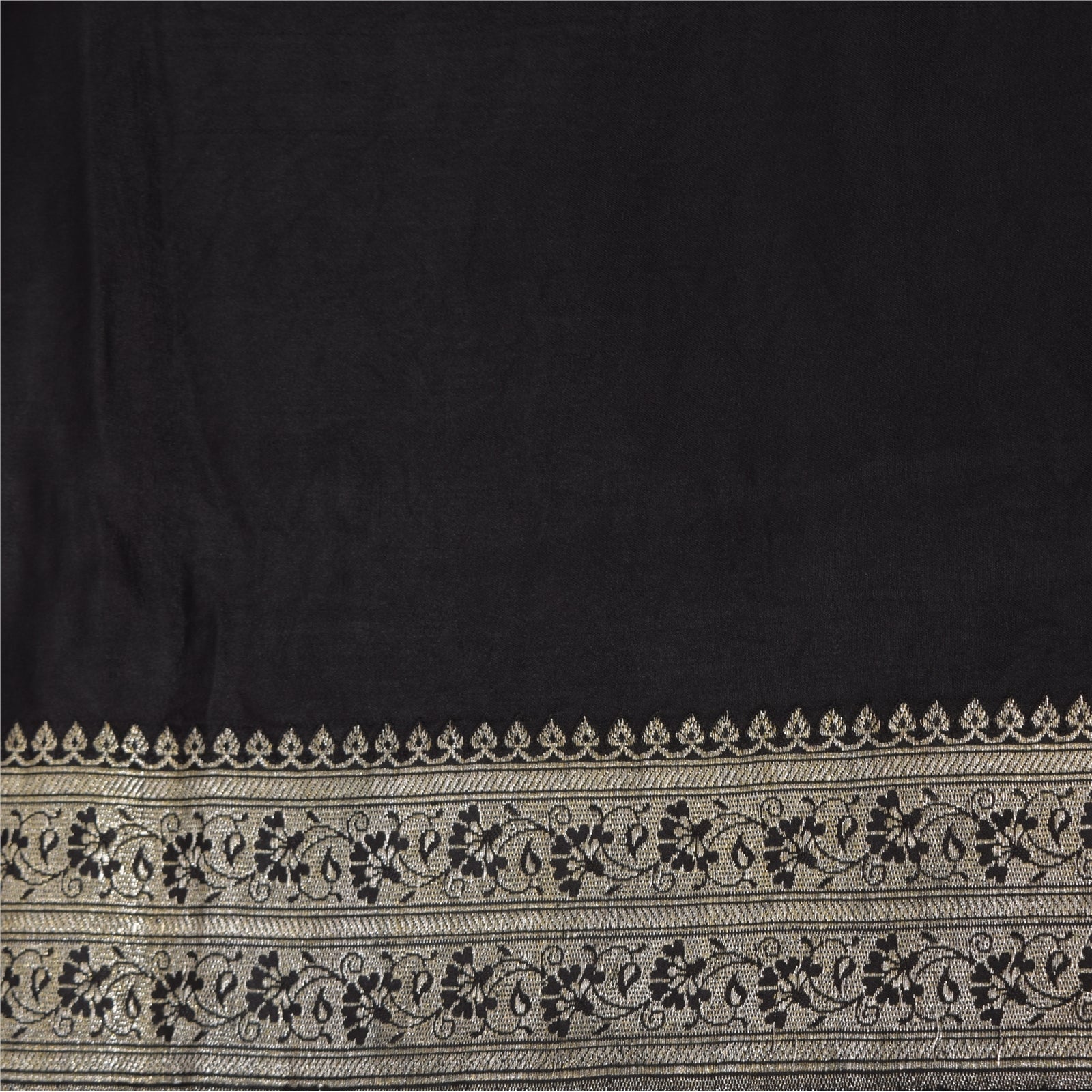 Sanskriti Vintage Black Indian Sarees Pure Silk Banarasi Woven Brocade Craft Sari