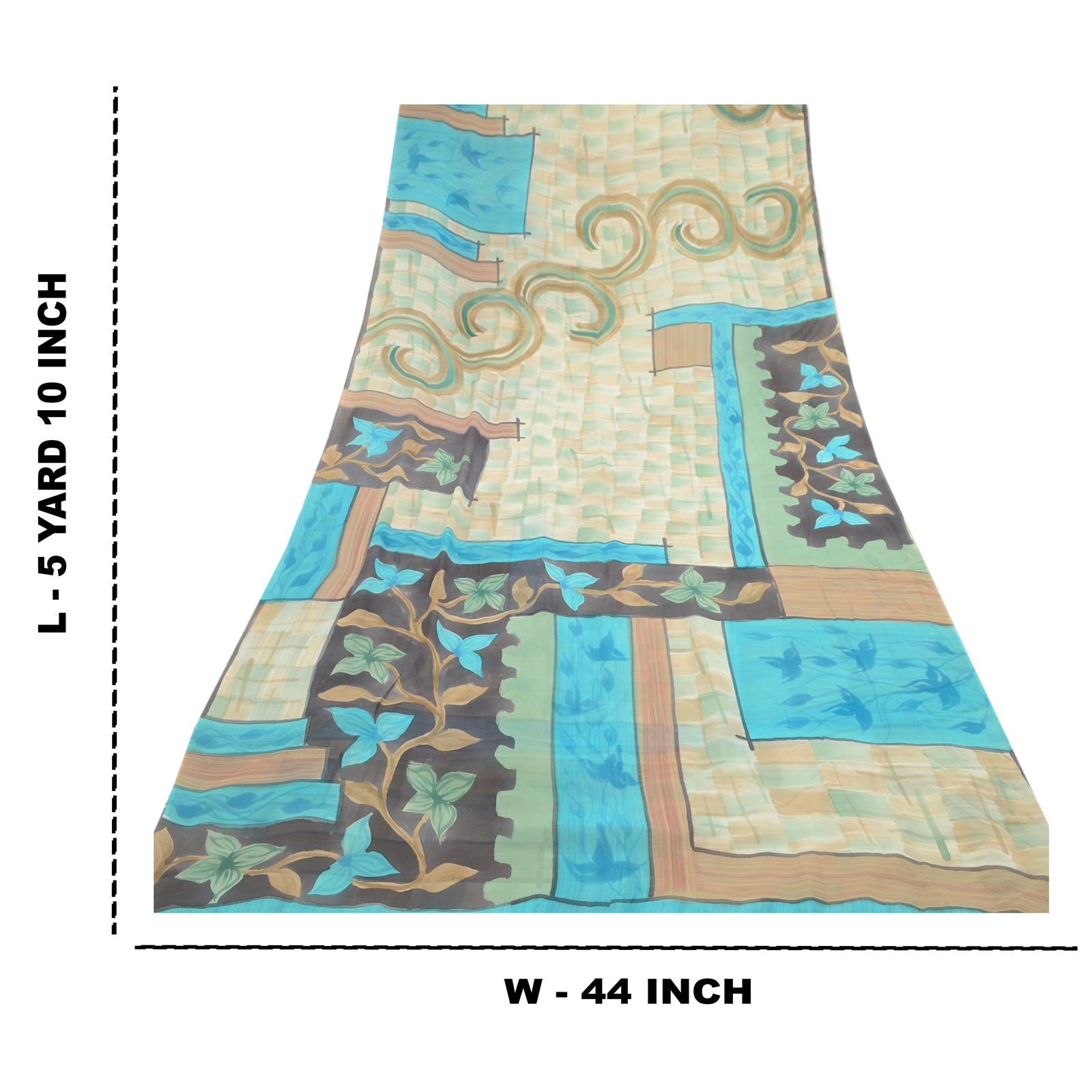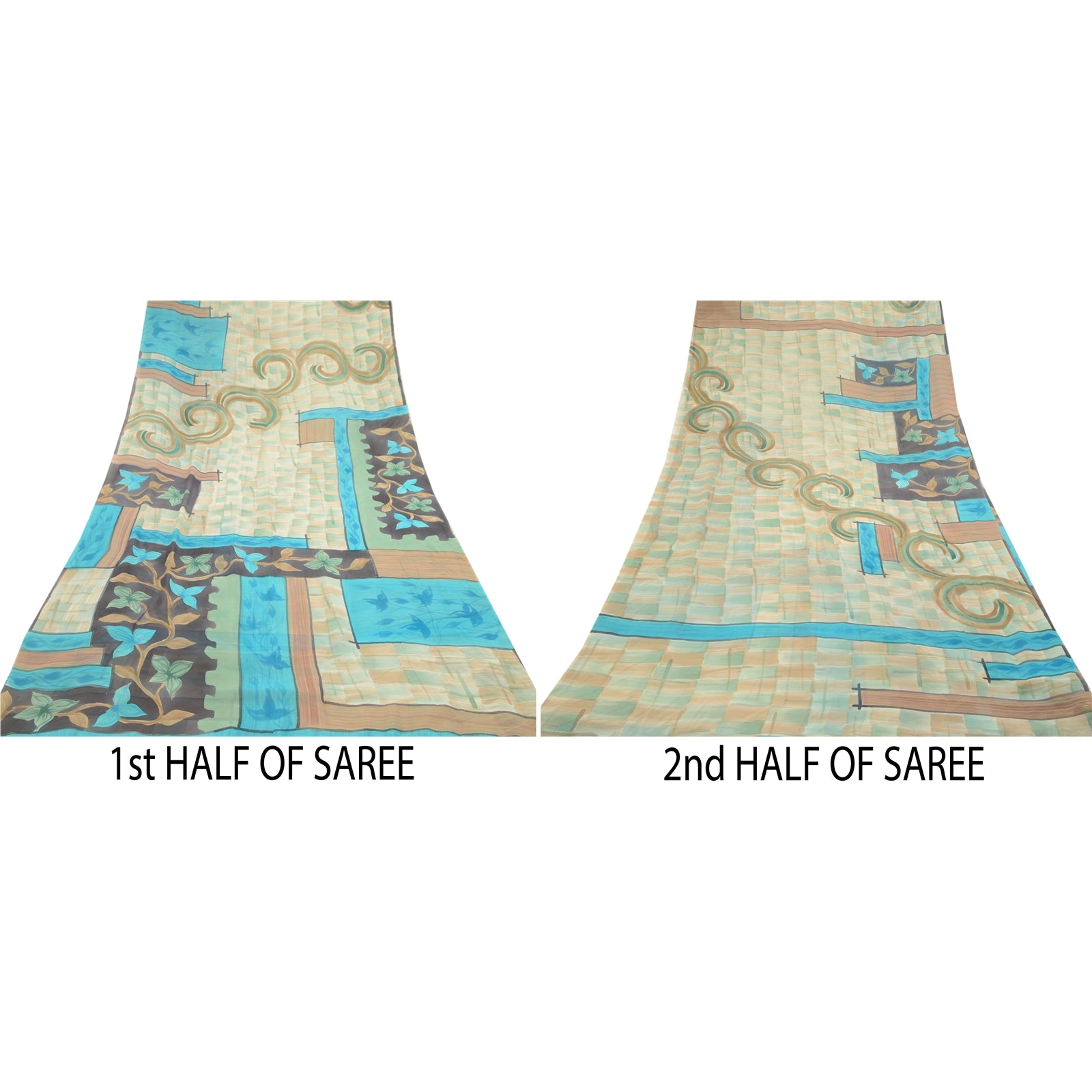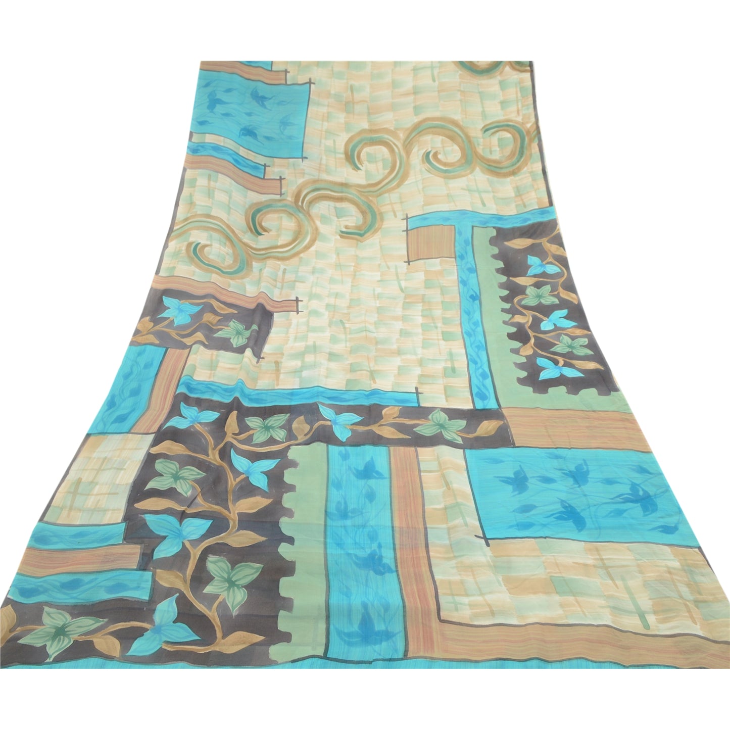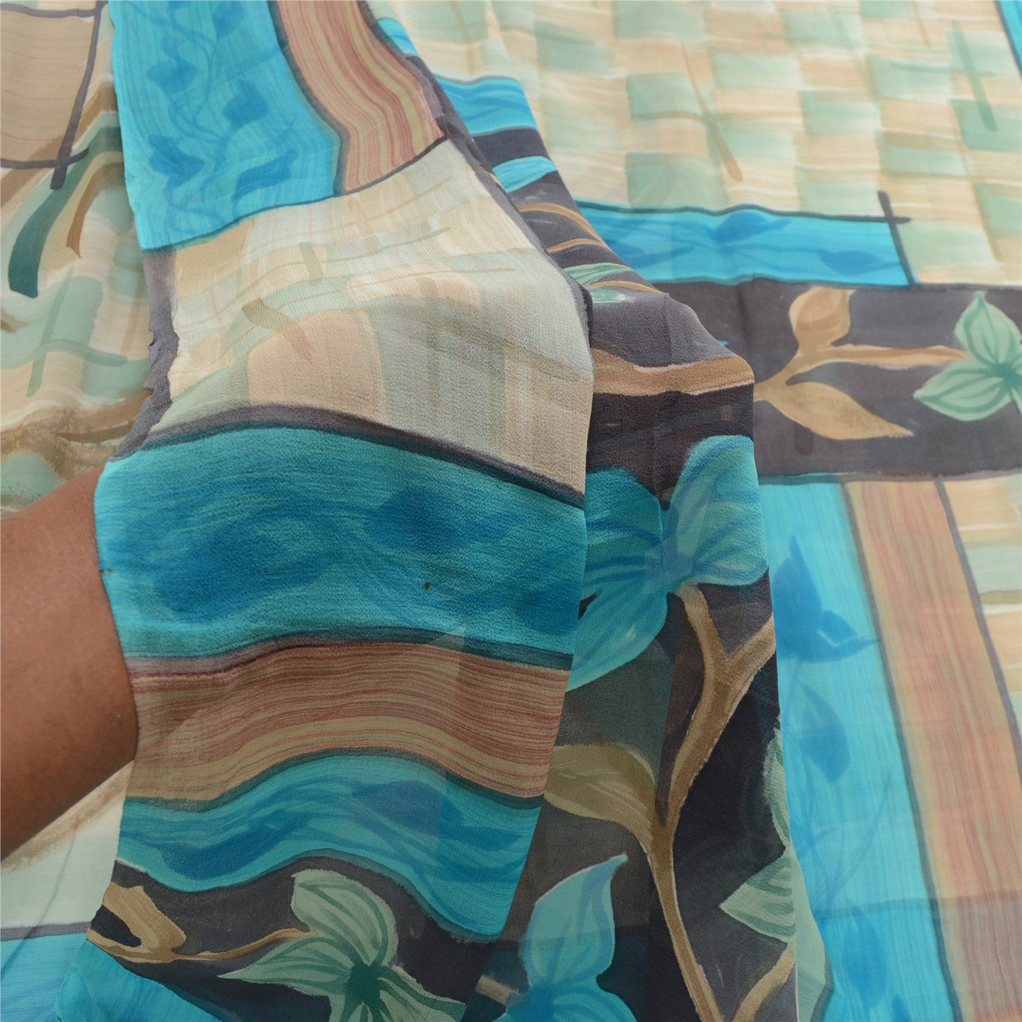Sanskriti Vintage Blue Printed Sarees Pure Georgette Silk Sari 5yd Craft Sustainable Fabric
