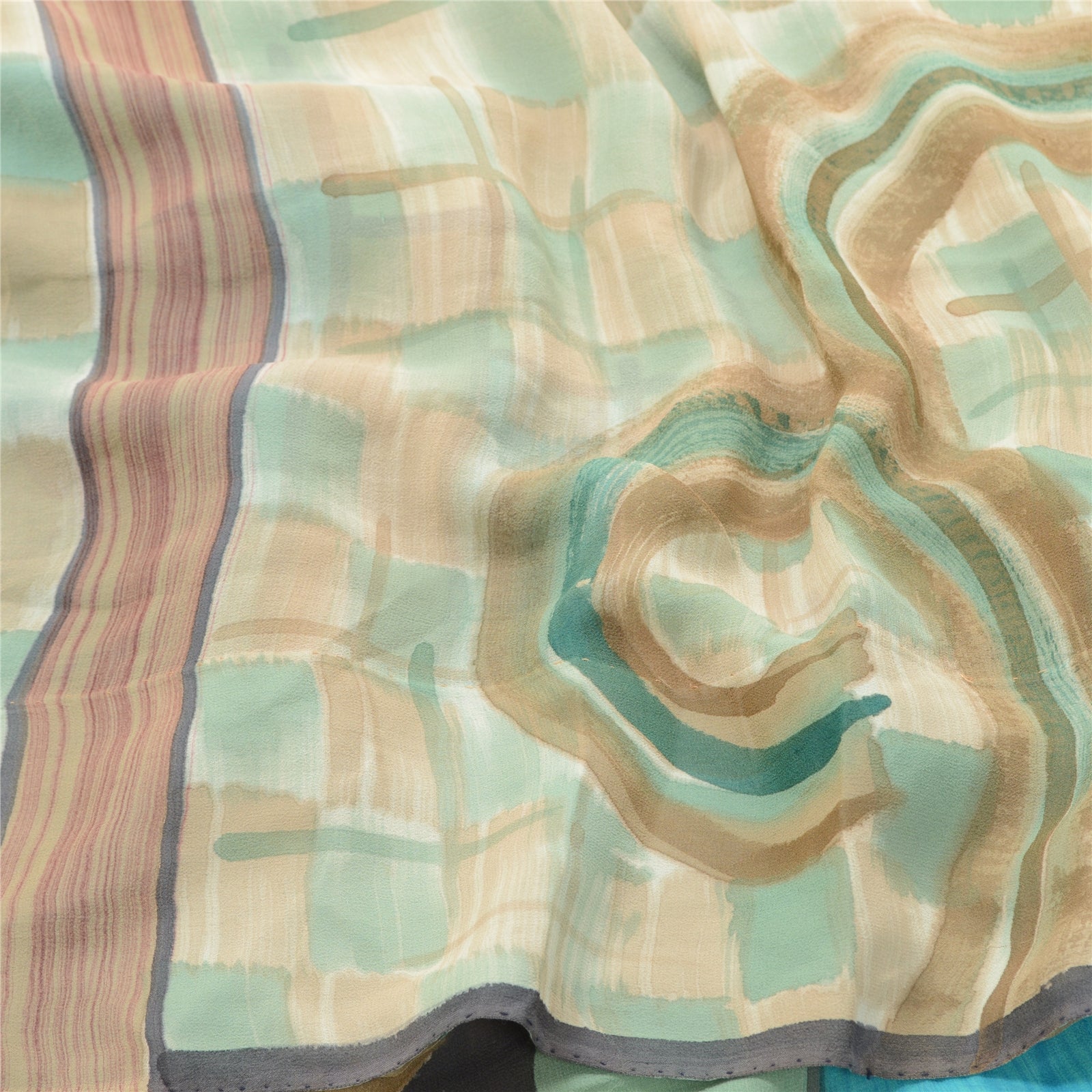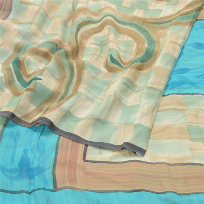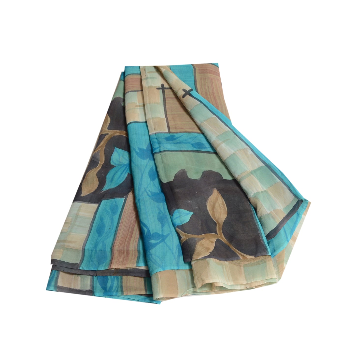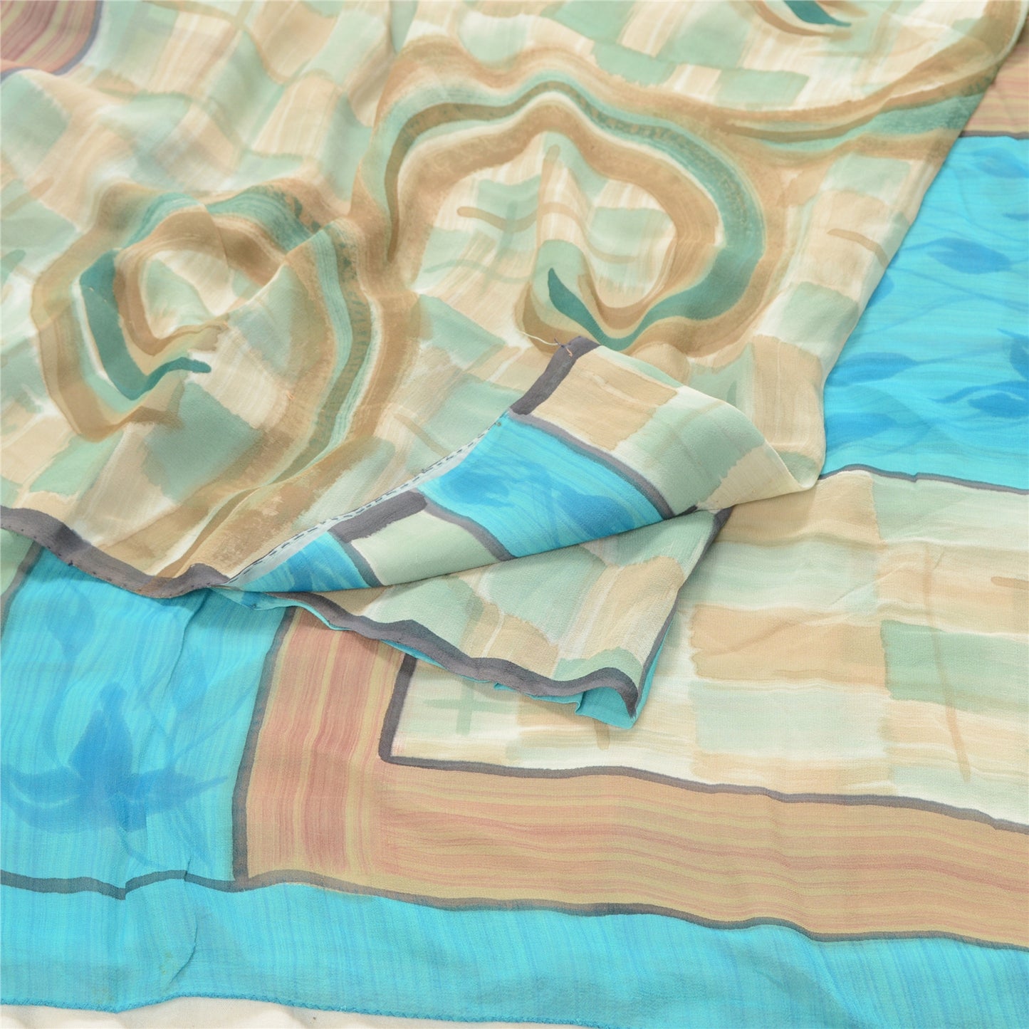Sanskriti Vintage Blue Printed Sarees Pure Georgette Silk Sari 5yd Craft Sustainable Fabric