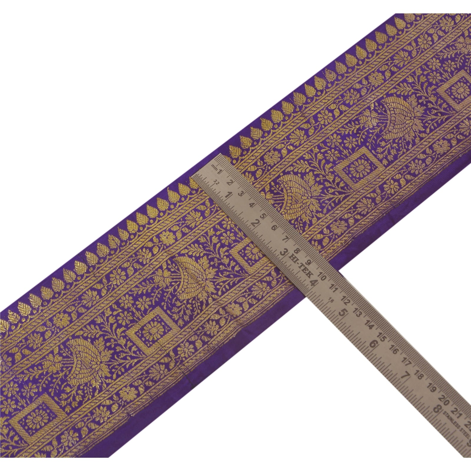 Sanskriti Vintage Blue Sari Border Woven Brocade Craft Trim Sewing 1 Yd Lace