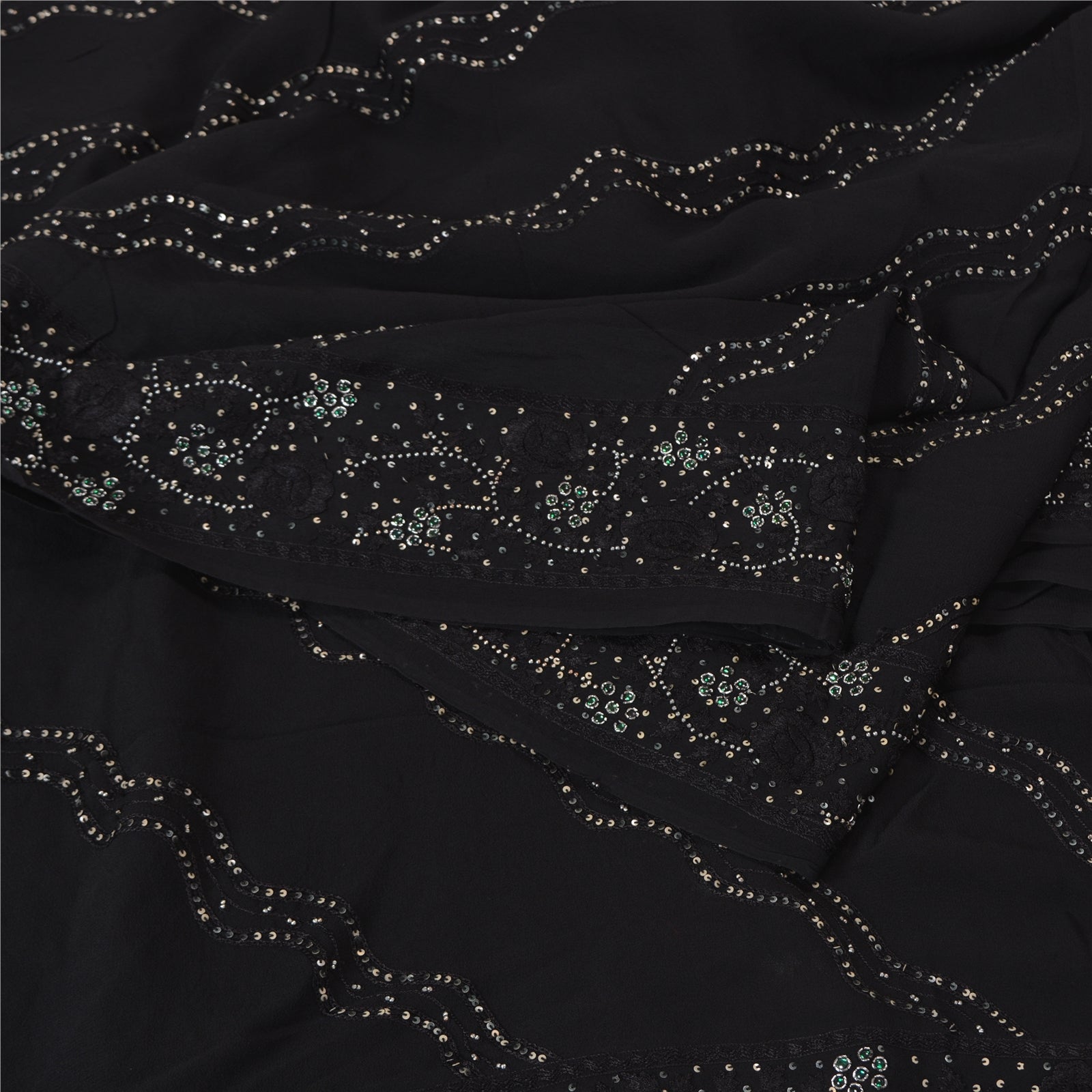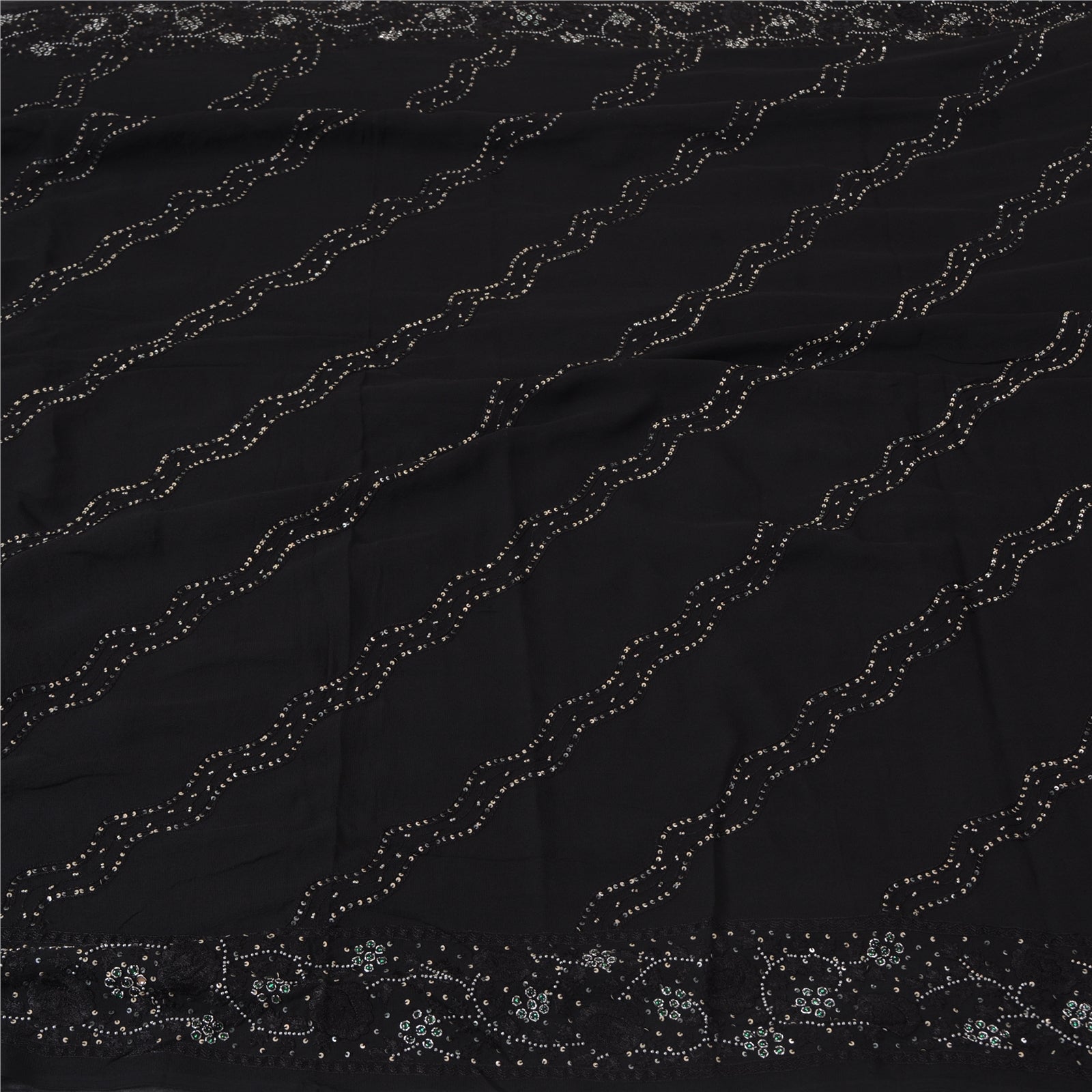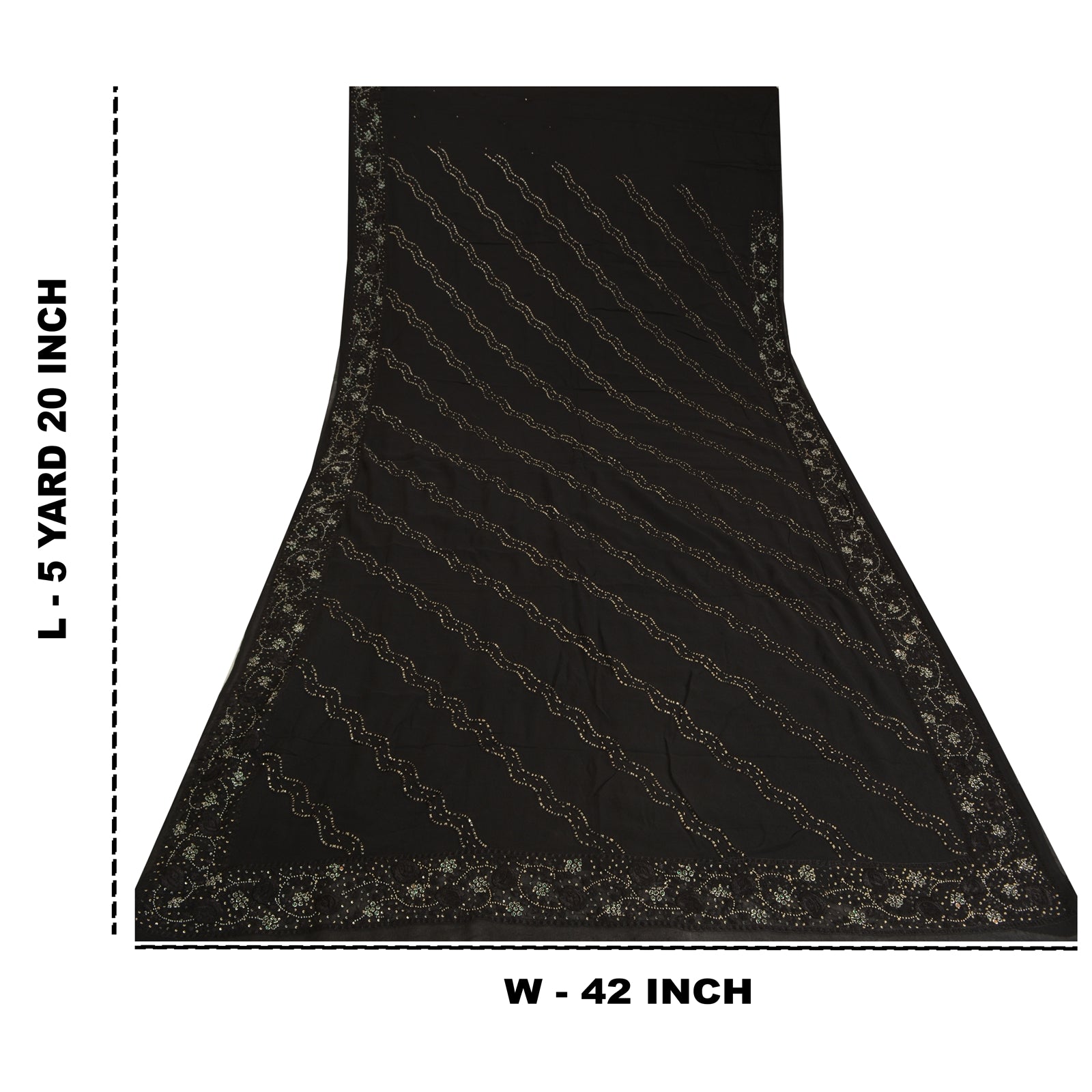 Sanskriti Vintage Bollywood Sarees Pure Georgette Black Hand Beaded Sari Sustainable Fabric