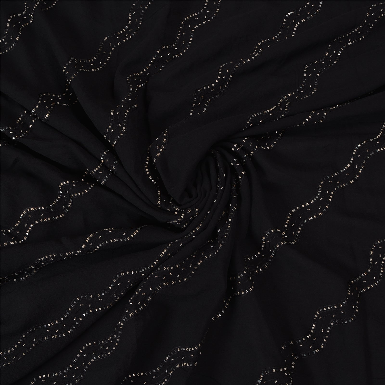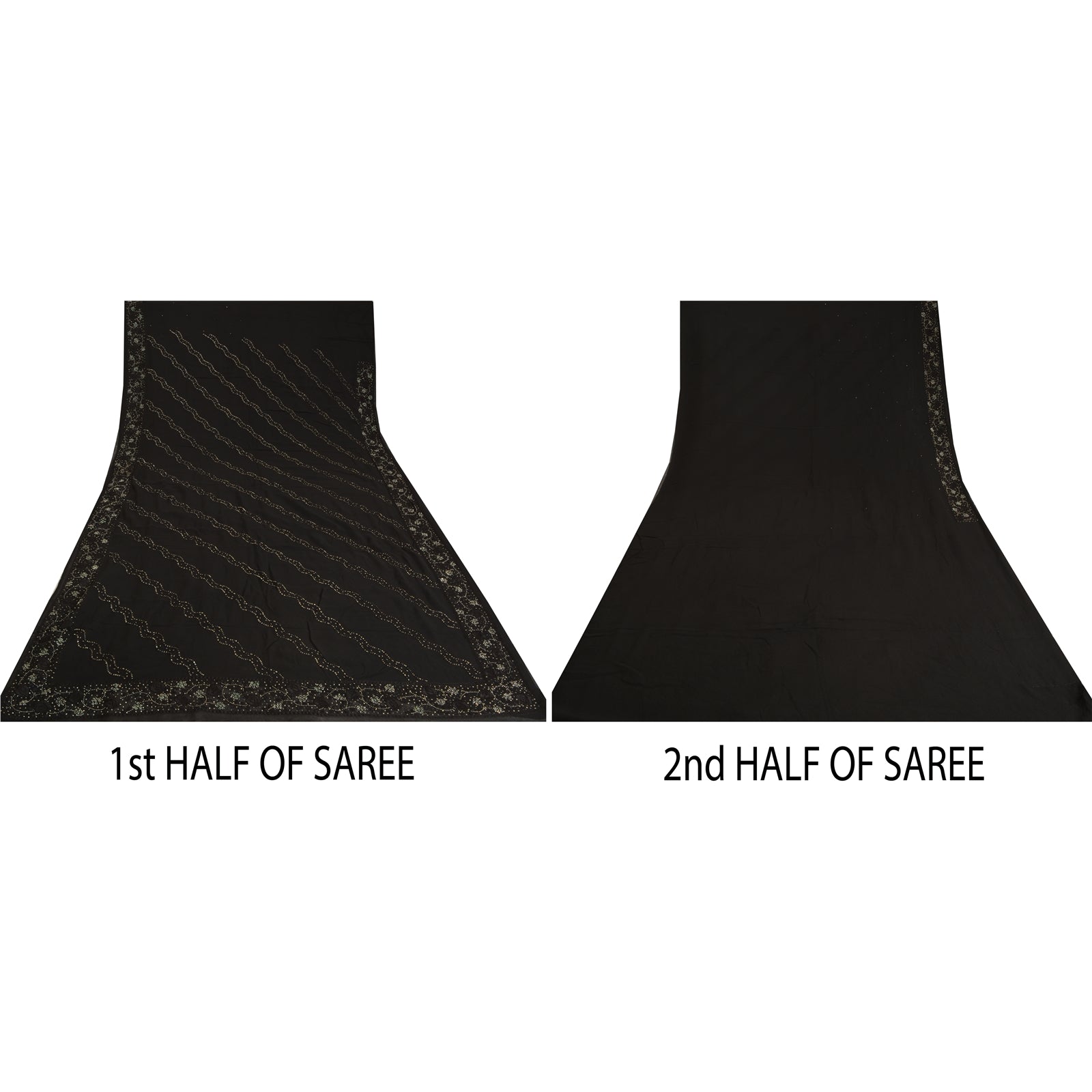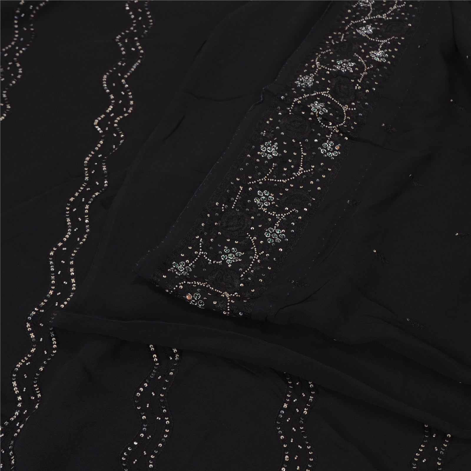 Sanskriti Vintage Bollywood Sarees Pure Georgette Black Hand Beaded Sari Sustainable Fabric