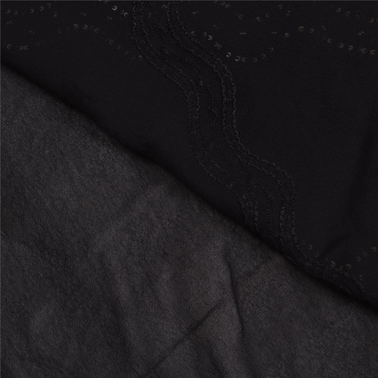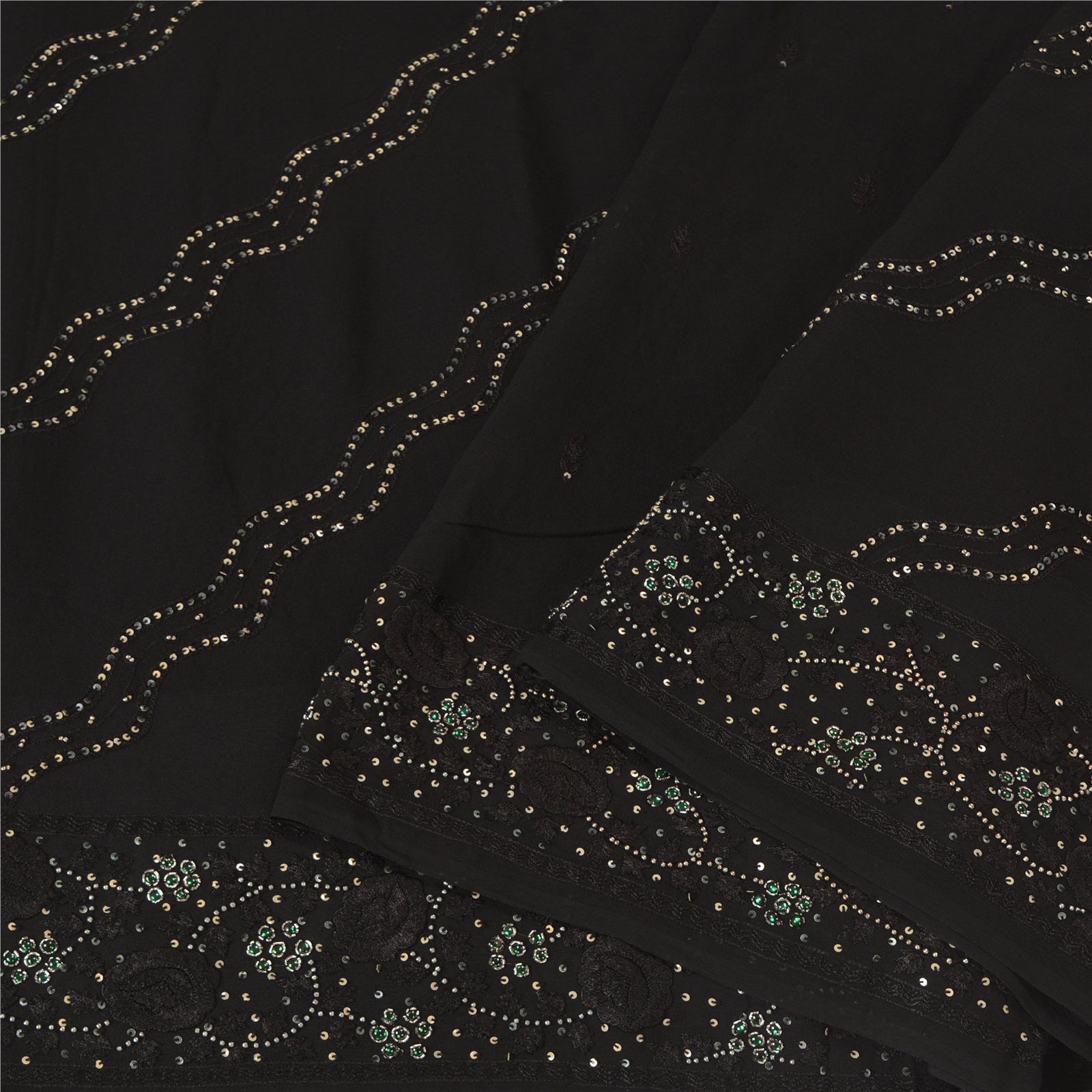 'THE ITEM COLOR OR SHADE MAY BE DARKER OR LIGHTER THAN THE PICTURE.' Beautiful black colored pure georgette hand embroidered sari/Sustainable Fabric. Pallu has floral design embellished with silver sequins. beads, green kundan stones, metallic zardozi work & black thread work. The center of the saree has floral design with sequins & kundan stones work. This saree can be used for various crafting ideas too. Use it for dress designing, as a throw, as window dressing, upholstery, table linen and much more. Let your creative juices flow. 'International buyers please note: Import duties, taxes, and charges are not included in the item price or postage cost. These charges are the buyer's responsibility. Please check with your country's customs office to determine what these additional costs will be prior to bidding or buying. Buyer will pay custom duty/tax. It is calculated and charged differently by every country. As a seller I do not have any control over it. VAT or sales tax is calculated by the platform at the time of checkout. Customs charge is payable at the time of delivery.'