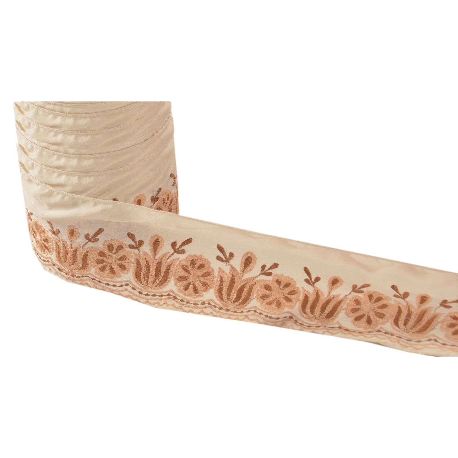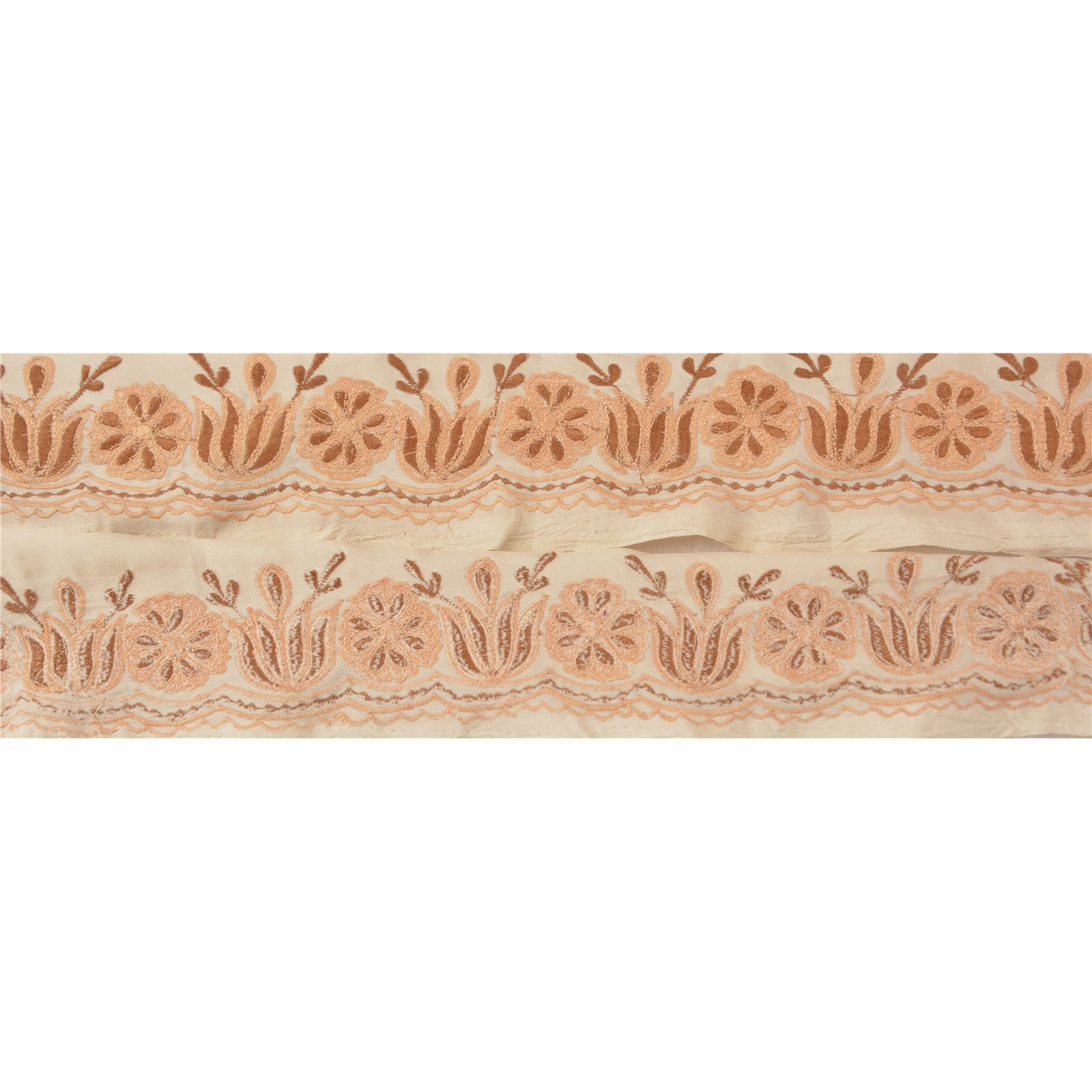 THE ITEM COLOR OR SHADE MAY BE DARKER OR LIGHTER THAN THE PICTURE.' Amazing crepe silk embroidered sari border in white color highlighting thread work. Border has beautiful floral patterns painstakingly embroidered peach/brown thread work. WOW!! an awesome one of a kind versatile border. 1 Quantity = 1 Yard International buyers please note: Import duties, taxes, and charges are not included in the item price or postage cost. These charges are the buyer's responsibility. Please check with your country's customs office to determine what these additional costs will be prior to bidding or buying. Buyer will pay custom duty/tax. It is calculated and charged differently by every country. As a seller I do not have any control over it.VAT or sales tax is calculated by the platform at the time of checkout. Customs charge is payable at the time of delivery. B-12595