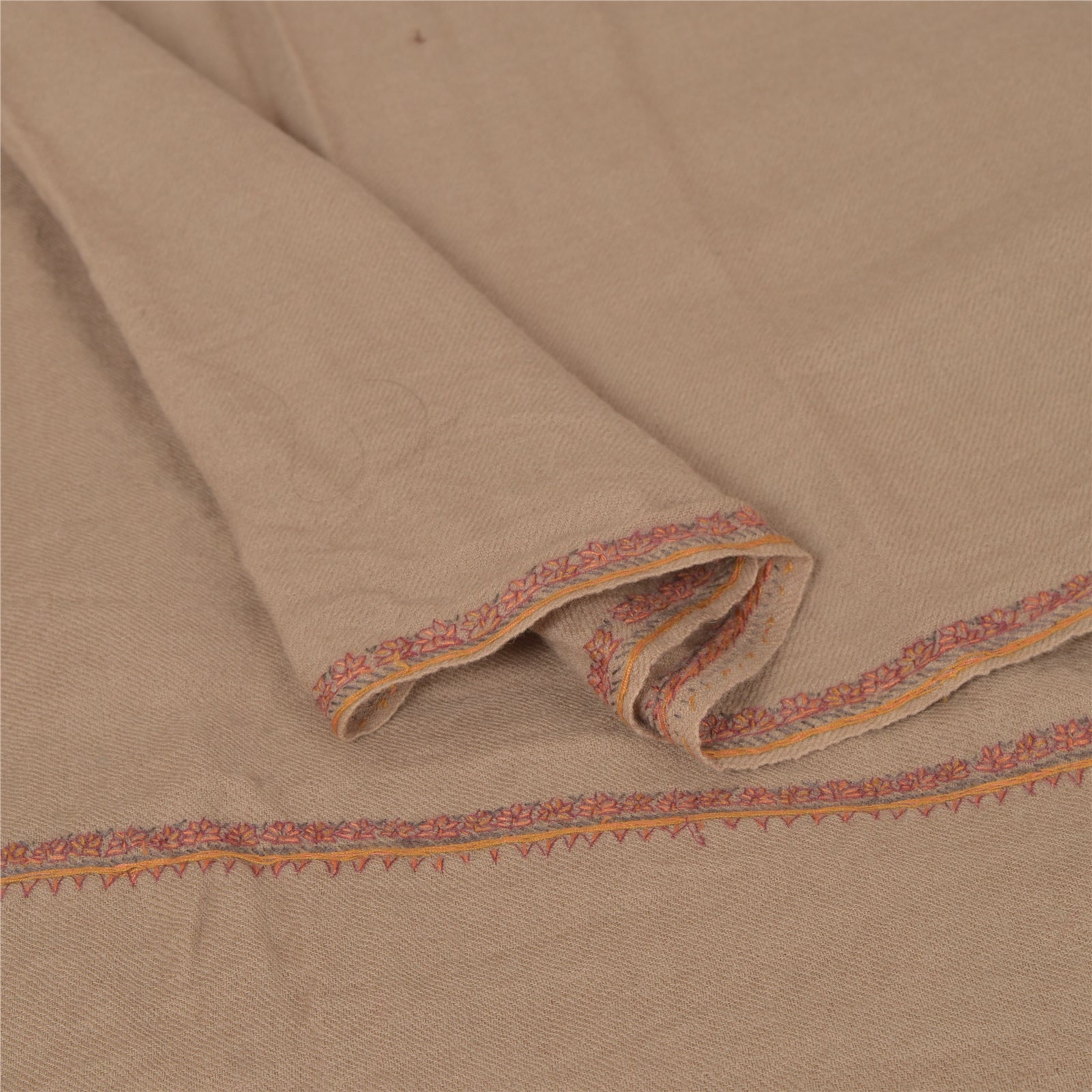 Sanskriti Vintage Brown 100% Pure Woolen Shawl Handmade Suzani Long Stole Scarf