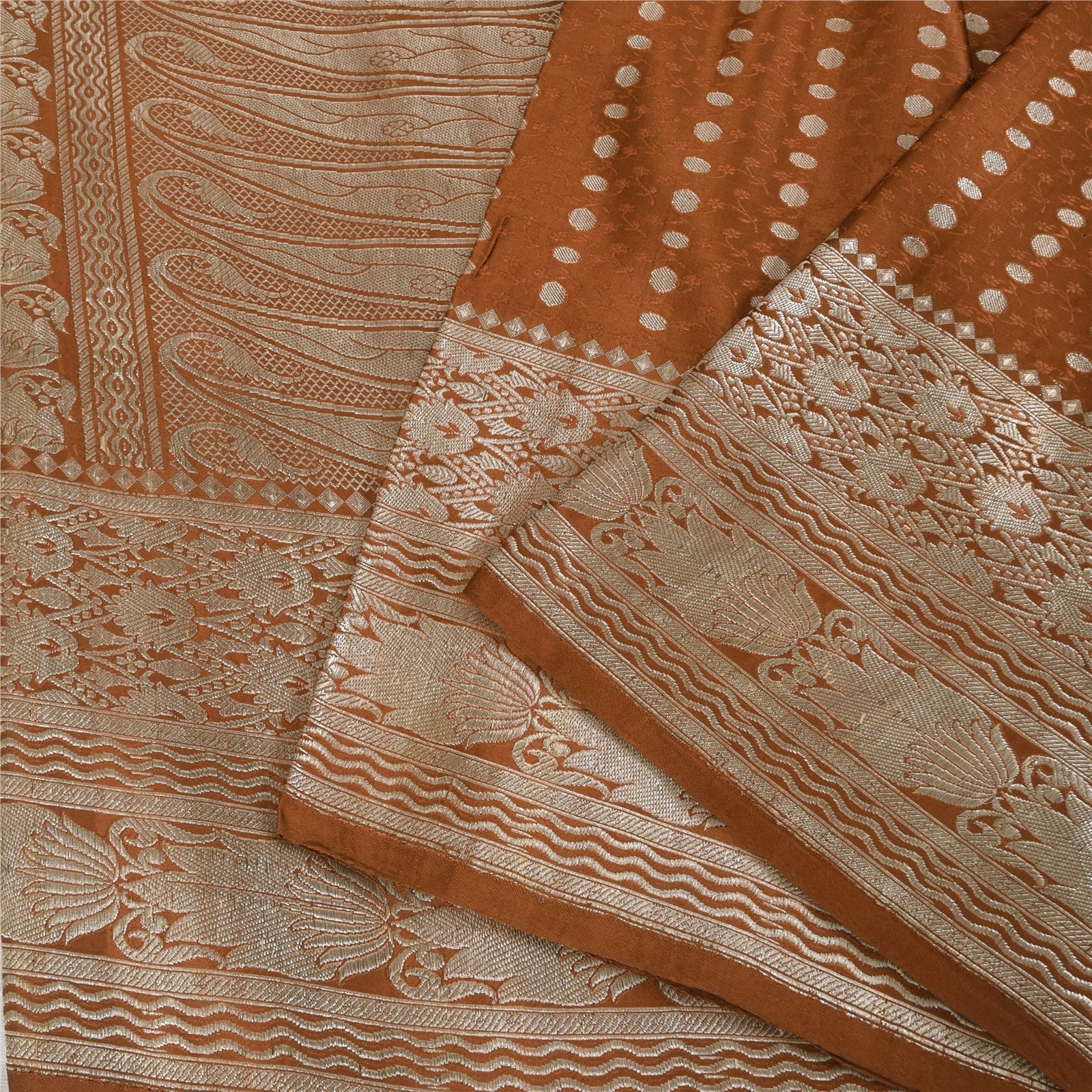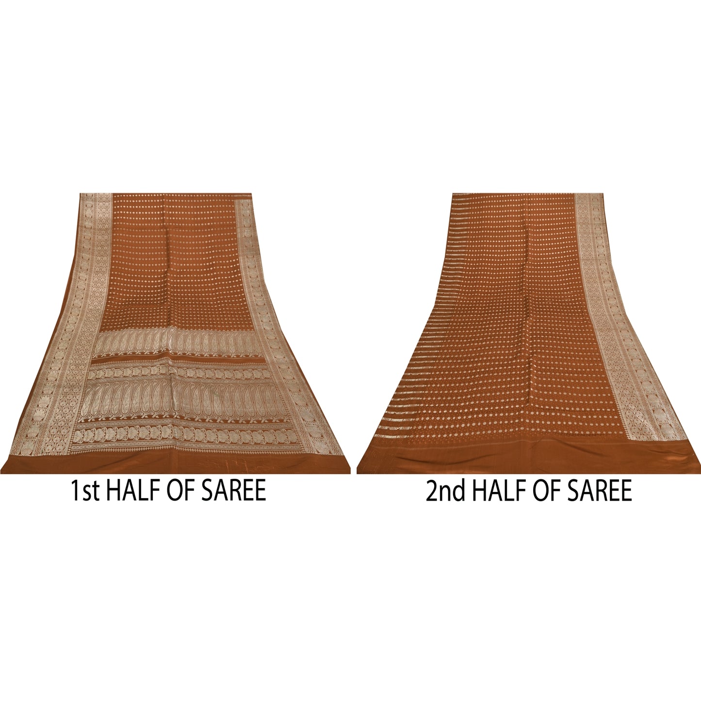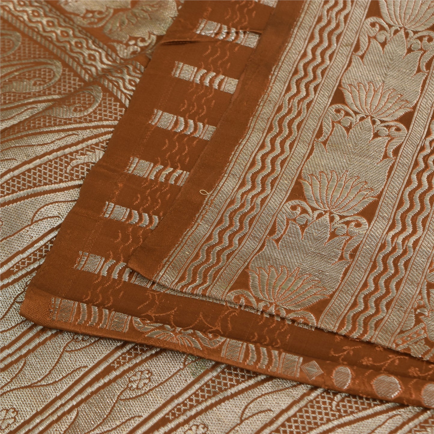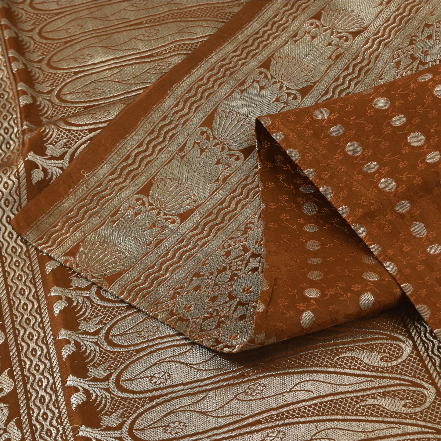 Sanskriti Vintage Brown Saree Pure Satin Silk Brocade/Banarasi Woven Sari Sustainable Fabric