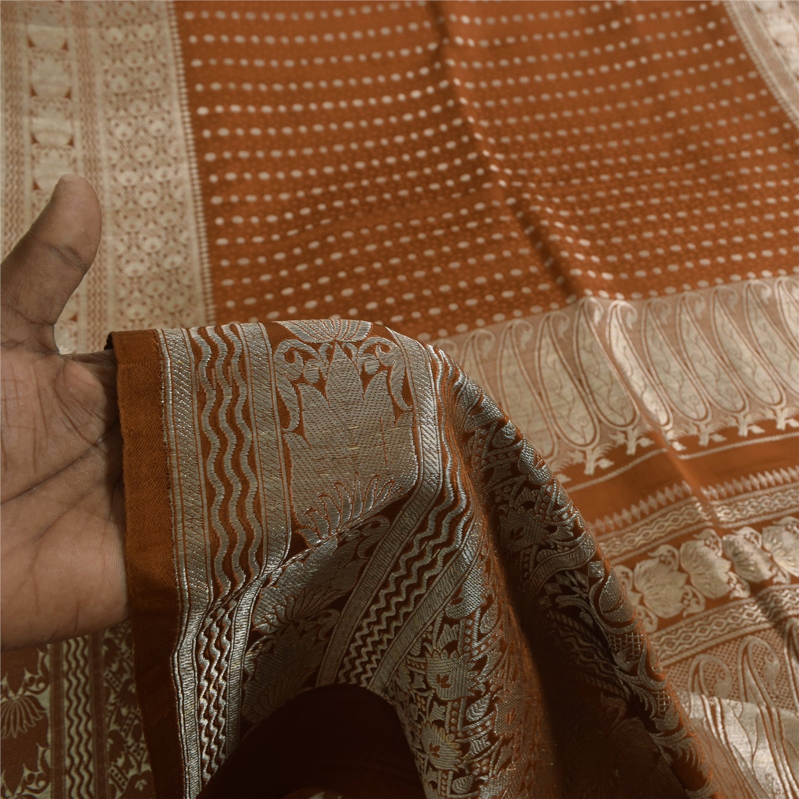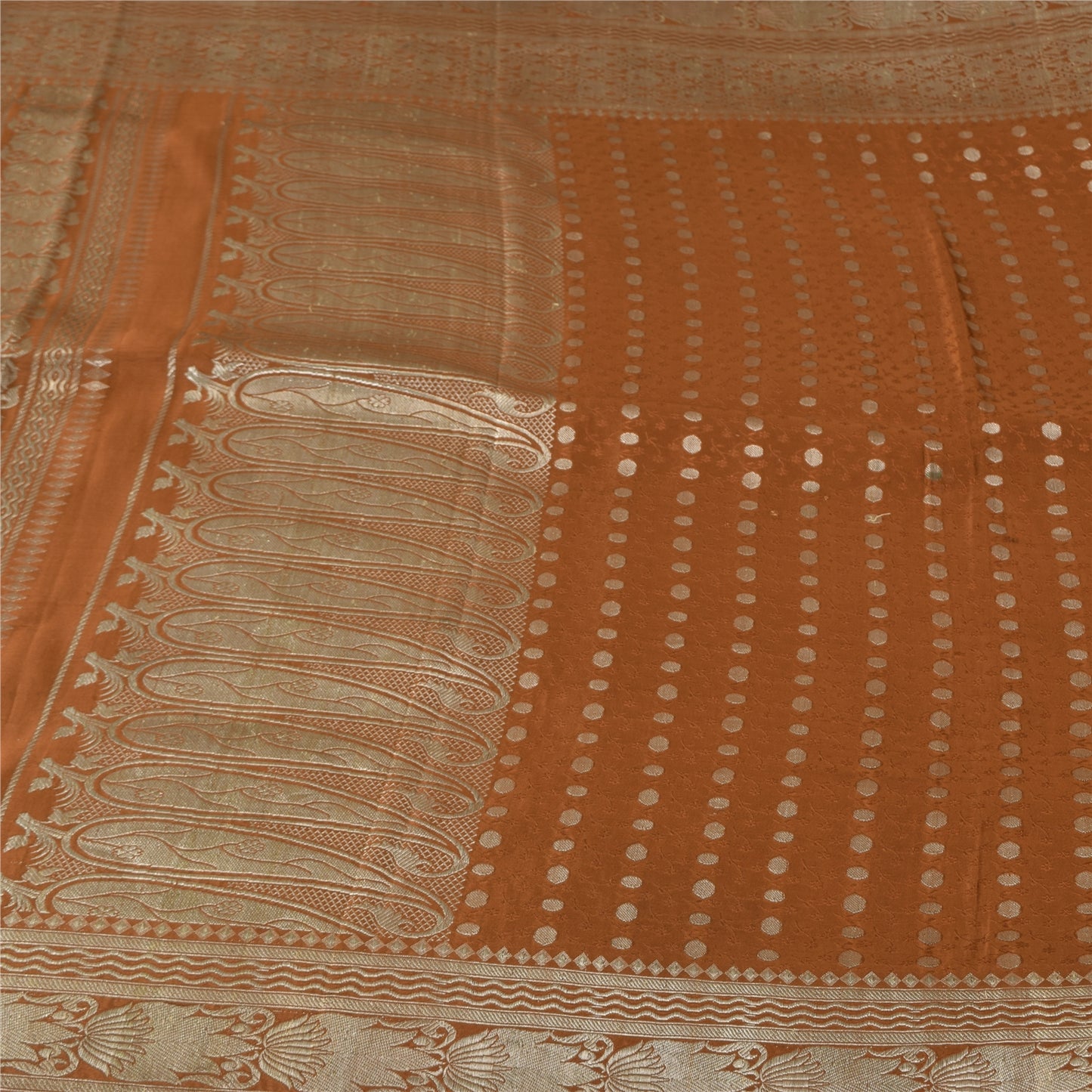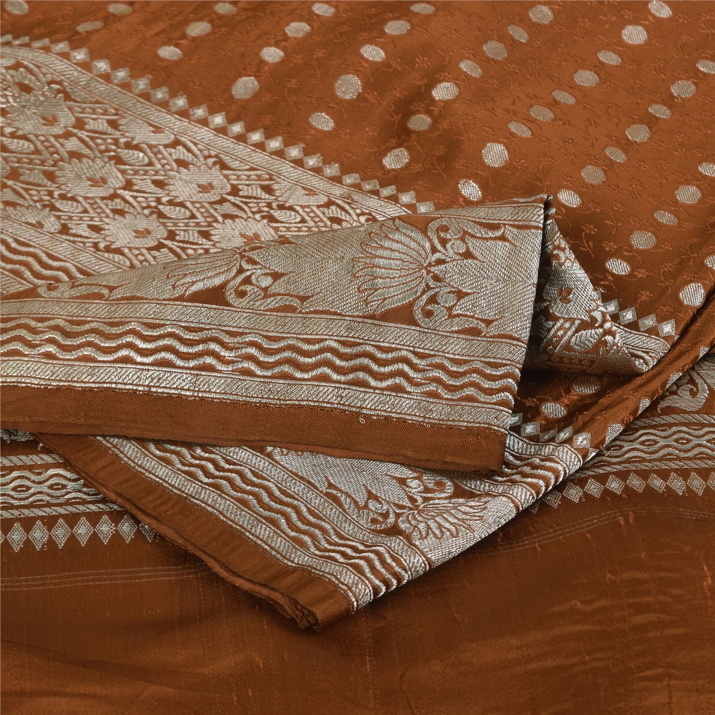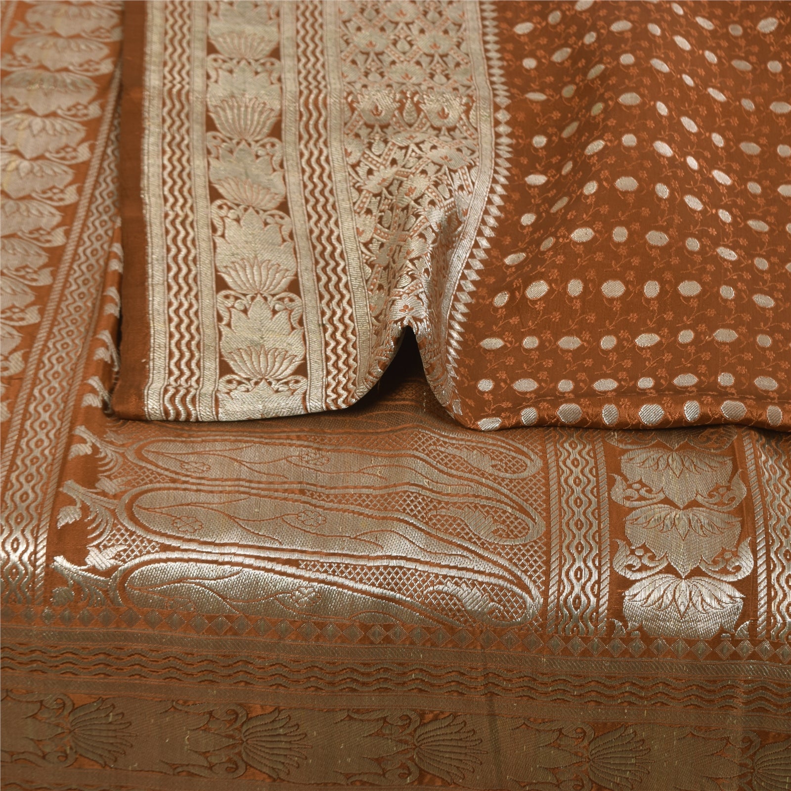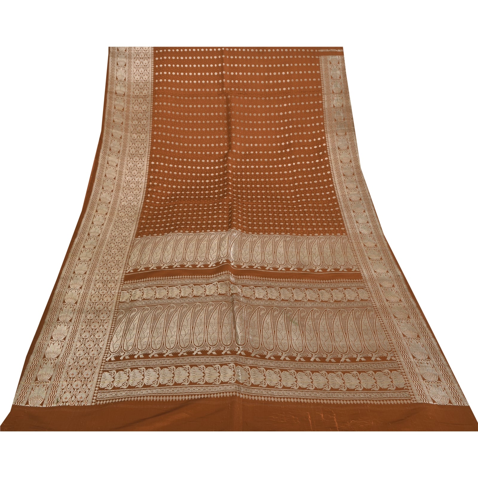 Sanskriti Vintage Brown Saree Pure Satin Silk Brocade/Banarasi Woven Sari Sustainable Fabric