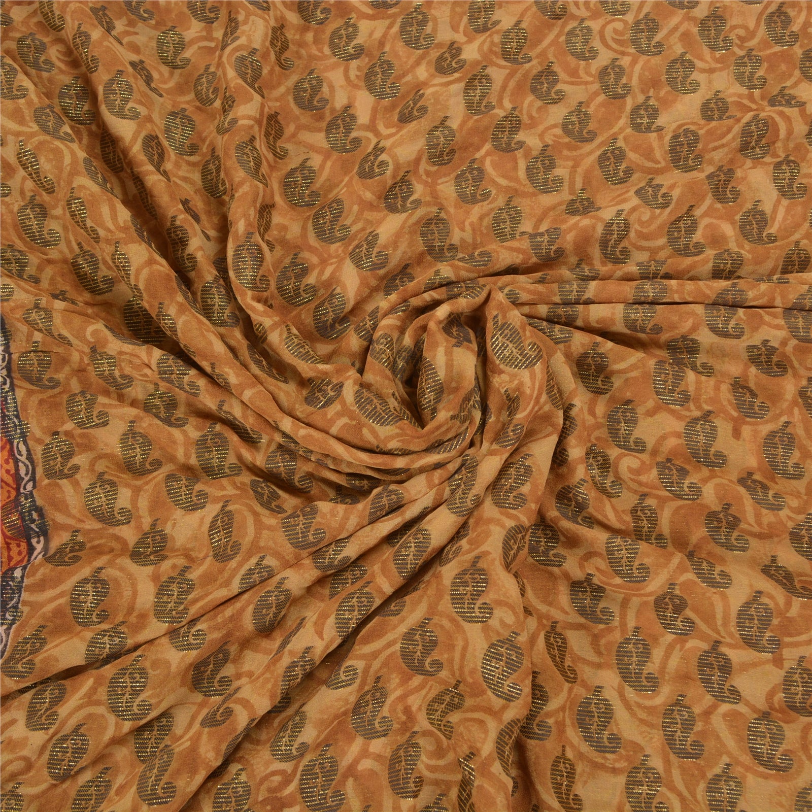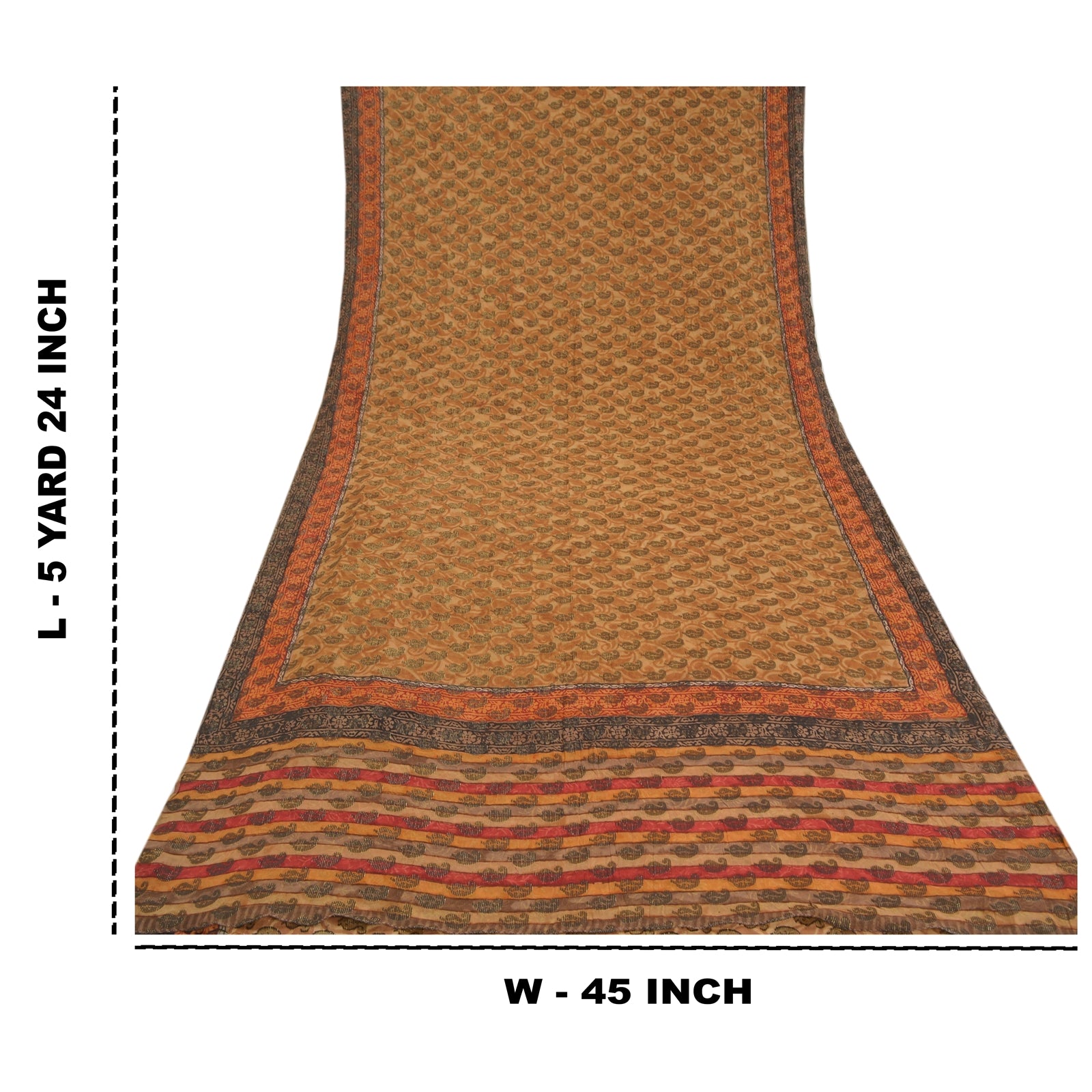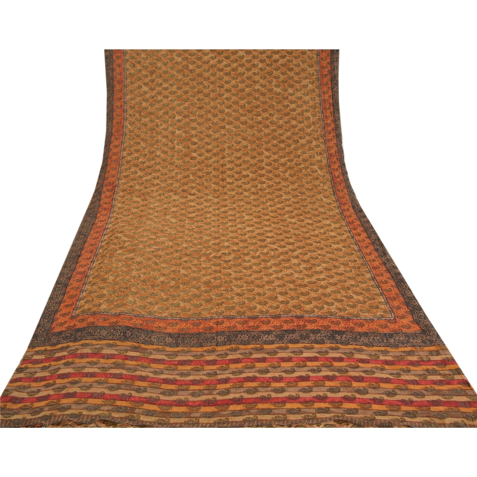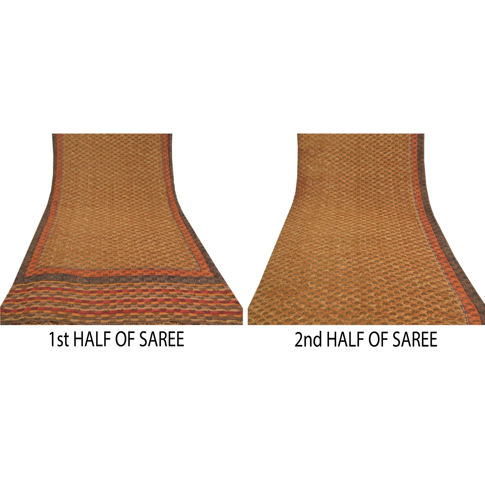 Sanskriti Vintage Brown Sarees 100% Pure Silk Woven Printed Craft Sari Sustainable Fabric