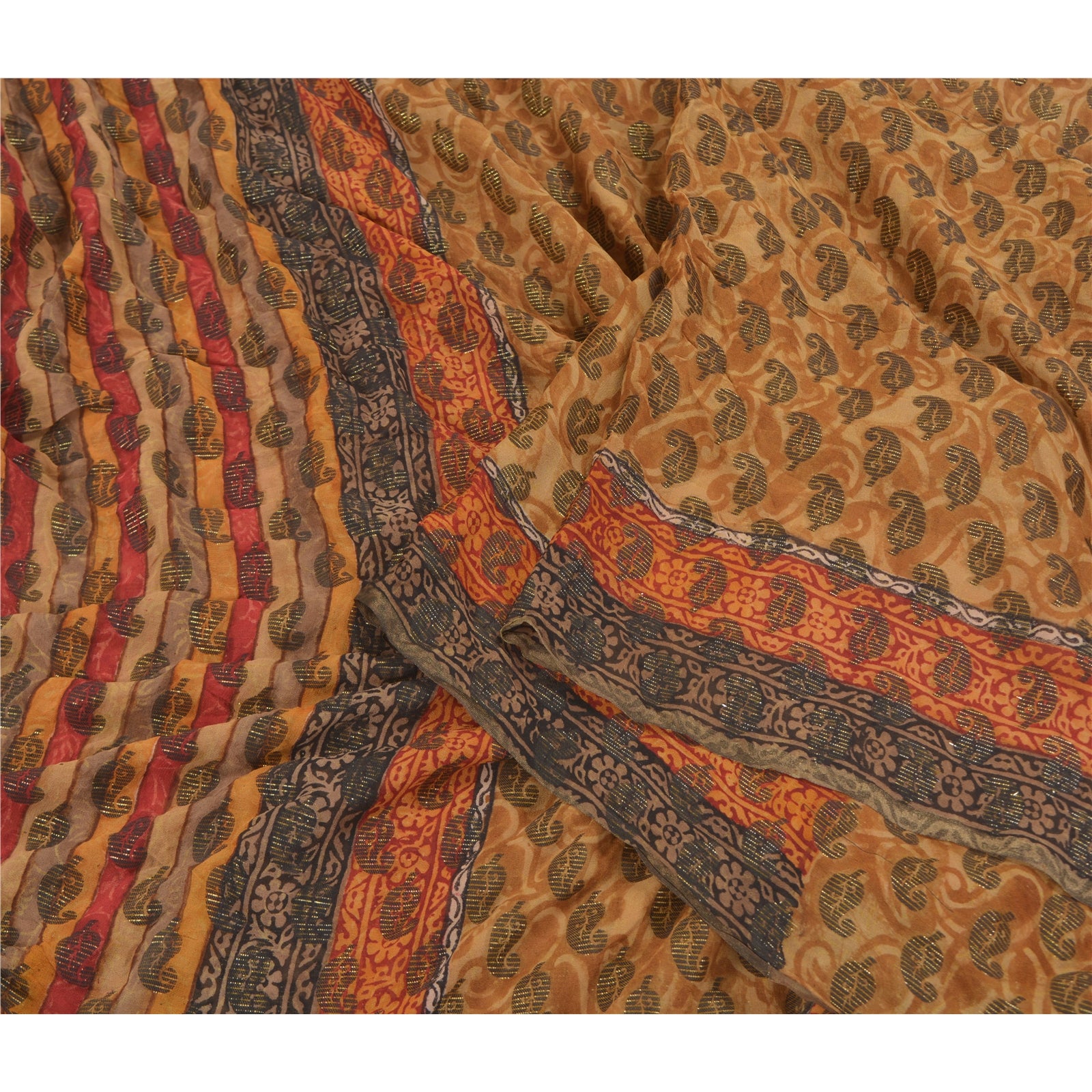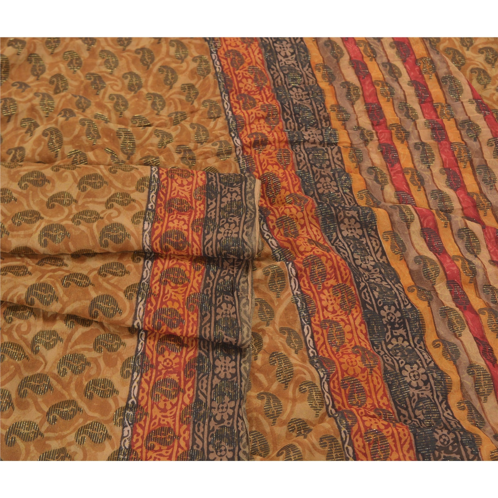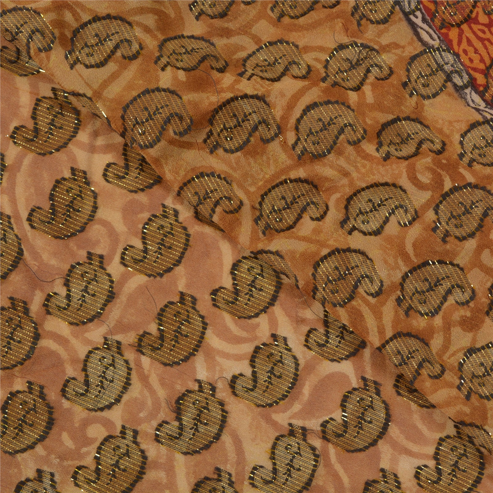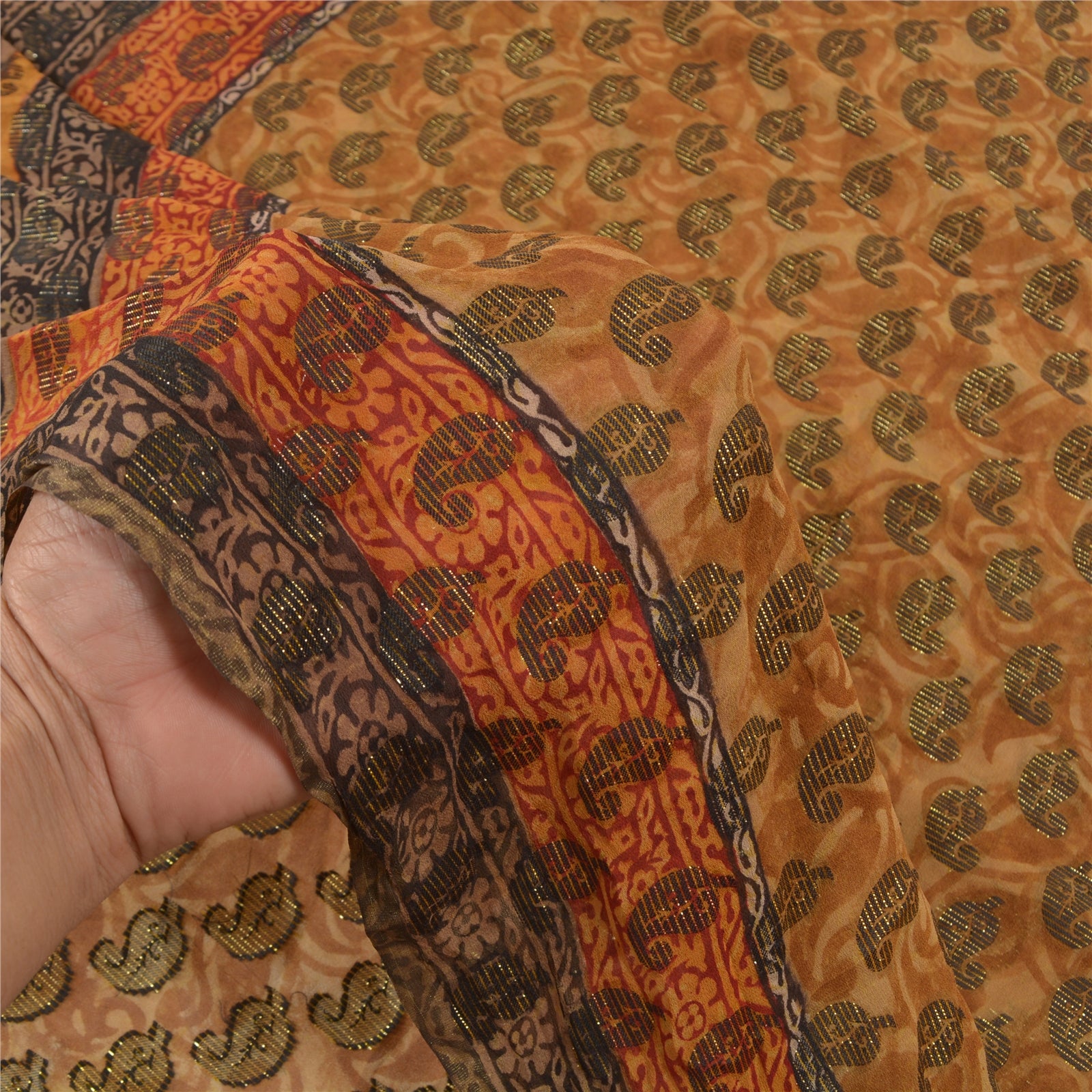 Sanskriti Vintage Brown Sarees 100% Pure Silk Woven Printed Craft Sari Sustainable Fabric