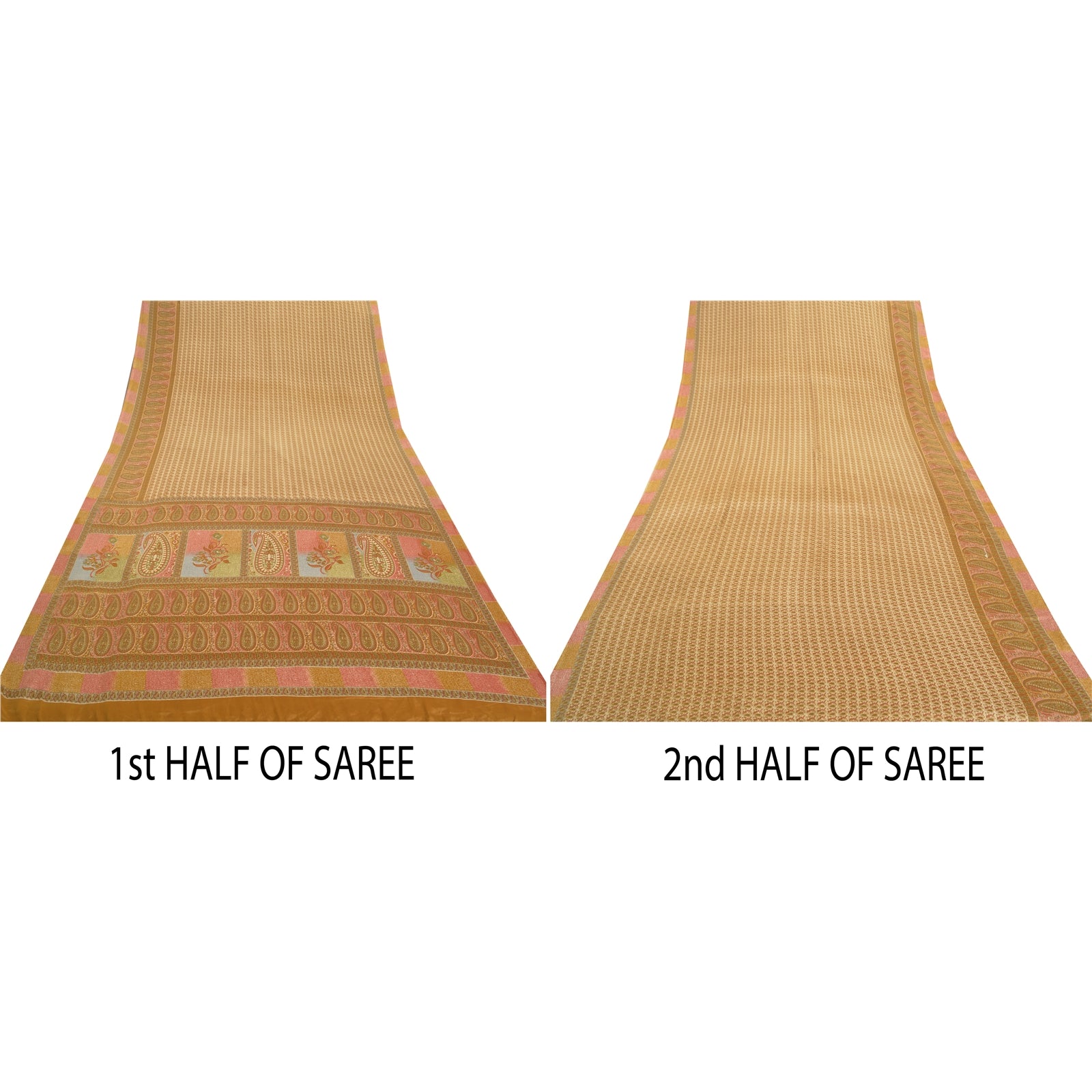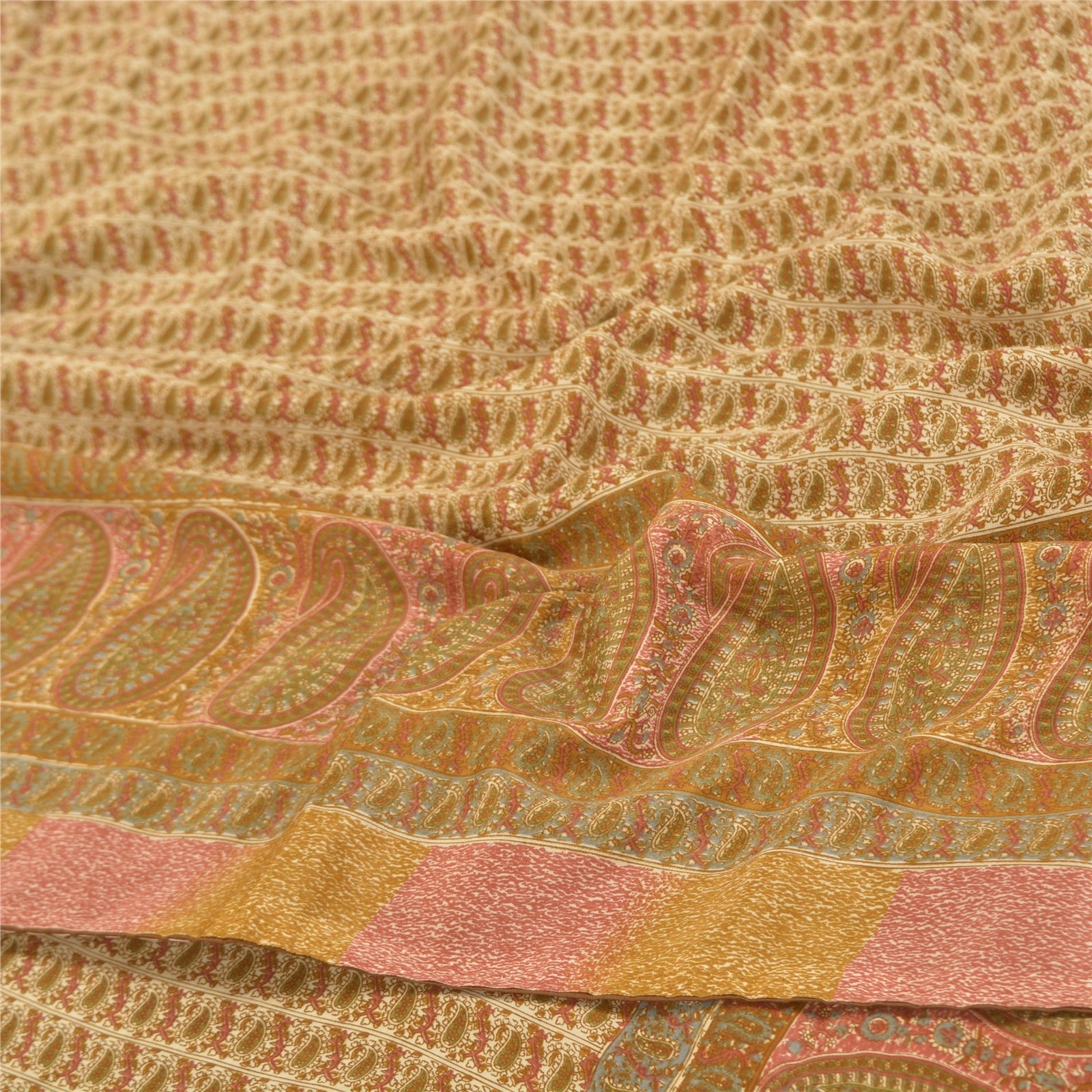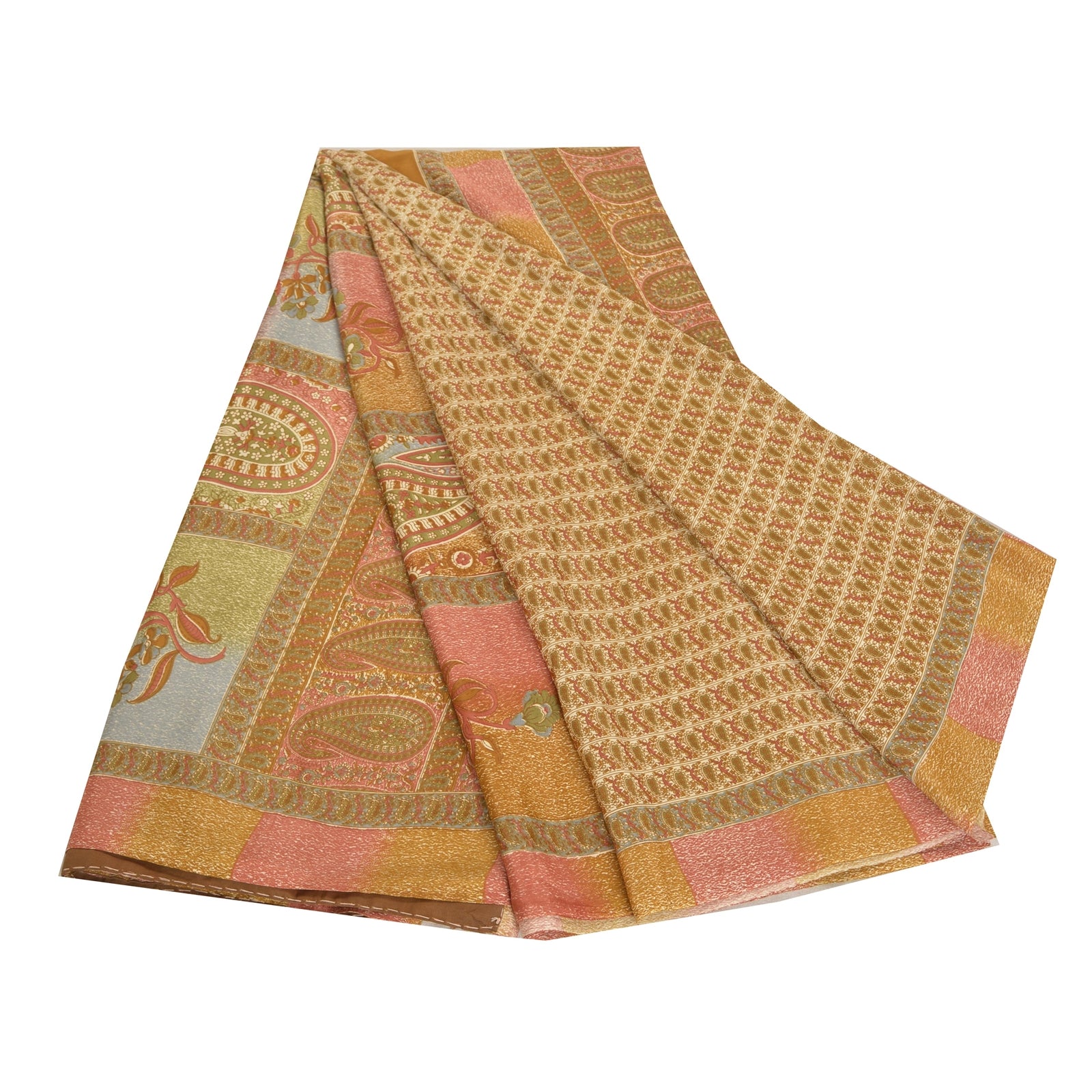 Sanskriti Vintage Brown Sarees Crepe Silk Printed Sari Soft Craft Sustainable Fabric